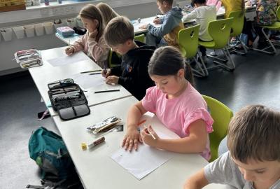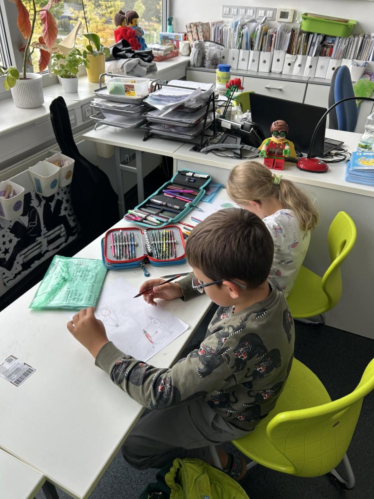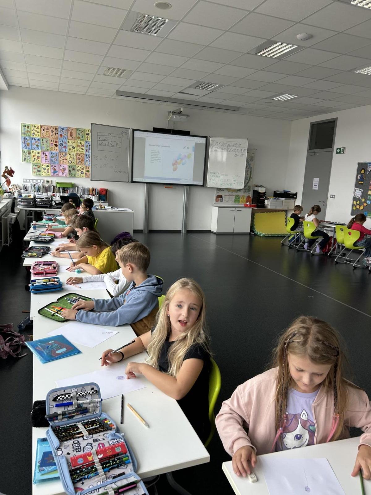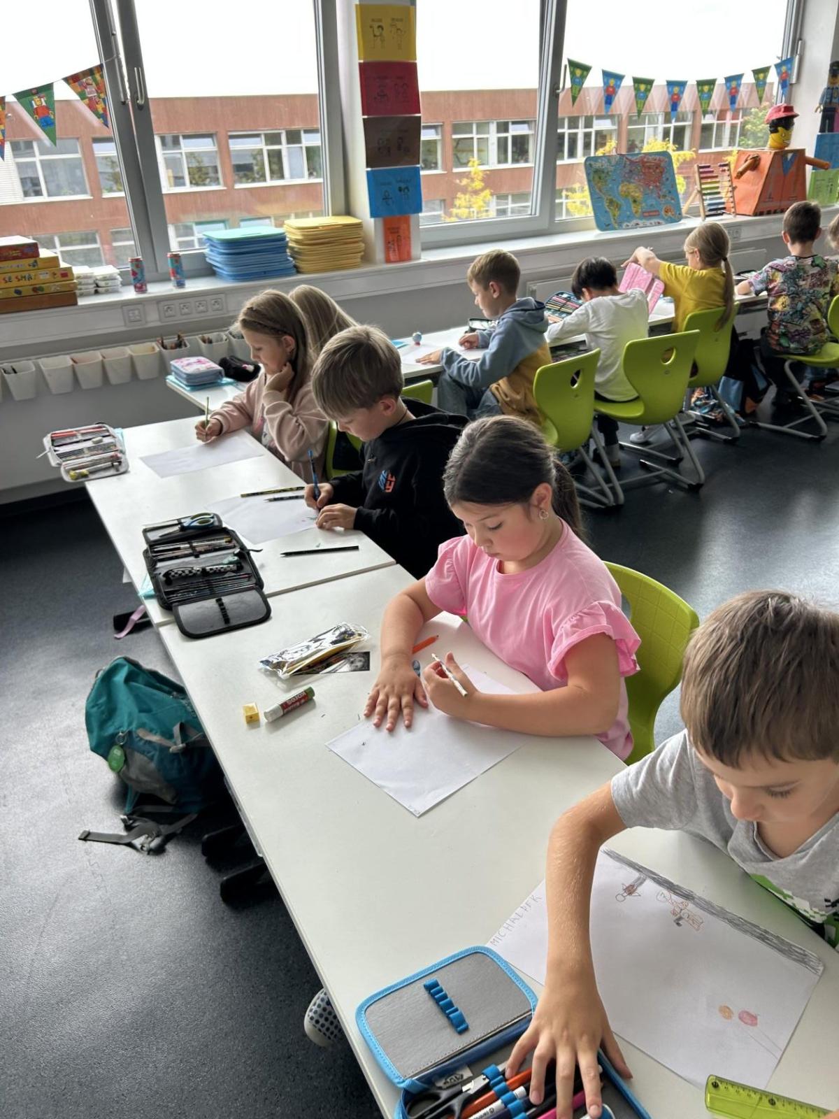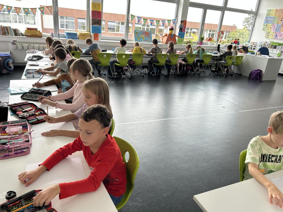 Na závěr jsme zavřeli oči a vyslechli příběh o jedné přátelské škole, kde se žáci cítili bezpečně a rádi tam chodili. Poté měl každý možnost namalovat svou vlastní „bezpečnou školu“ – obrázky ukázaly, jak děti vnímají naši třídu a co je pro ně důležité, aby se cítily dobře.