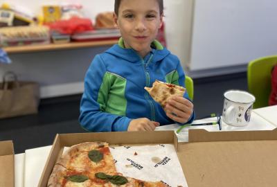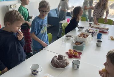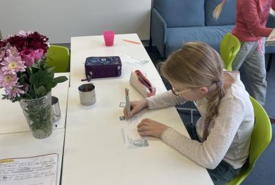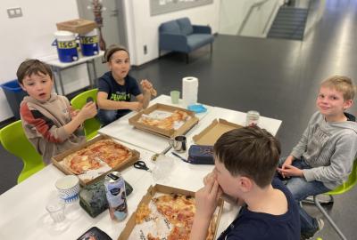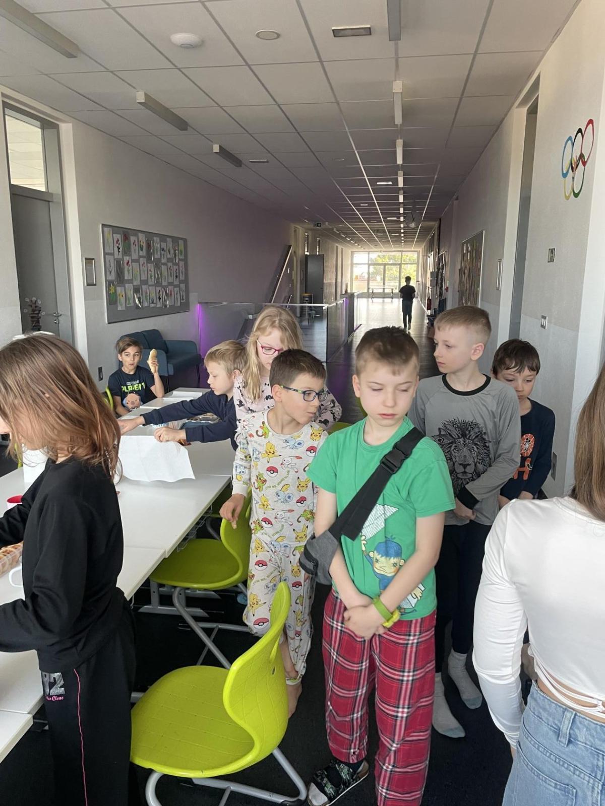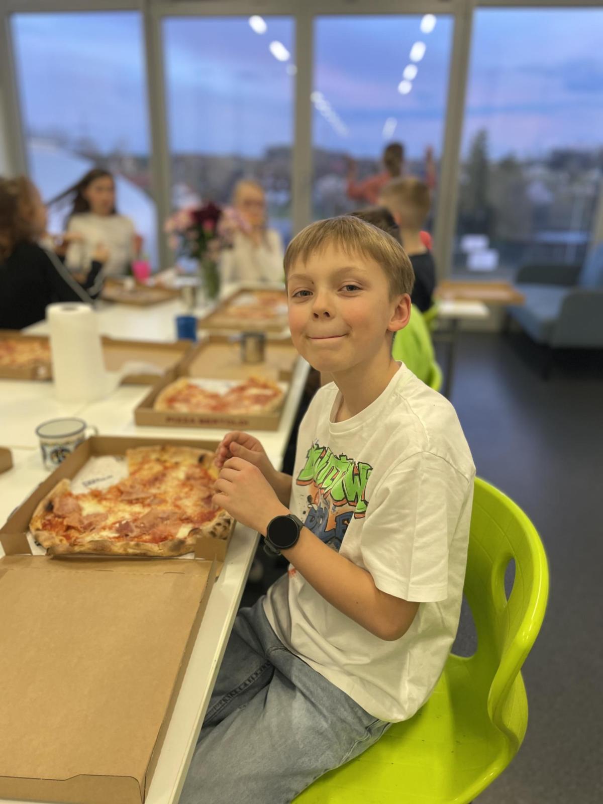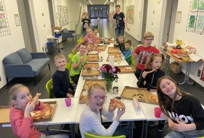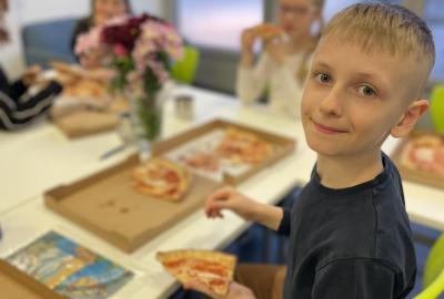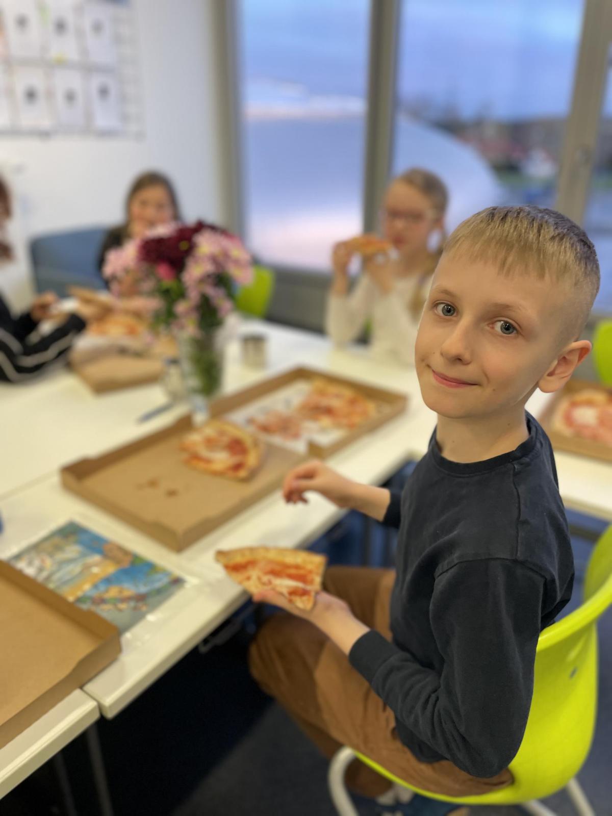 Celý program jsme zahájili ve třídě, kde jsme si společně přečetli text o slavném dánském spisovateli. Poté se děti pustily do psaní pohledů a sdílení svých dojmů. Nechyběla ani zasloužená večeře – výbornou pizzu nám zajistil pan Petráš, za což mu patří velké poděkování.