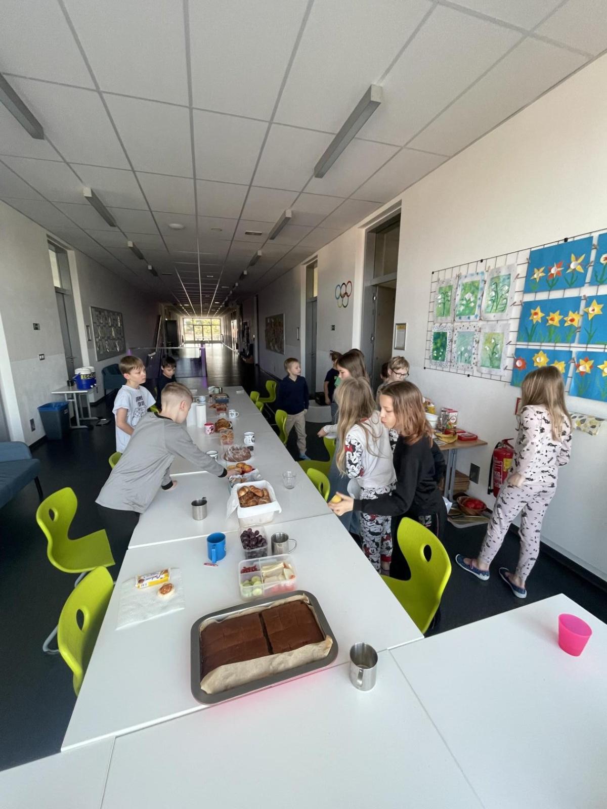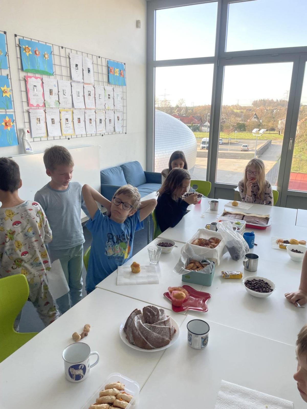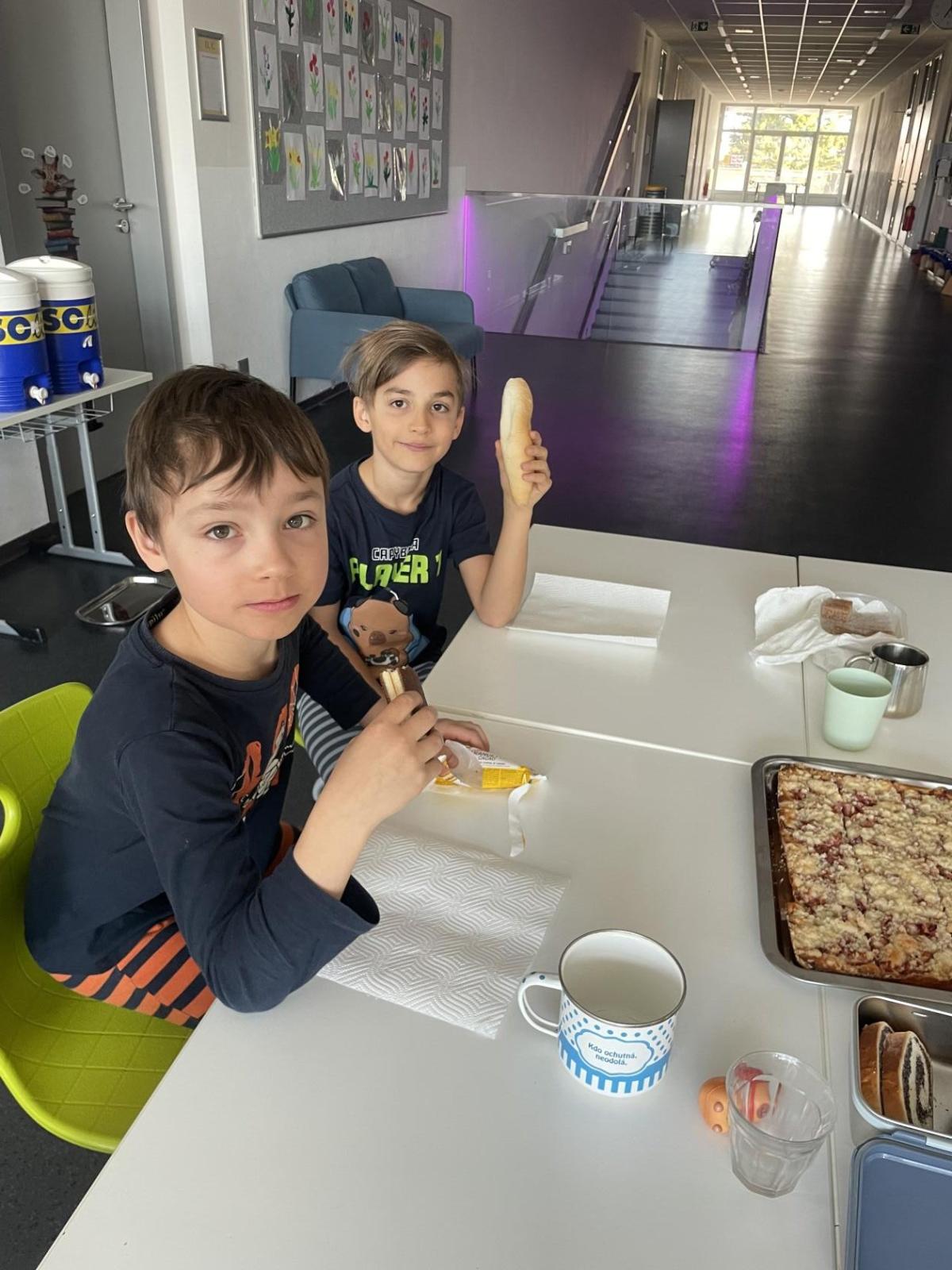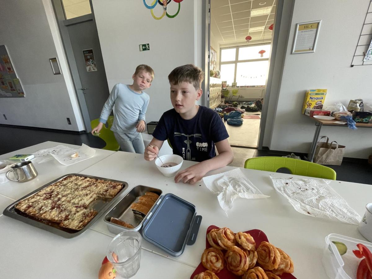 Po náročném večeru děti kolem půlnoci spokojeně usnuly. Ráno nás pak čekala společná snídaně, kterou připravili rodiče – každý přinesl něco dobrého a stoly se tak prohýbaly pod domácími dobrotami.