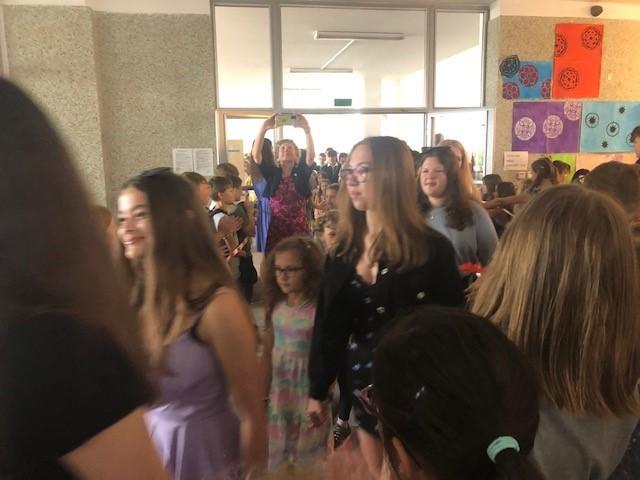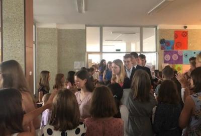Již ve středu 29. 6. představili naši "téměřabsovlenti" své třídy formou krátké prezentace, rozloučili se svými spolužáky z nižších ročníků a s jednotlivými učiteli, kteří je provázeli celou školní docházkou.