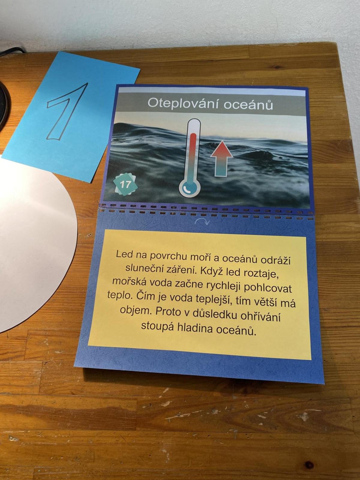 V pátek sedmáci navštívili zajímavý workshop v Toulcově dvoře. Program nazvaný Klimatická mozaika je určený starším dětem v řadě zemí po celém světě. Žáci se nejprve ve skupinkách pokusili odpovědět na otázky týkající se změny klimatu. Svou odpověď pak ověřovali klimatickým pokusem, jehož výsledky zaznamenali do "průvodky". Následovala obrázková karetní hra, která dětem umožnila pochopit souvislosti a zpřehlednit základní informace o změně klimatu. Na závěr pak navrhovali vlastní řešení, jak klima ochránit.