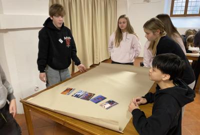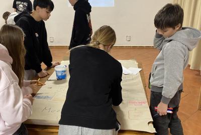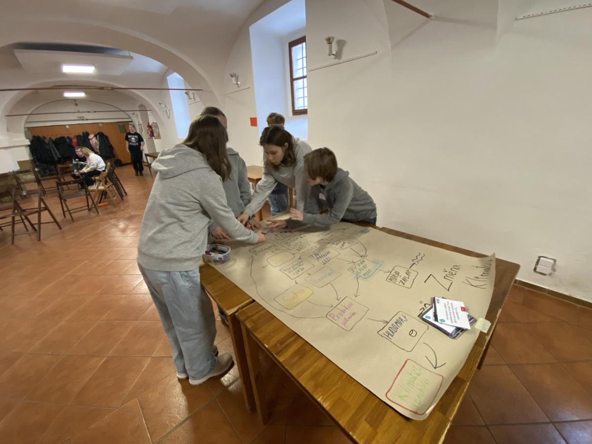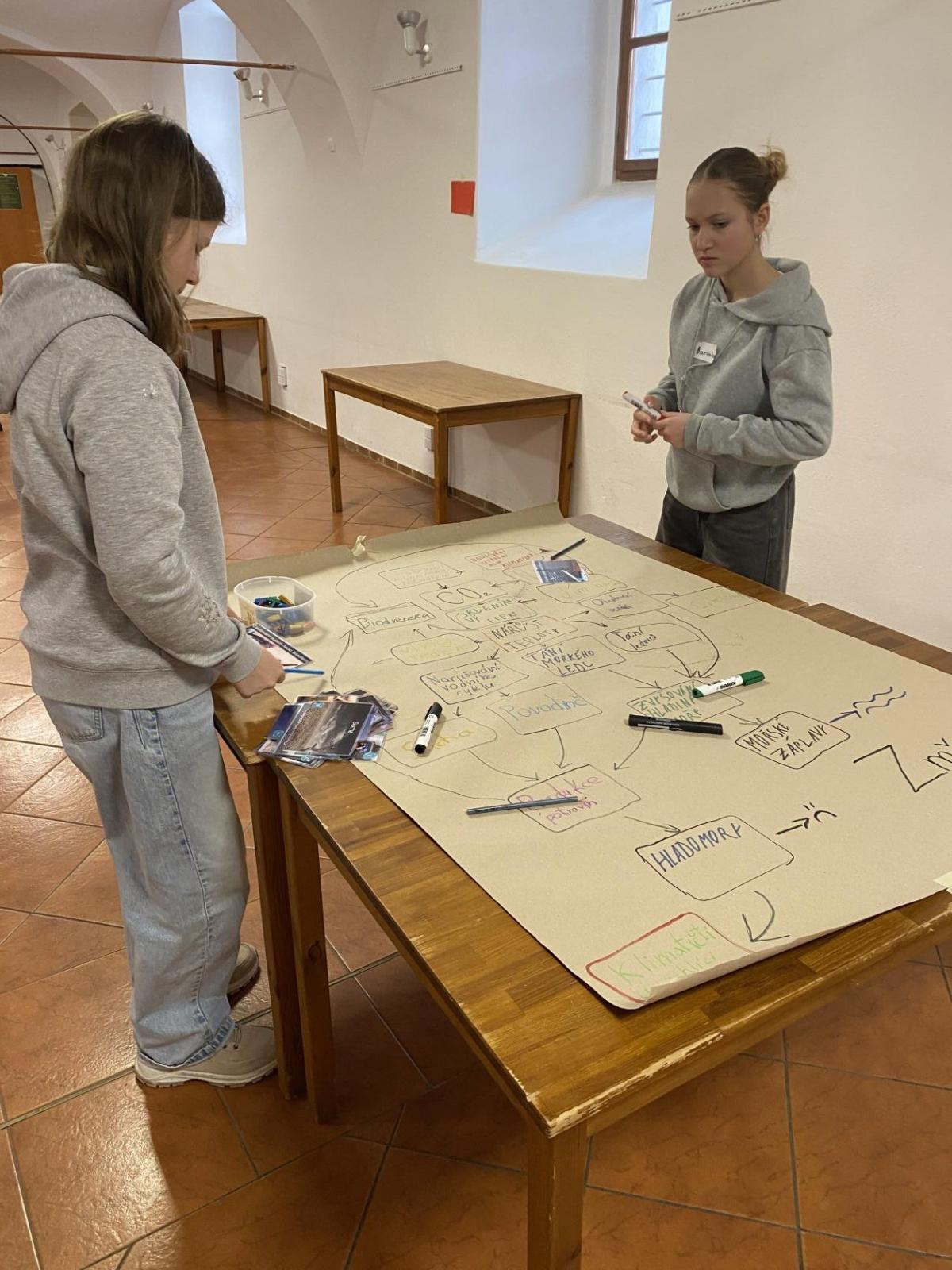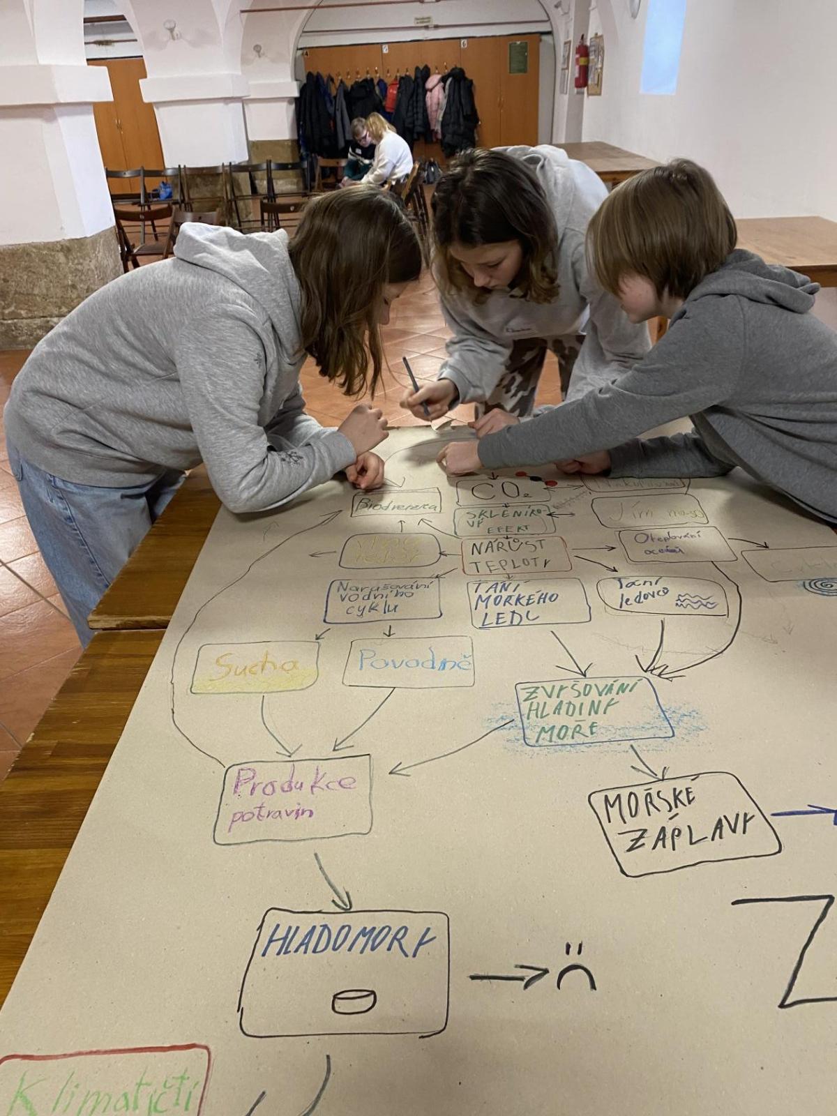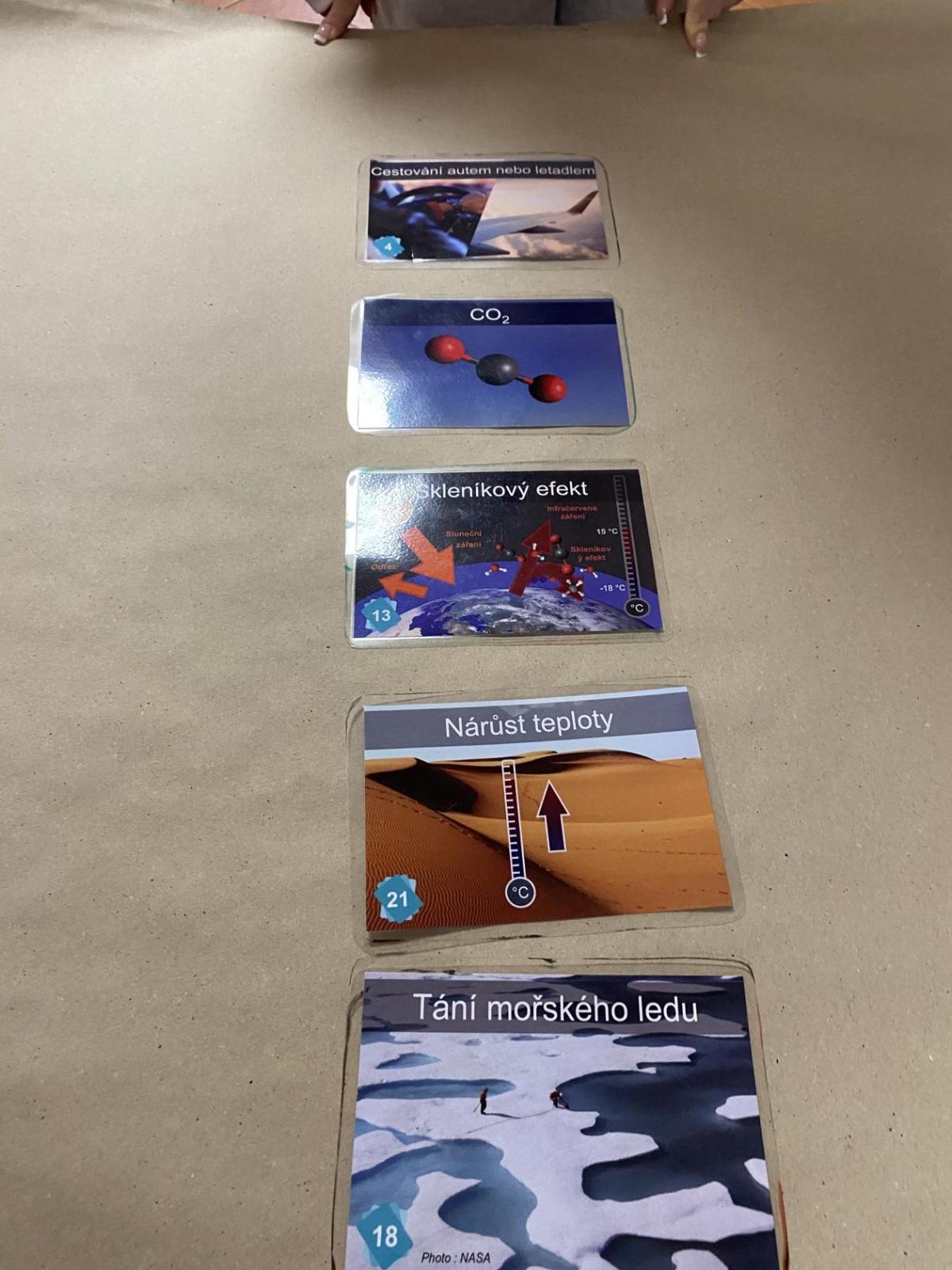 Sedmáci navštívili Toulcův dvůr, kde pomocí obrázkové karetní hry přicházeli na souvislosti problému klimatické změny. Tato hra byla součástí mezinárodně osvědčeného workshopu Climate fresk neboli Klimatické mozaiky.