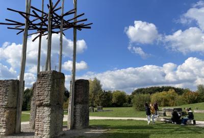 Sedmáci se před vlastní prostorovou tvorbou inspirovali sochaři a jejich díly umístěnými v Dolních Břežanech.