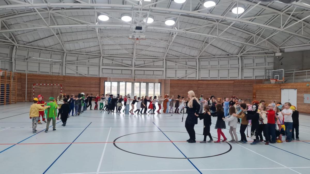 Protože v únoru bývá čas masopustu, nechyběl ani třídní masopust. Celý den byl plný smíchu a veselí. Všichni jsme dorazili v krásných maskách, zpívali jsme, tancovali a užili si radovánky v tělocvičně – přesně tak, jak se na správný masopust patří.