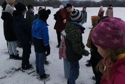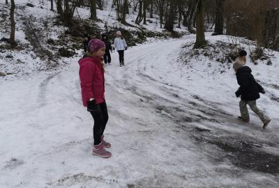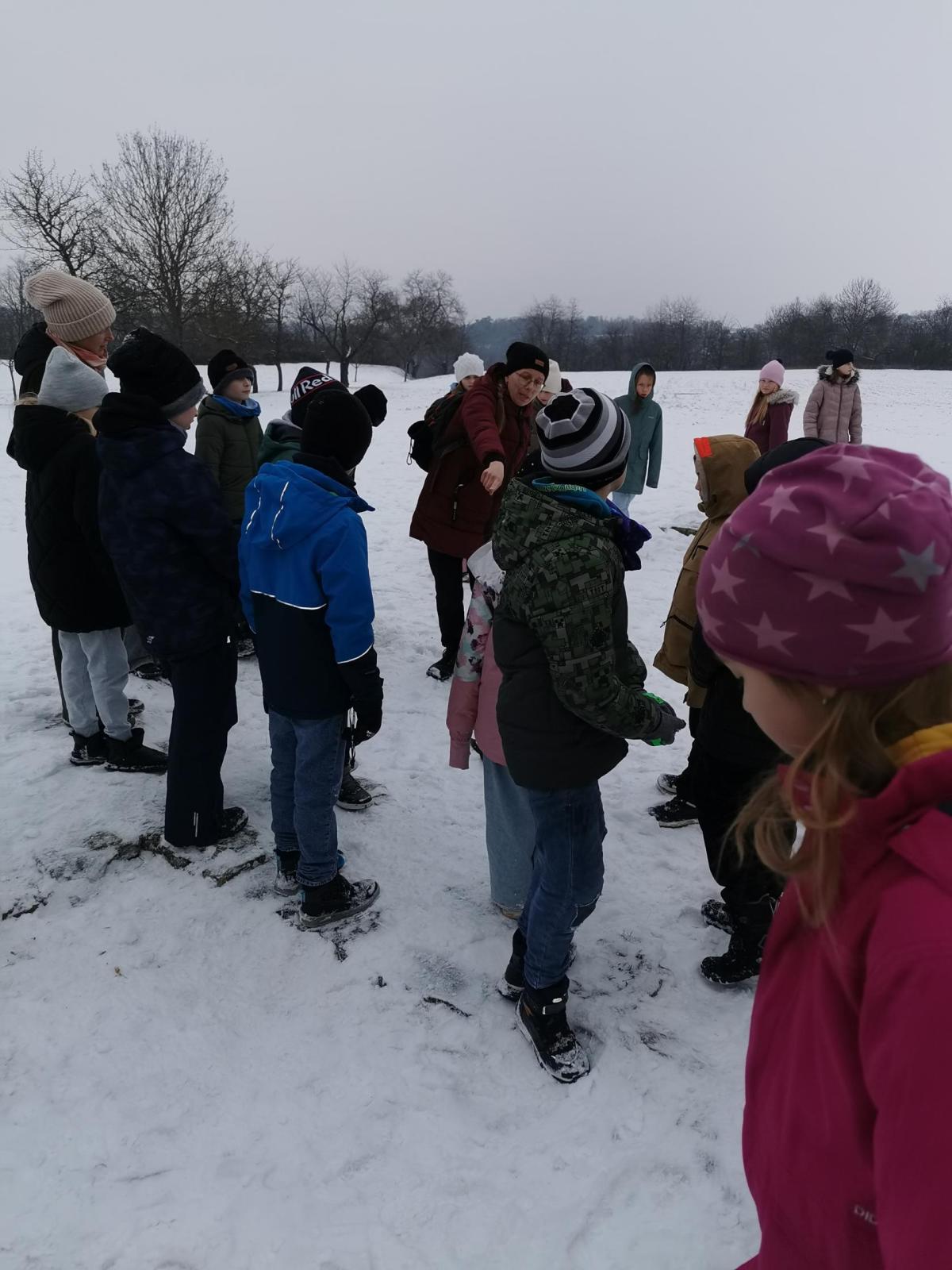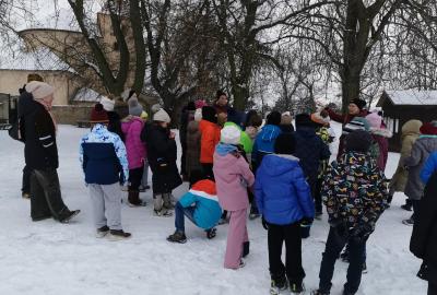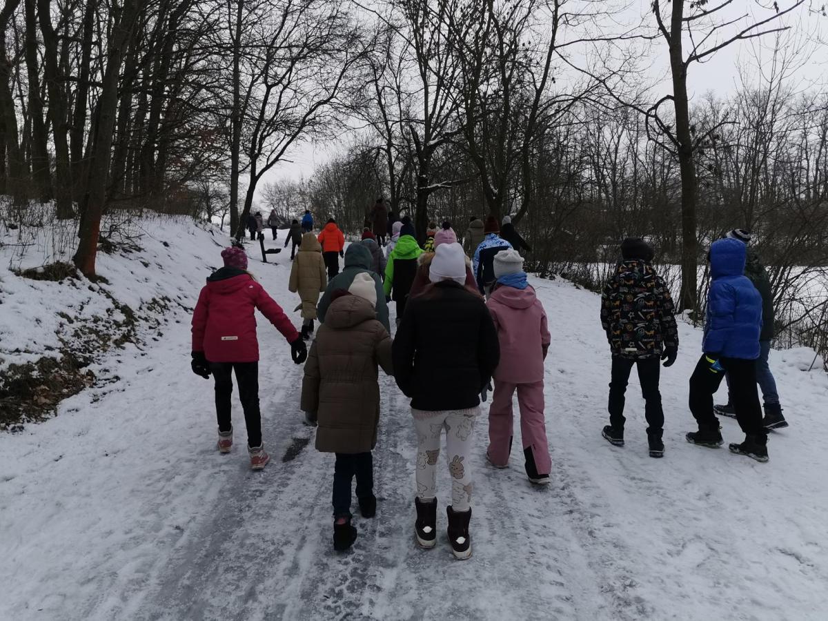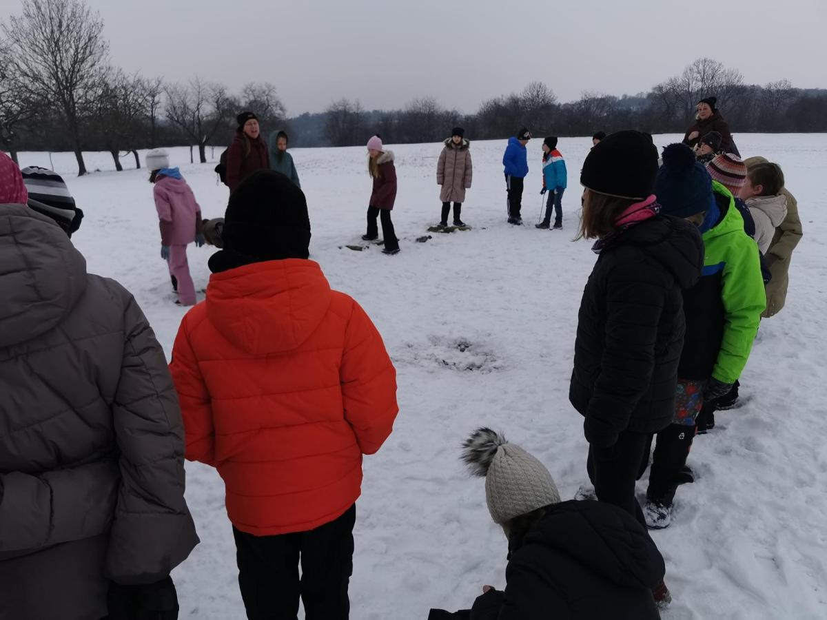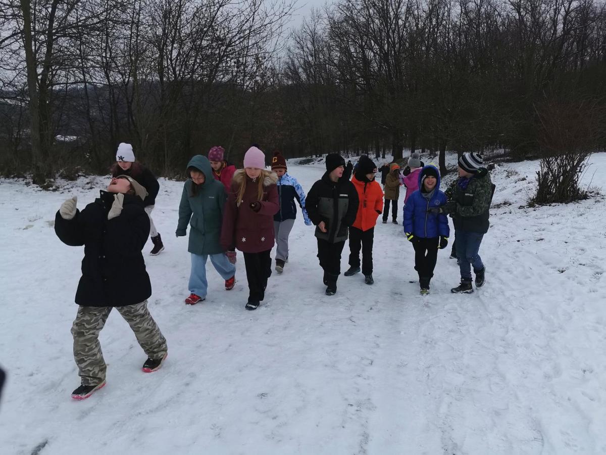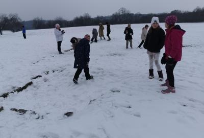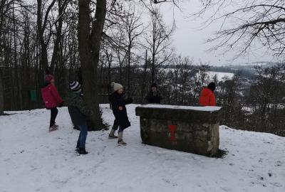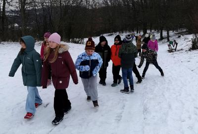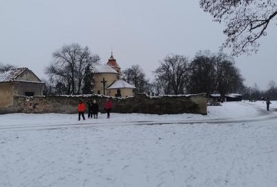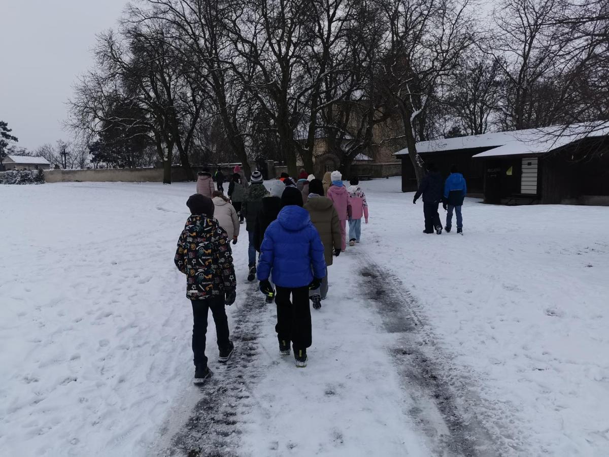 Poté jsme pokračovali na Budeč. Po červené turistické značce jsme se vydali po klouzavé ledovce asi 1 kilometr k rotundě. Paní průvodkyně nám nejdříve vyprávěla o tom, že Budeč je možná ještě starší než Levý Hradec.