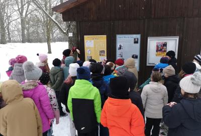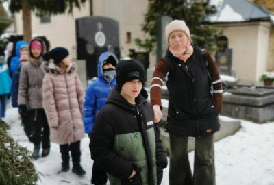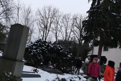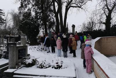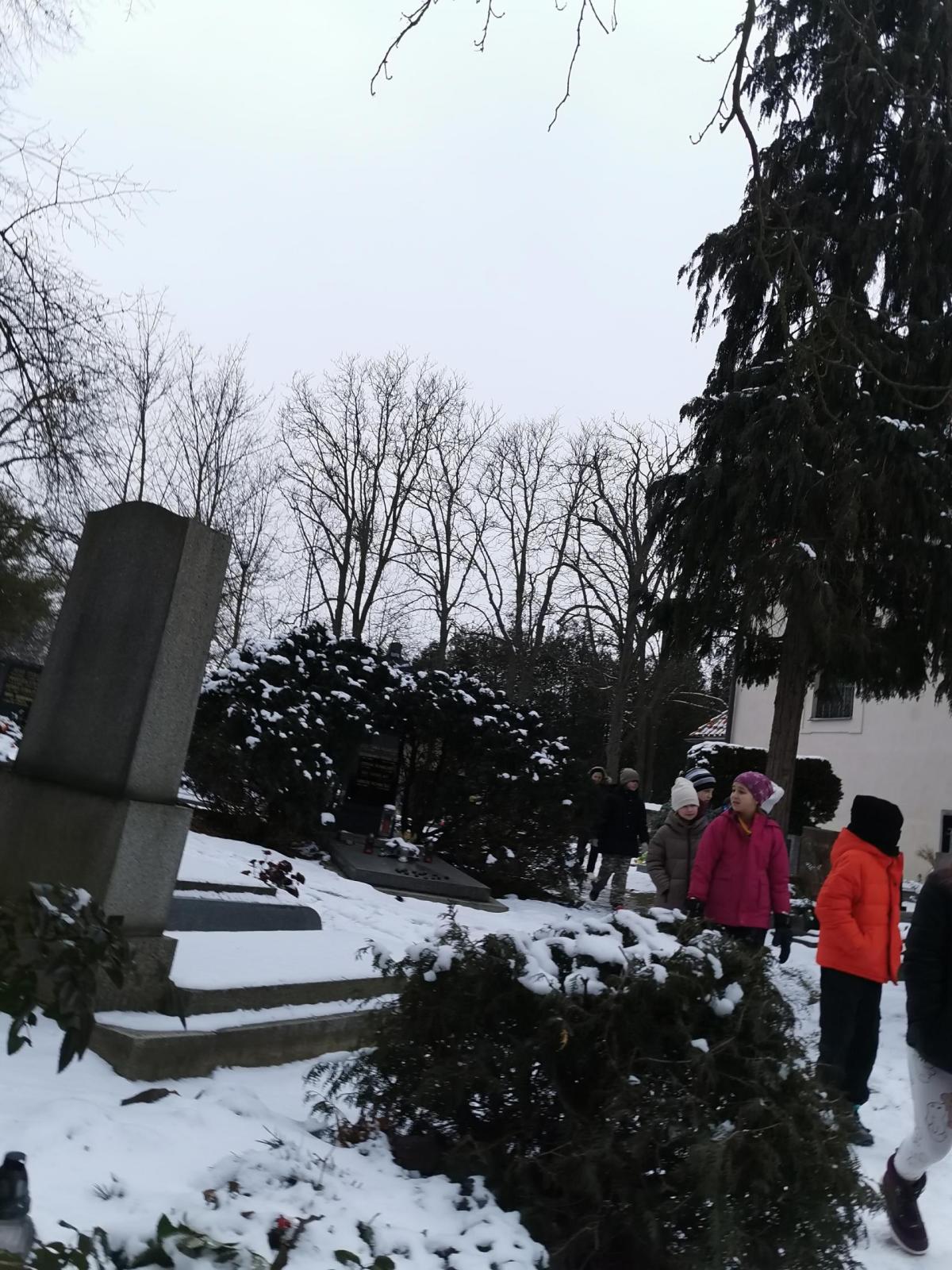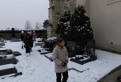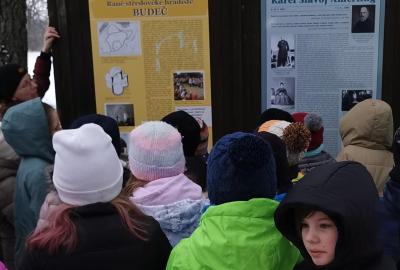 Na závěr nám paní průvodkyně ukázala hrob Karla Slavoje Amerlinga, významného pedagoga 19. století, který je pohřben na budečském hřbitově. Inspirován výukou svatého Václava na Budči chtěl založit školu, kde by se lidé učili nejen číst a psát, ale také se starat o hospodářství a dobytek. Dnes bychom takovou výuku mohli přirovnat k pěstitelským dílnám.