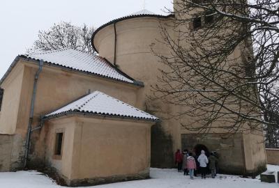 Ukázala nám půdorys Kostela Narození Panny Marie, který byl zasypaný sněhem. Pečlivě jsme si prohlédli kamenné pozůstatky z opuky. Kostel byl určen hlavně pro bohatší obyvatele hradiště, kterých zde žilo asi 80–100. Archeologové zjistili, že kostel je o 100 let starší než rotunda. Na místě se také našlo hodně dřeva, které mohlo patřit ke schodišti ke zvonici z doby Rudolfa II.