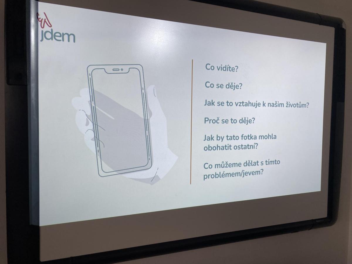 Workshop byl rozdělen na dva bloky. V první části žáci přemýšleli, kdo je to aktivní občan, seznámili se s inspirativními příklady svých vrstevníků. Dále fotografovali ve škole místa, které podle nich fungují, ale zaměřili se i na věci, které by zasloužily zlepšení. Vznikl tak pestrý soubor nejen podnětných nápadů, ale i problémů, které se snažili žáci pojmenovat.