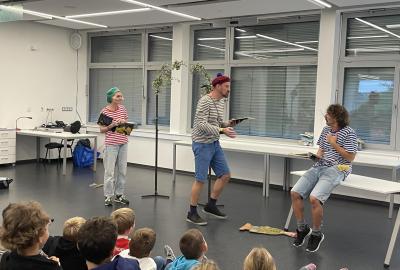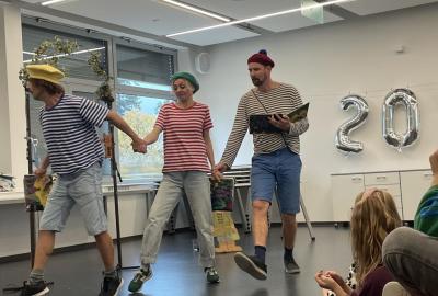 Na jevišti vystoupili tři herci, kteří nám knihu přiblížili nejen předčítáním, ale i výrazným hereckým projevem, pohybem a rekvizitami. Díky jejich energii a humoru se příběh o partě kluků, kteří objeví tajemnou zahradu plnou fantazie a dobrodružství, stal opravdu živým a poutavým.