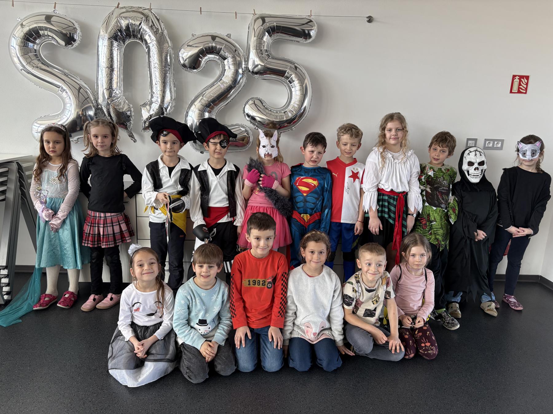 Družinového karnevalu se účastnily děti z 1.A, 1.B, 1.C a 4.A. Kostýmy byly různé od pokémonů přes princezny až dokonce po slavné osobnosti, mezi něž patří například Rytmus z 1.B. Přivítání na karnevalu dostali i mýtičtí a legendární tvorové, jako jsou draci a jednorožci.