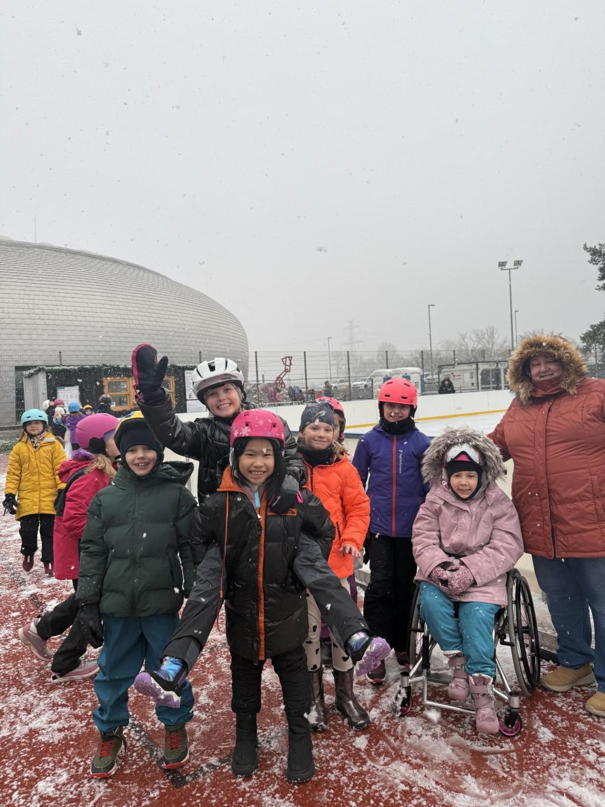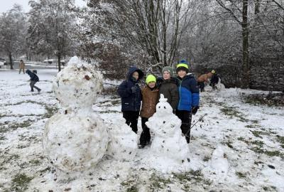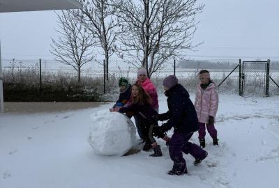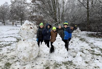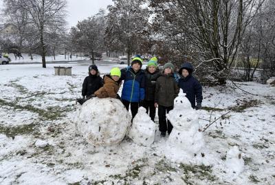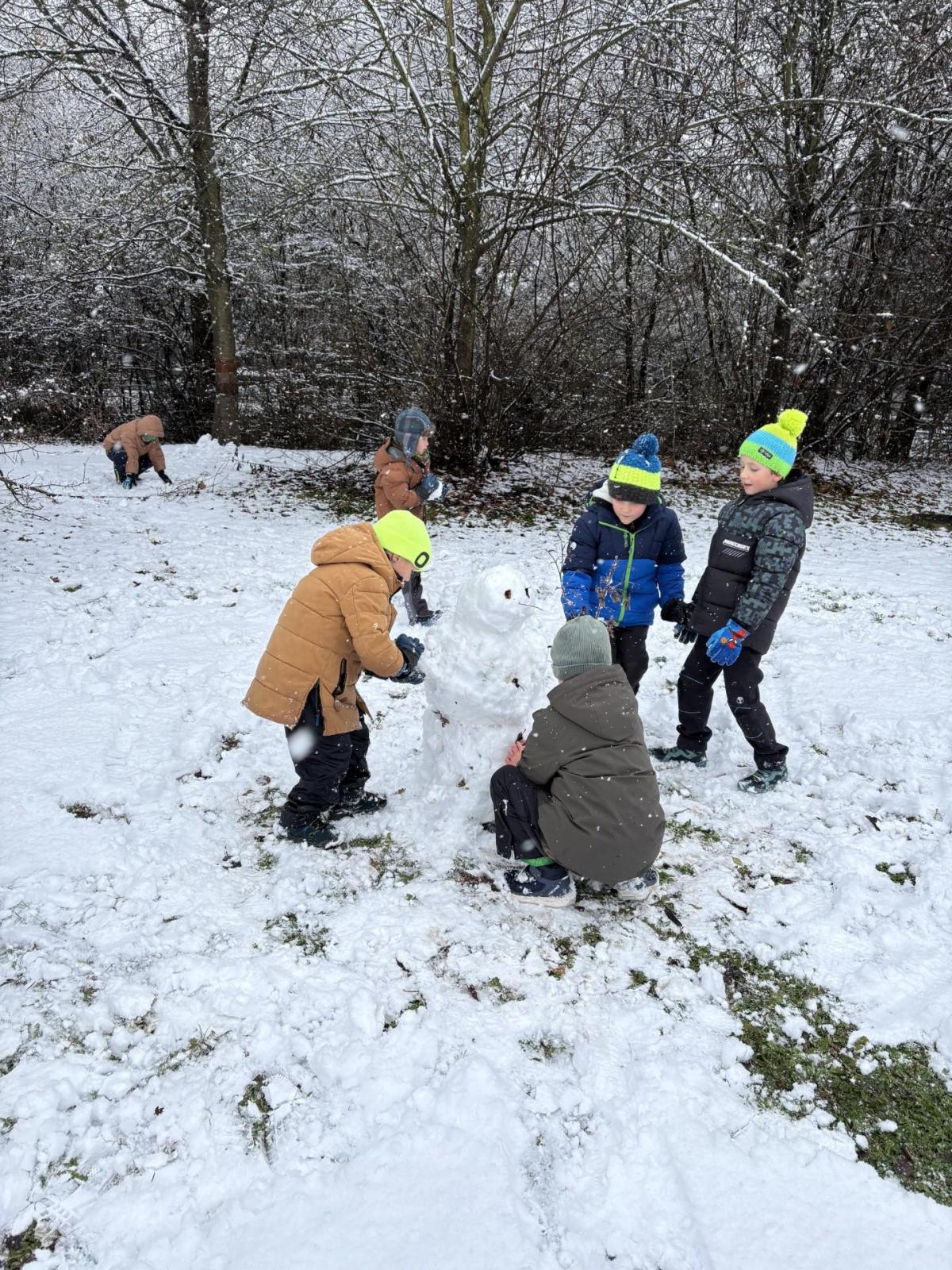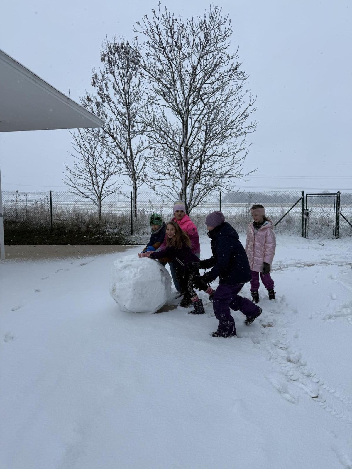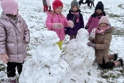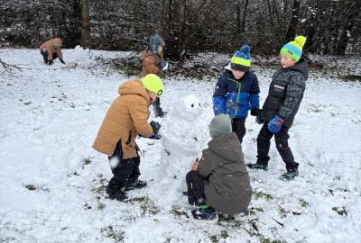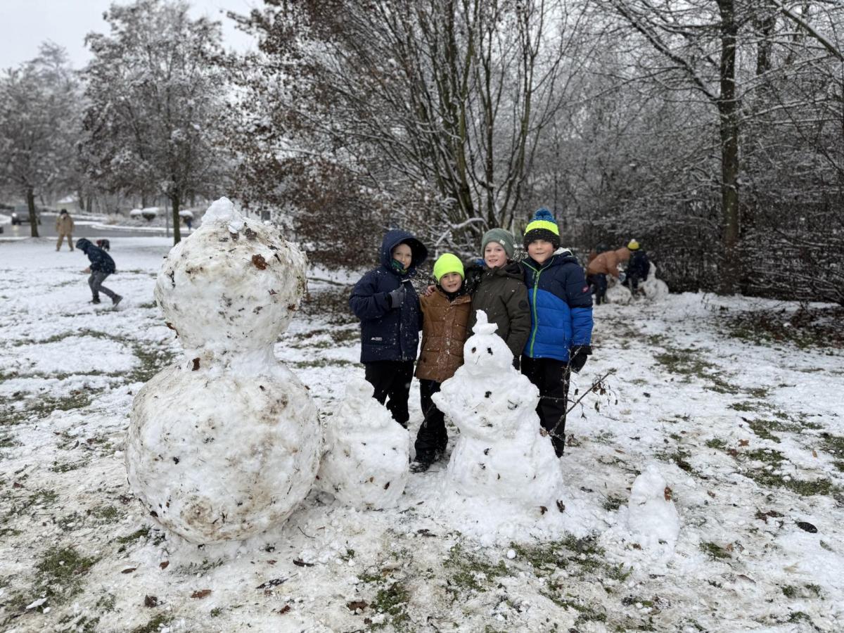 Venku si děti užívaly zimního počasí naplno: stavěly sněhuláky, bobovaly v Keltském parku, klouzaly se a bruslily na školním kluzišti.