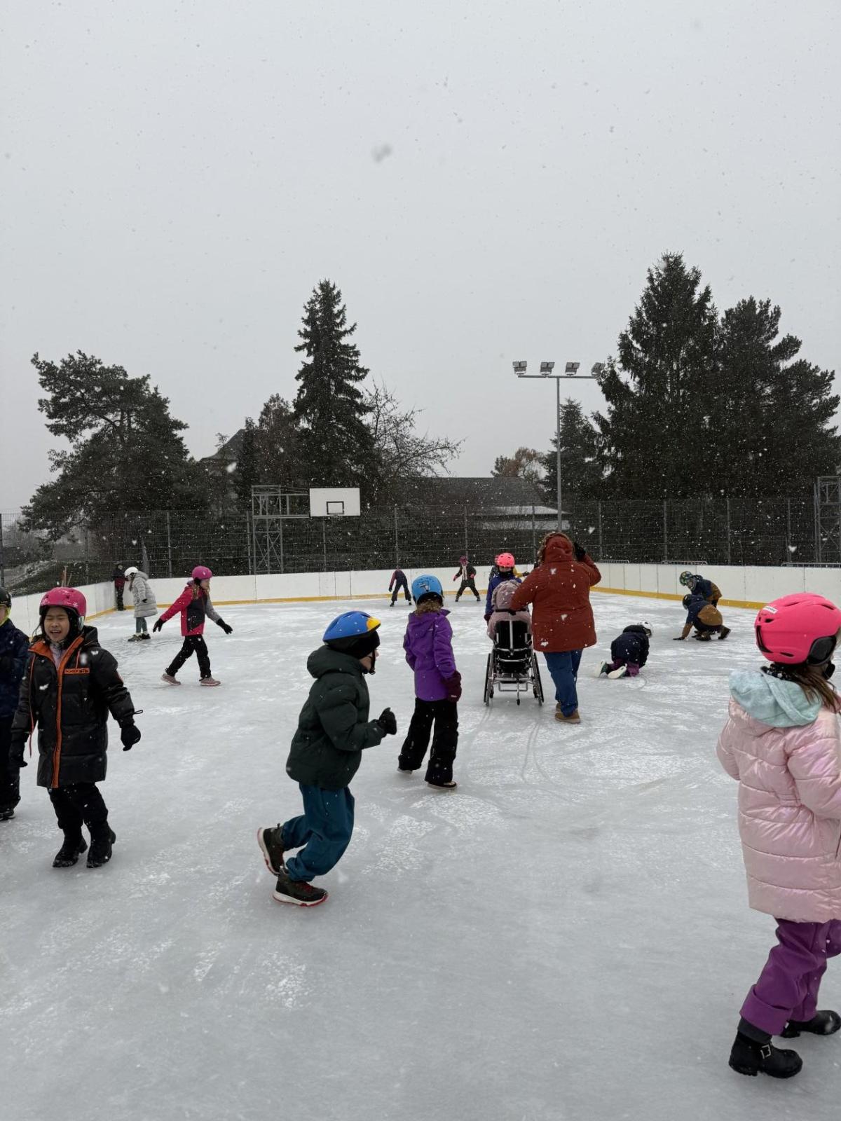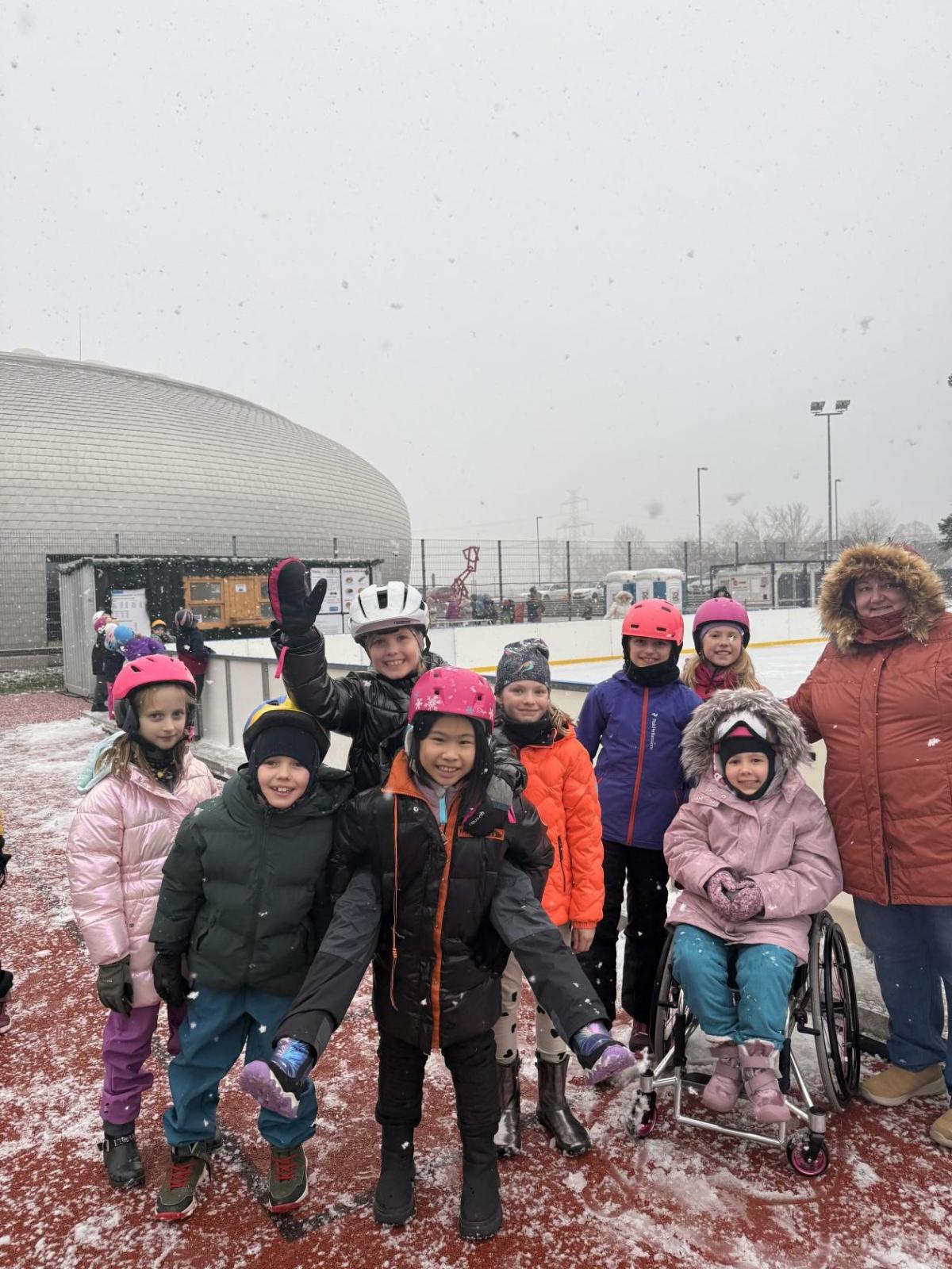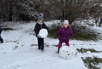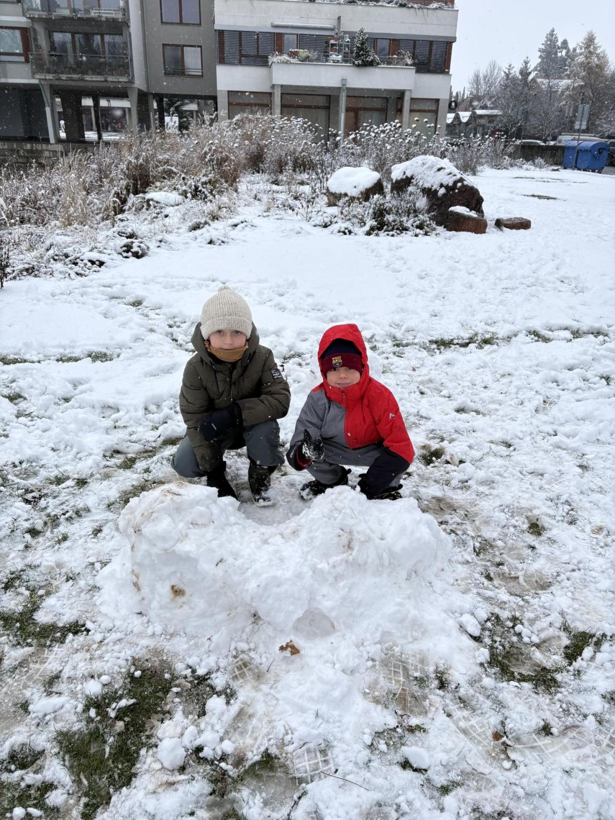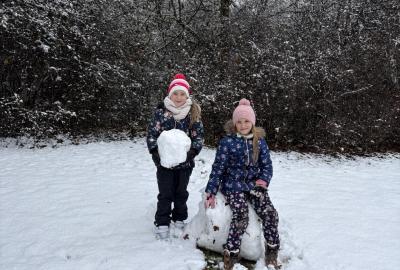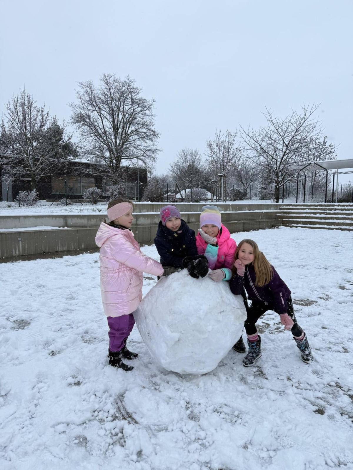 Venku si děti užívaly zimního počasí naplno: stavěly sněhuláky, bobovaly v Keltském parku, klouzaly se a bruslily na školním kluzišti.
