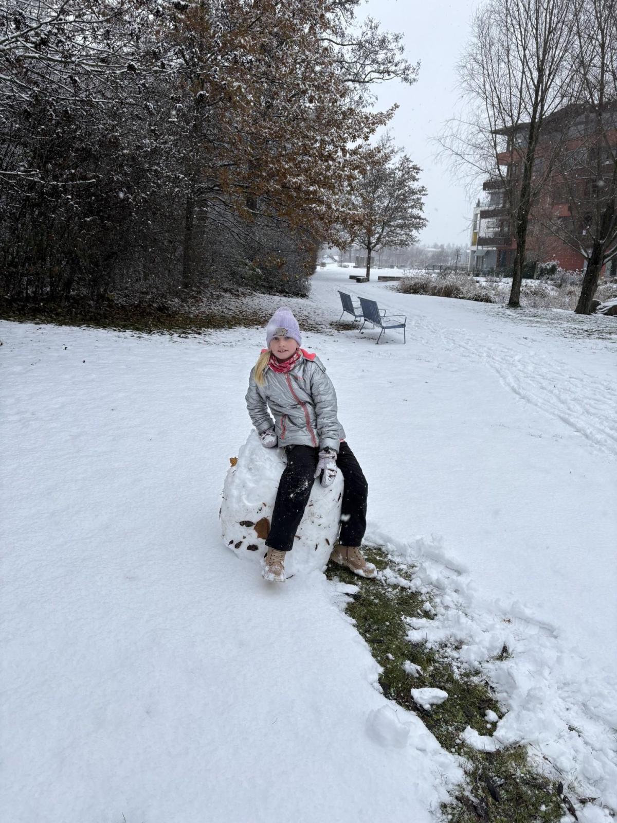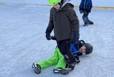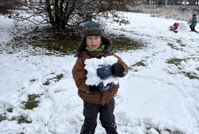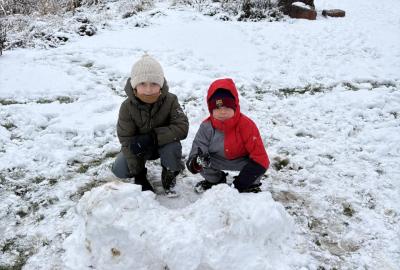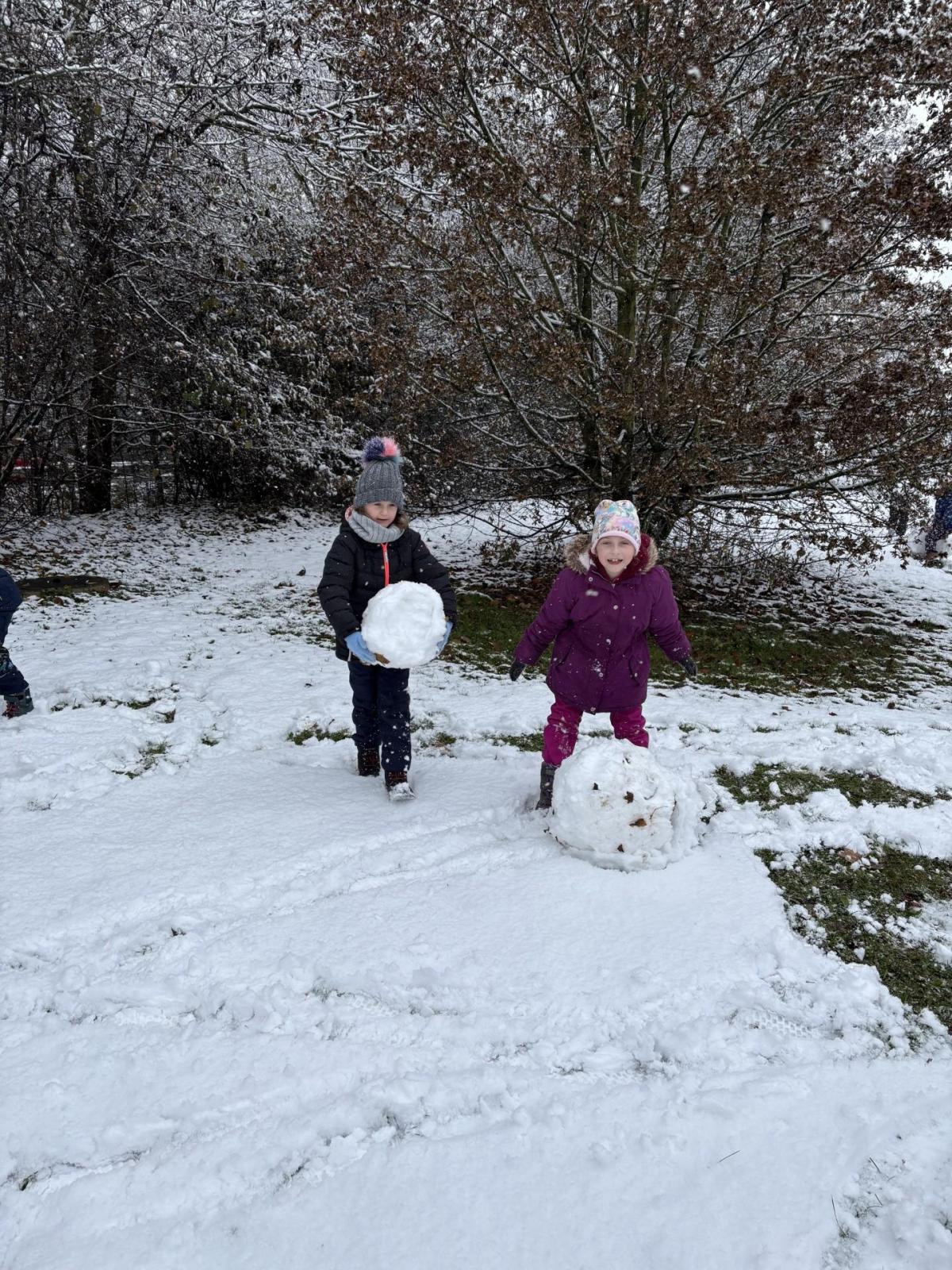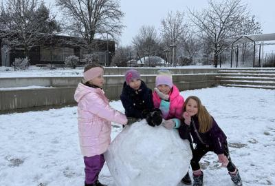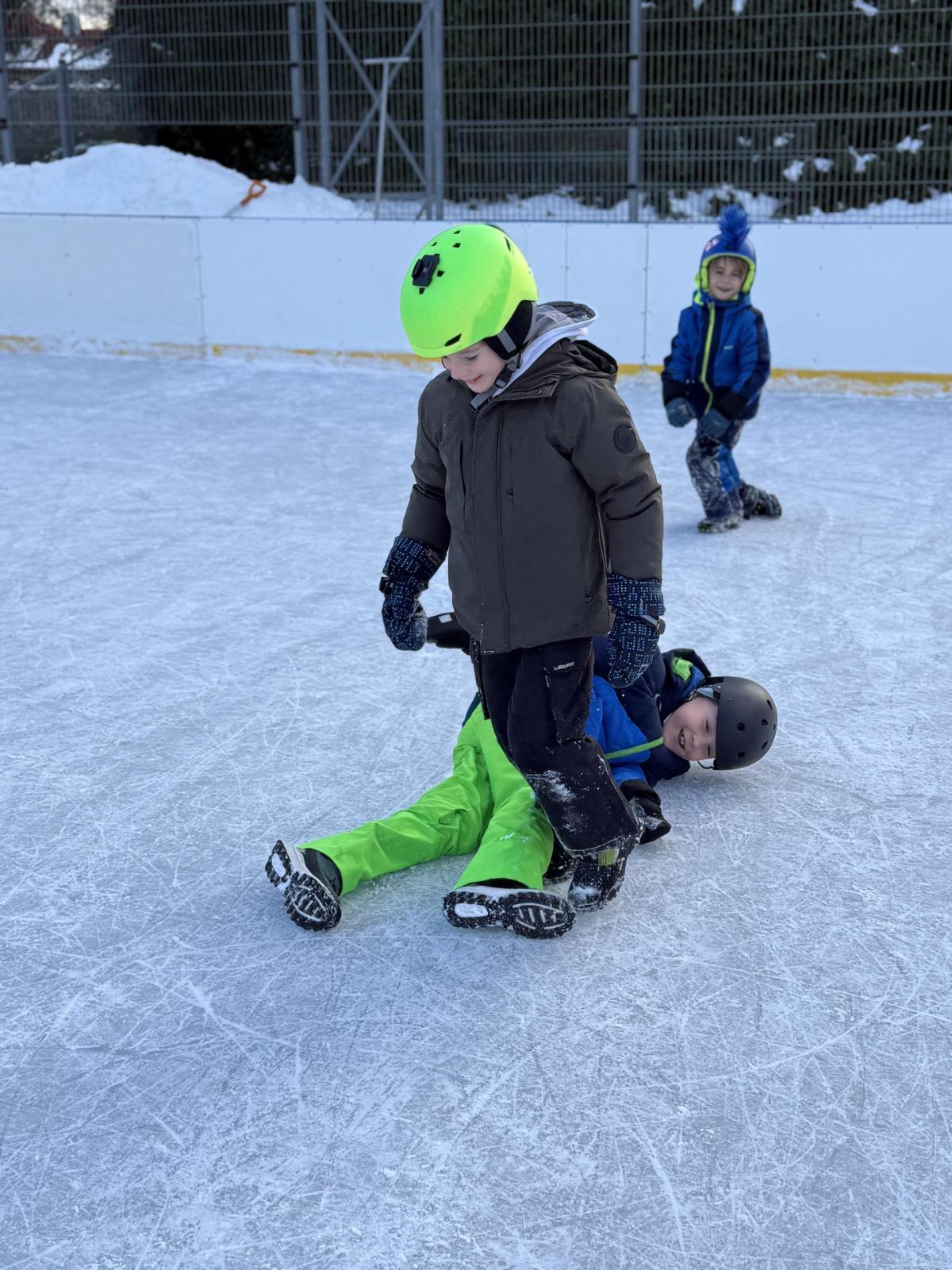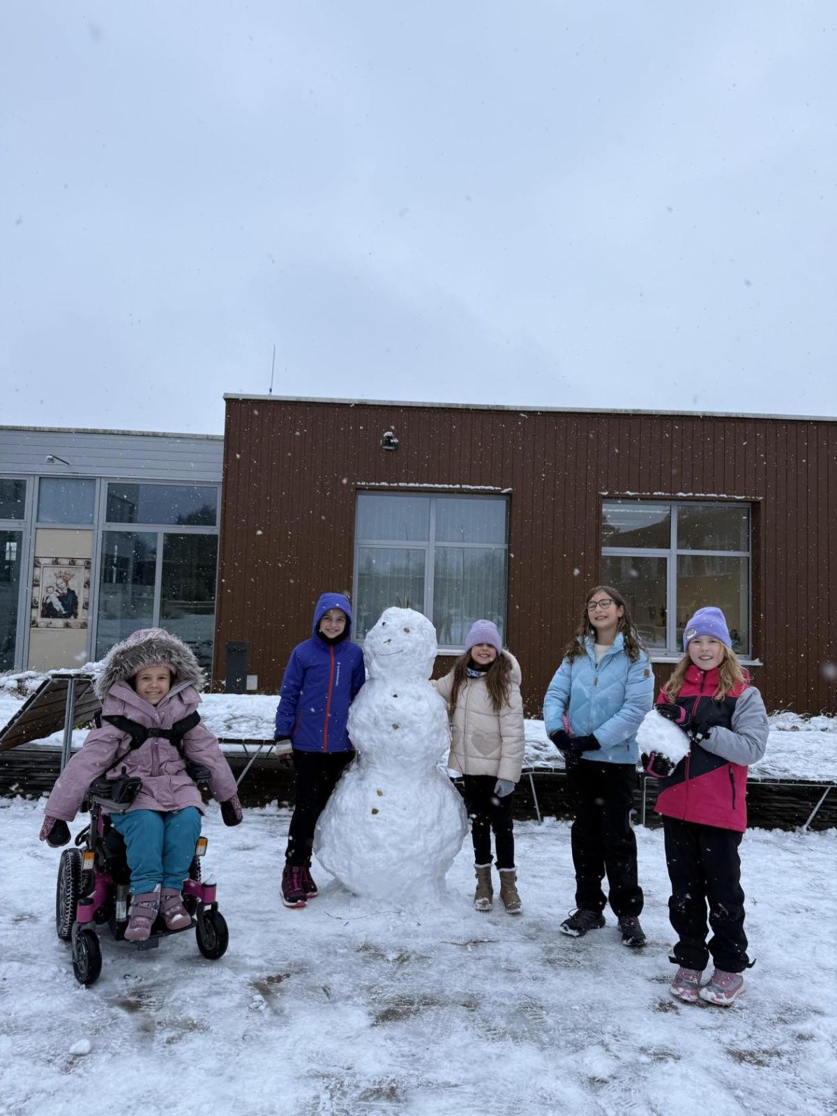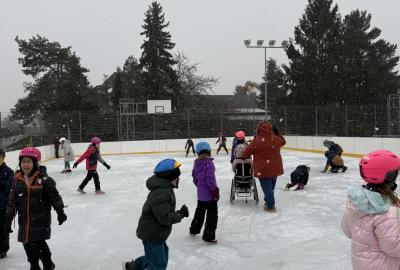 Venku si děti užívaly zimního počasí naplno: stavěly sněhuláky, bobovaly v Keltském parku, klouzaly se a bruslily na školním kluzišti.