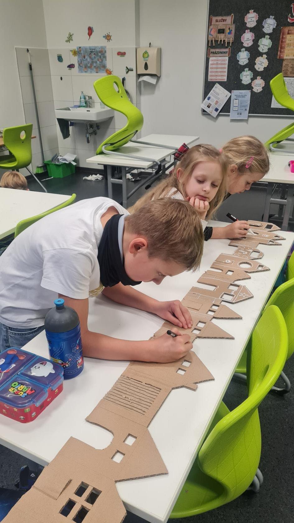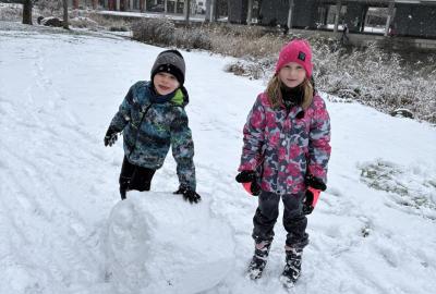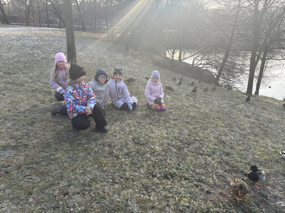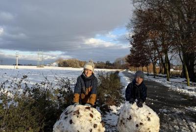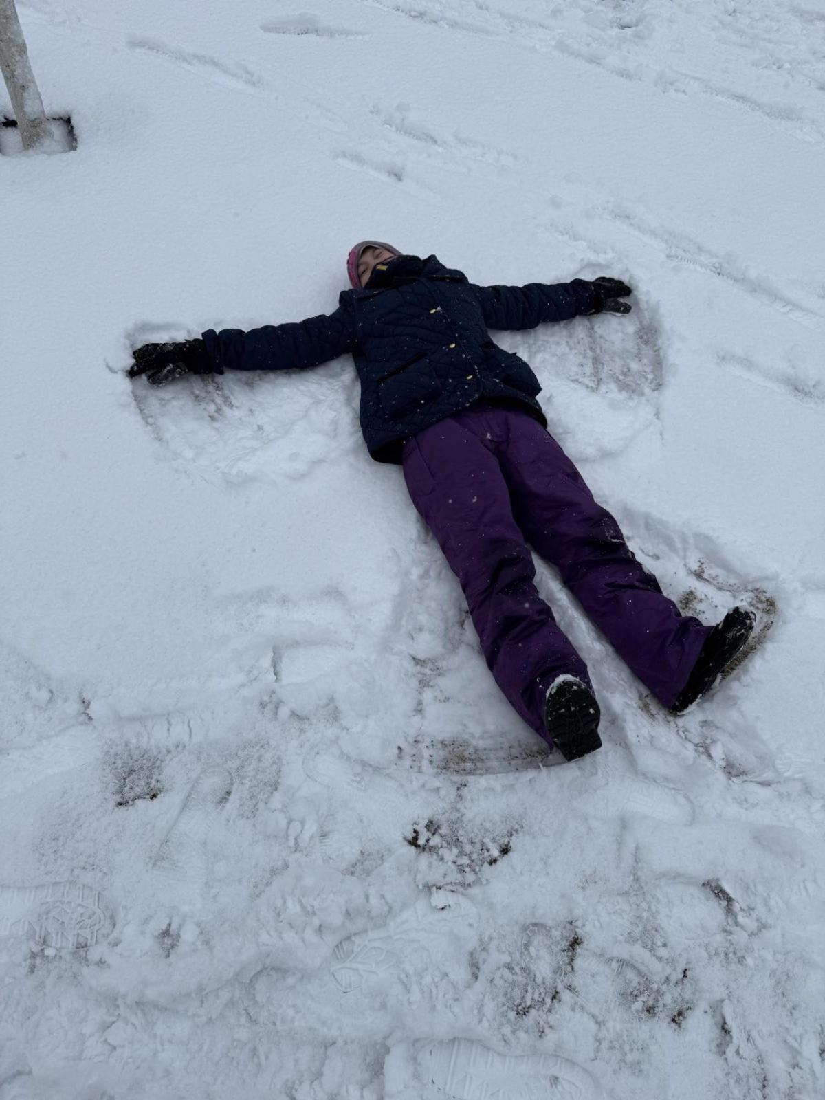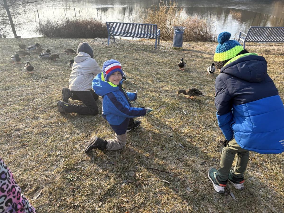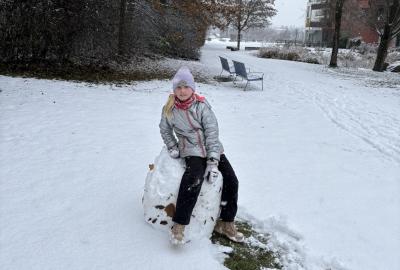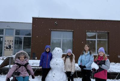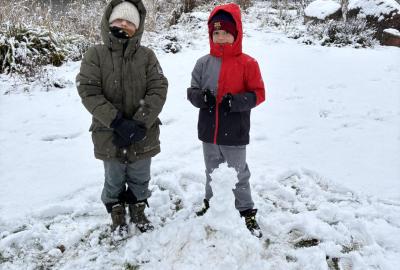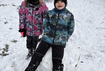 Venku si děti užívaly zimního počasí naplno: stavěly sněhuláky, bobovaly v Keltském parku, klouzaly se a bruslily na školním kluzišti.