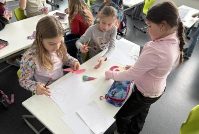 V den svátku sv. Valentýna tvořily děti Strom laskavosti – do srdíček psaly milé vzkazy pro kamarády a vyráběly valentýnská přáníčka.