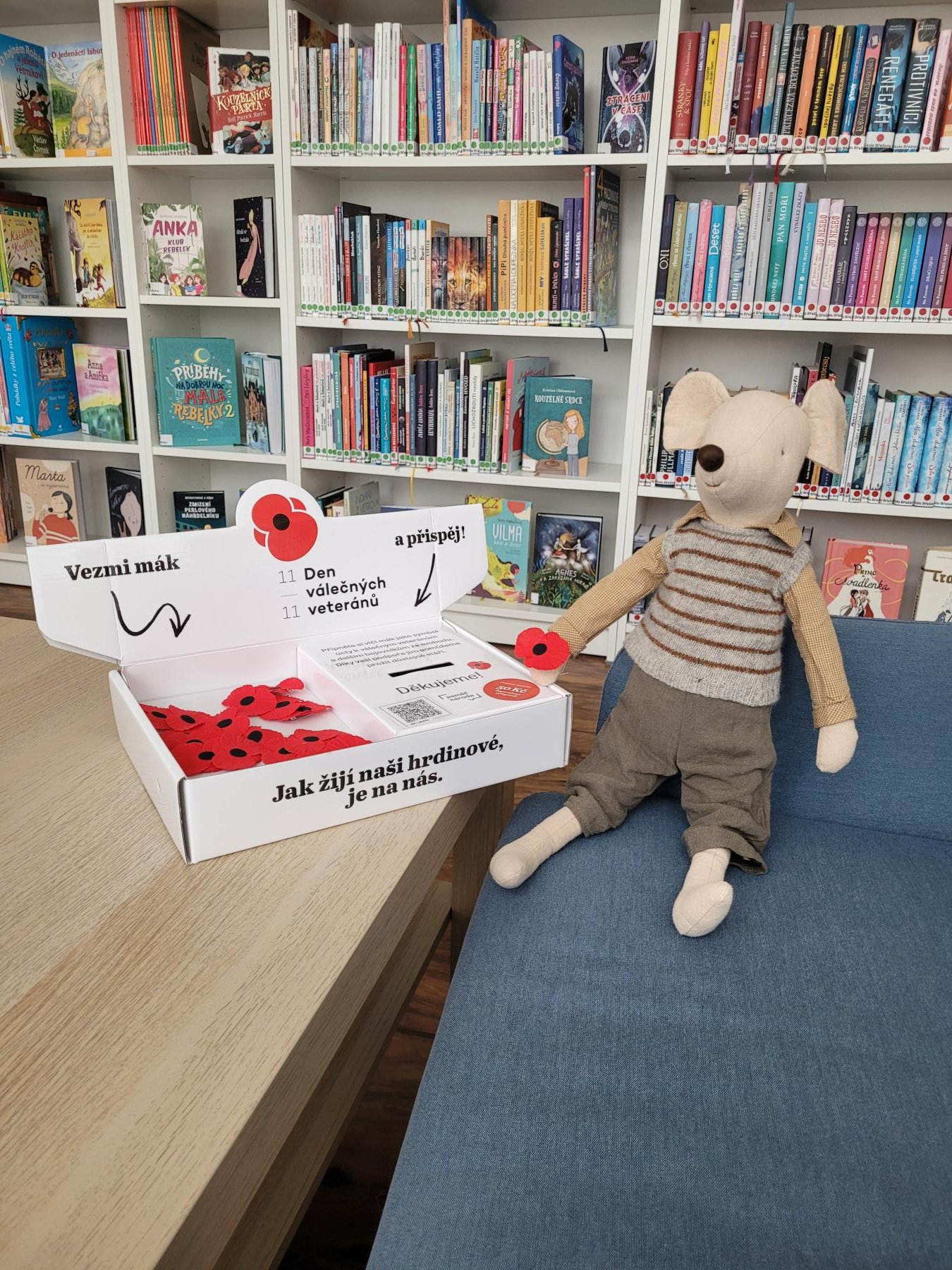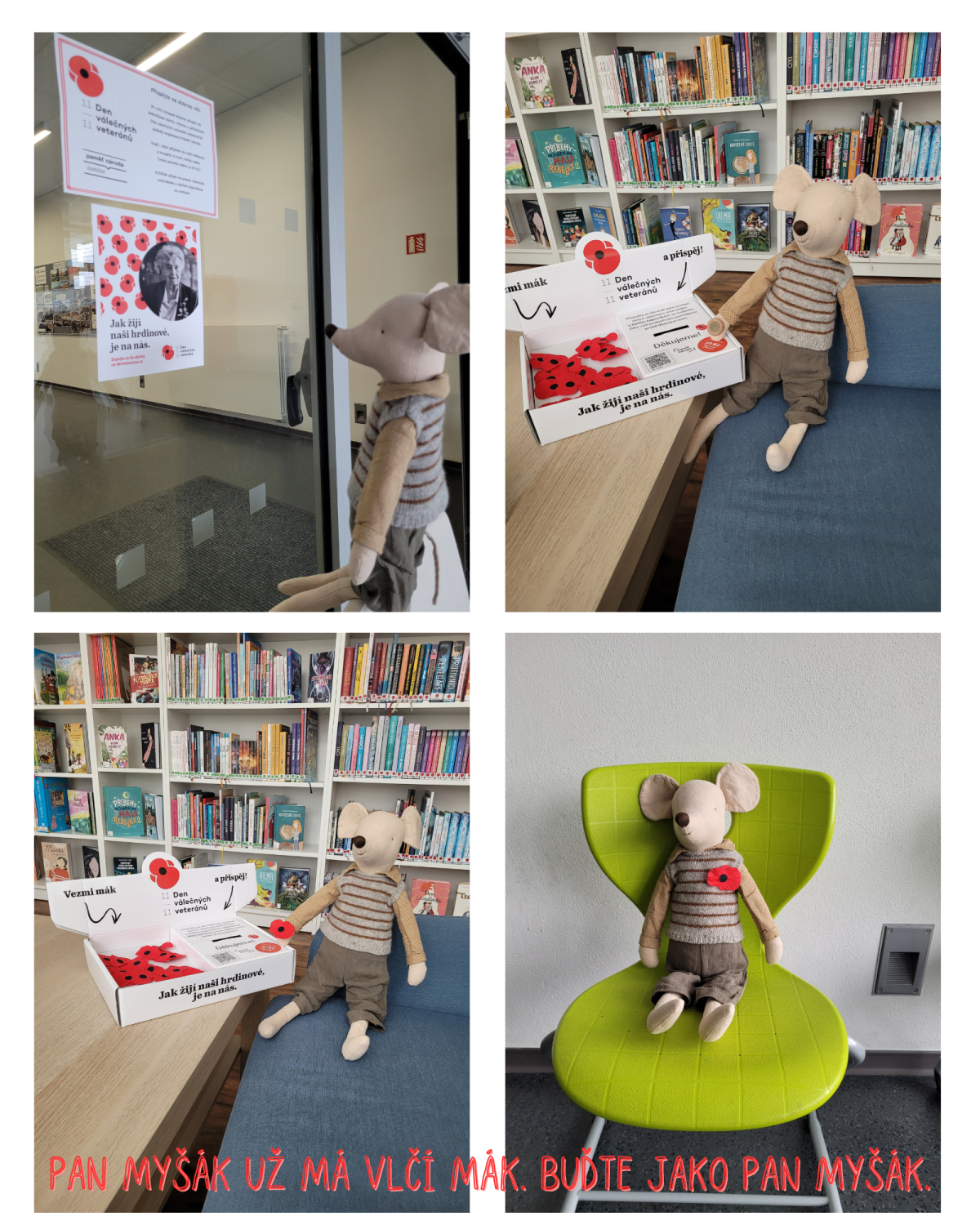 Na 11. listopad připadá Den válečných veteránů a my připomínáme, že si až do konce měsíce můžete ve školní knihovně zakoupit květ vlčího máku a přispět tak do dobročinné sbírky, kterou právě na podporu veteránů a dalších bojovníků za svobodu pořádá organizace Paměť národa (více o sbírce ZDE). Děkujeme všem, kteří už si vlčí mák v uplynulých dnech koupili, a těšíme se na všechny, kteří se na to ještě chystají. Můžete se inspirovat naším panem Myšákem, který už si mák také koupil - jeho cestu ke kytičce najdete v galerii článku.