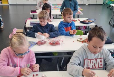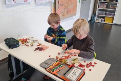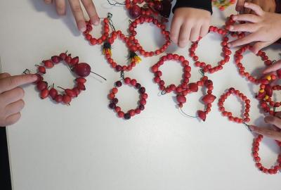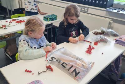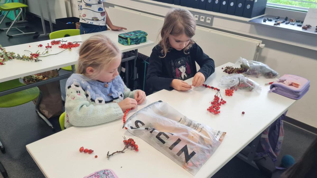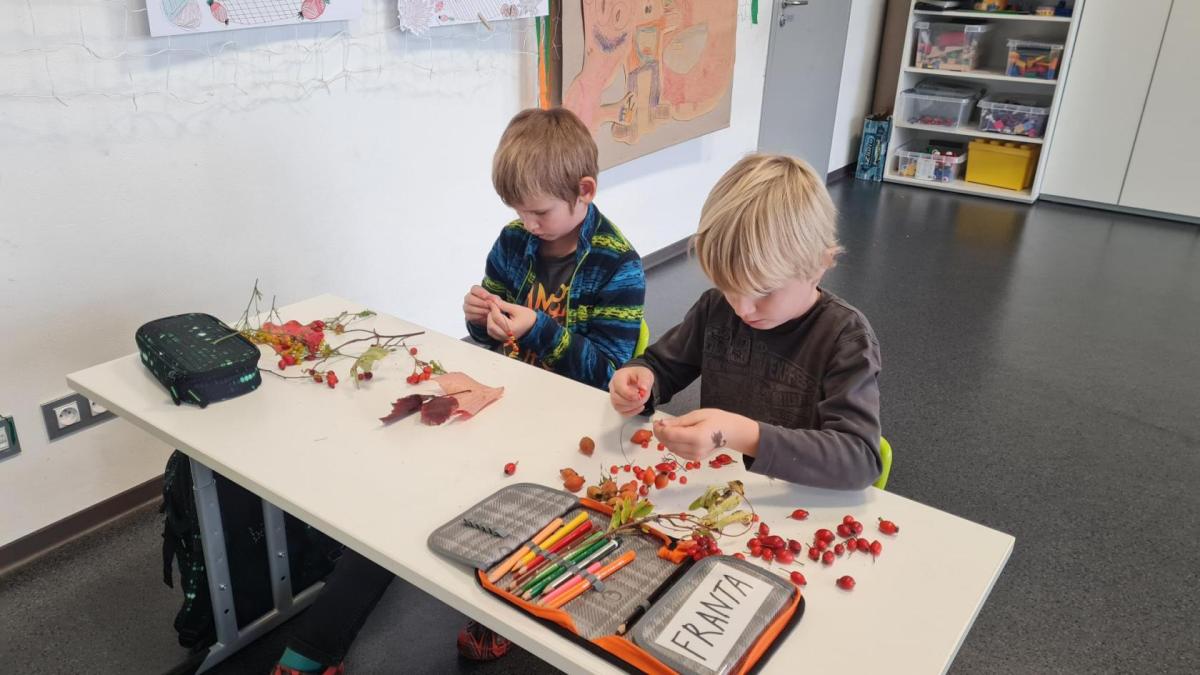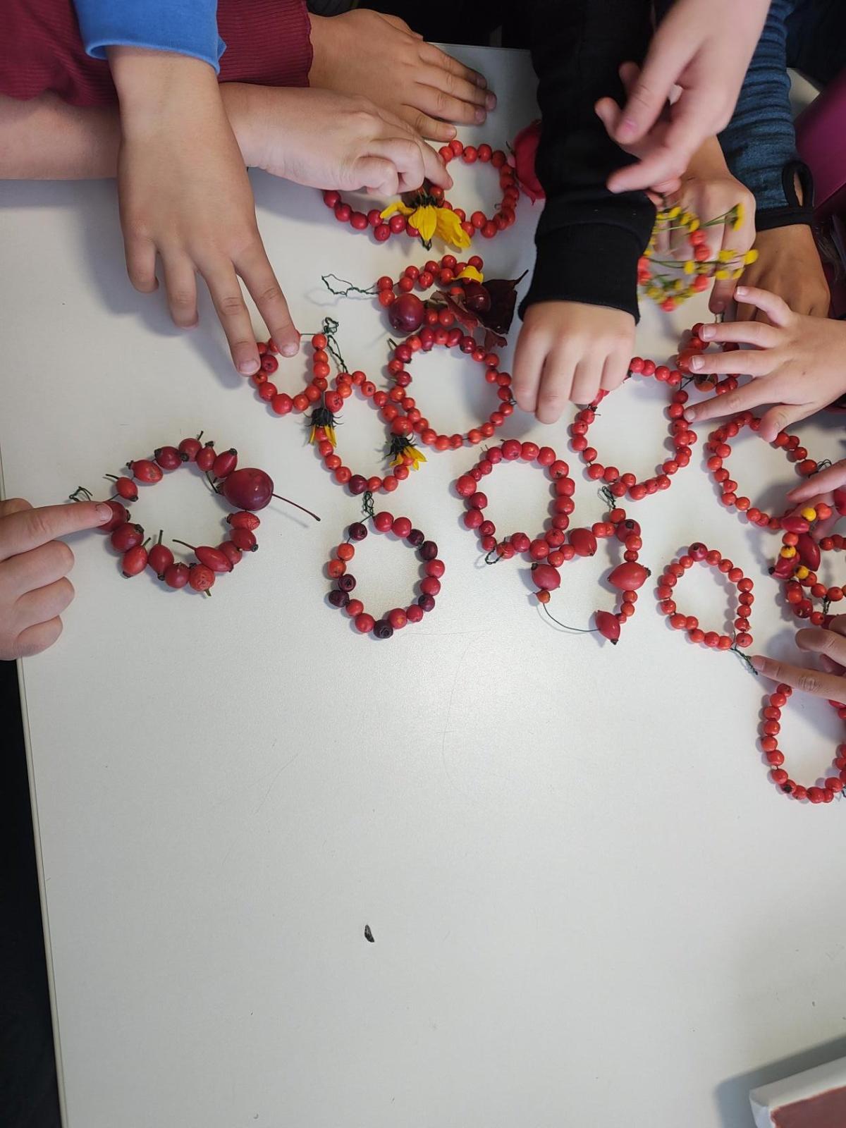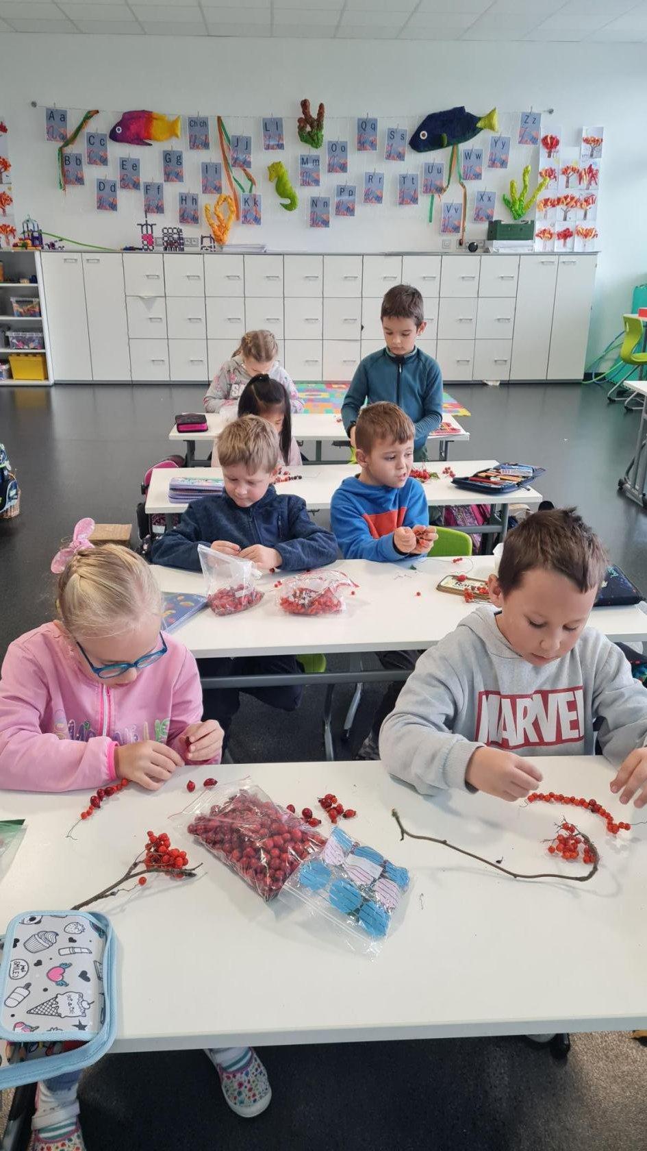Naše třída se proměnila v kreativní dílnu plnou barev, vůní a podzimní atmosféry. V rámci pracovních činností jsme se pustili do tvoření věnečků z podzimních plodů – šípky a jeřabiny dostali hlavní roli. A protože rádi propojujeme předměty, povídali jsme si o nich i během českého jazyka.