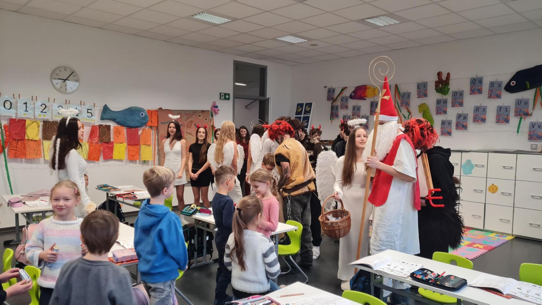 Dnes, 5. prosince, nás během druhé hodiny navštívil Mikuláš se svou družinou – nechyběli čerti ani andělé. Ve třídě zavládlo napjaté ticho, když Mikuláš otevřel knihu hříchů. A přiznáme se, pár zápisů tam opravdu bylo!