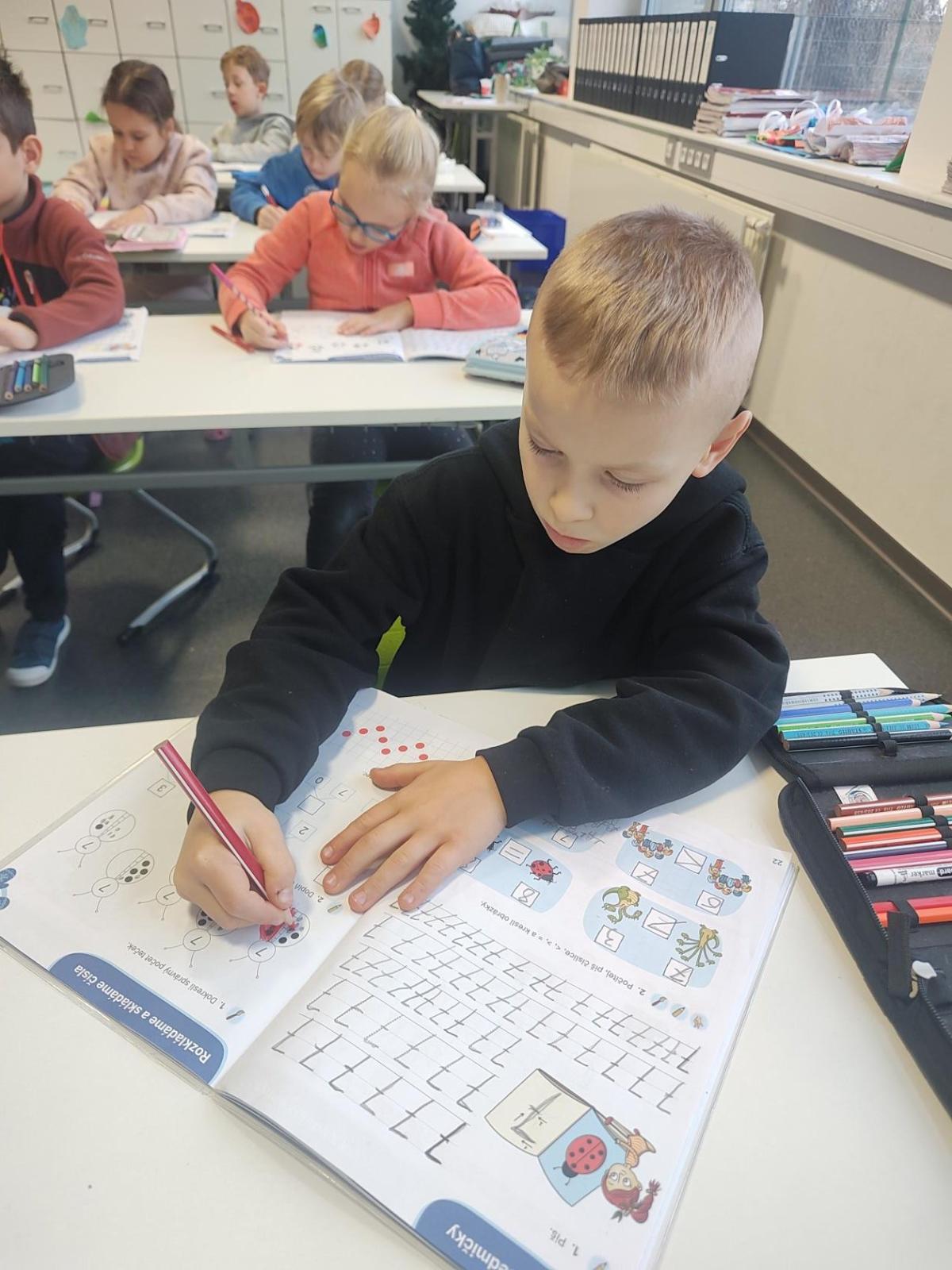 Po vánočních prázdninách jsme se ve třídě znovu sešli odpočatí, plní zážitků a radosti ze společného setkání. Děti měly mnoho dojmů, o které se chtěly podělit, a s chutí se pustily zpět do práce i do poznávání nových věcí. V matematice jsme se zaměřili na psaní číslice 7. V českém jazyce jsme začali pracovat s novým písmenem „n“, které jsme dále upevňovali i v hodinách čtení; zároveň jsme se začali seznamovat s písmenem „z“. V rámci tématu svátku Tří králů jsme si povídali o jejich příběhu a děti si k tomu vyrobily vlastní královské koruny. V tělesné výchově jsme začali trénovat chůzi po kladině. Děti tato činnost velmi baví a každou hodinou získávají více jistoty i odvahy. Po prázdninách se všichni rychle naladili zpět na školní režim a s radostí objevují nové dovednosti i poznatky, které je v nejbližší době čekají.