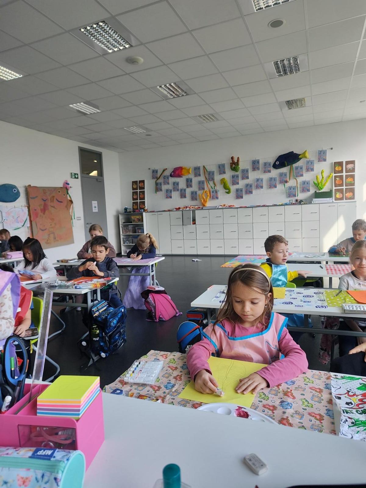 Naši prvňáčci si dnes vyzkoušeli novou výtvarnou techniku, při které spojili kresbu s malbou. Pomocí netradiční pomůcky – vatových tyčinek – vznikly krásné podzimní obrázky, které rozzářily naši třídu.