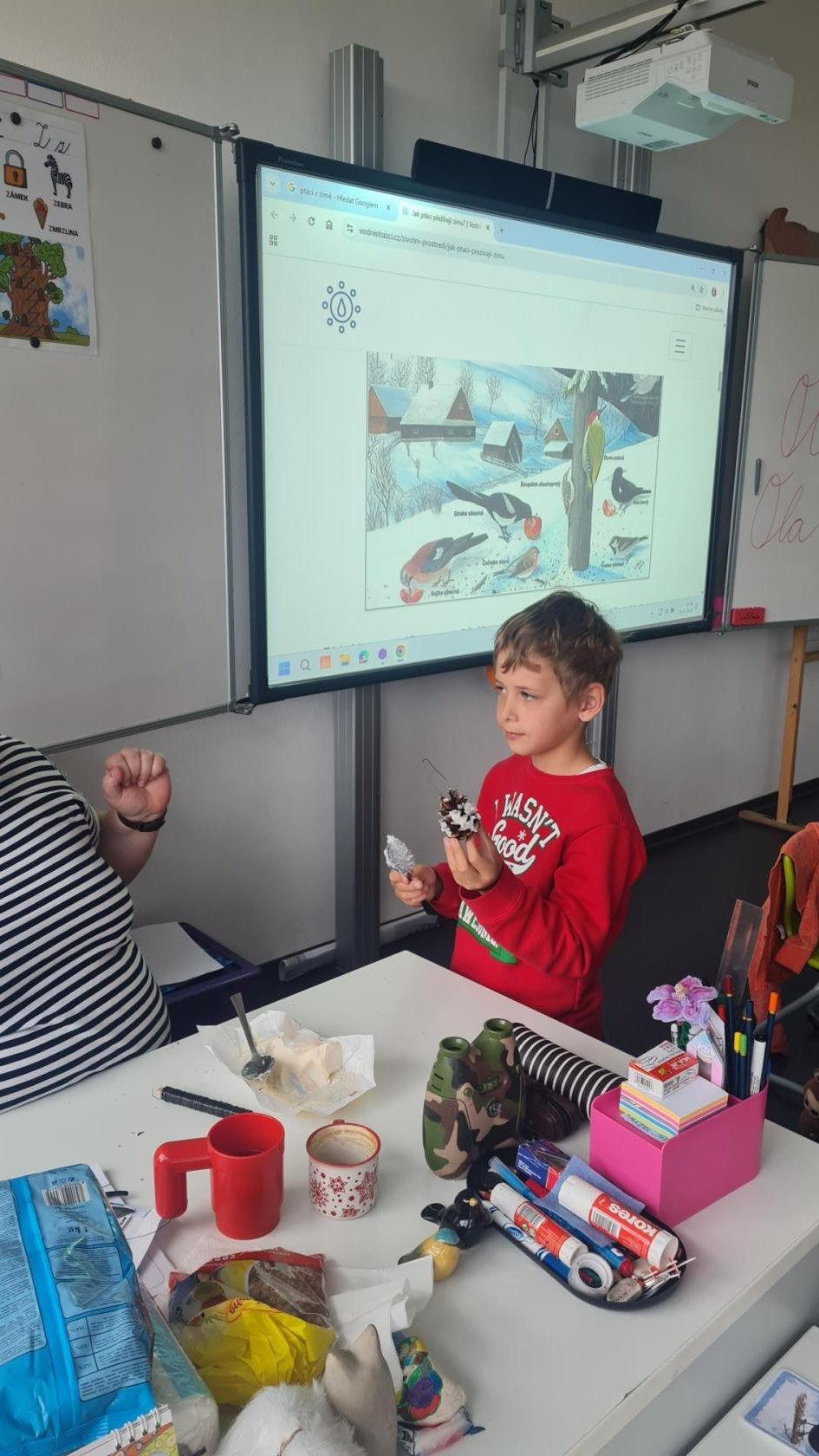 Během dalších hodin jsme si povídali o tom, jak ptáčkům v zimě pomáhat, co jim chutná, co je pro ně zdravé, a co naopak do krmítka rozhodně nepatří. Seznámili jsme se také s nejběžnějšími druhy ptáčků, které můžeme v zimě pozorovat.