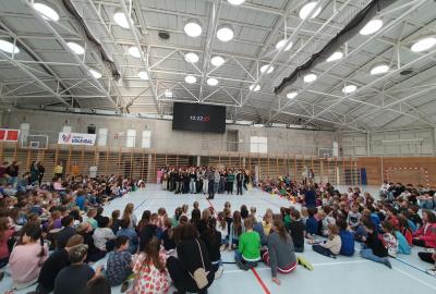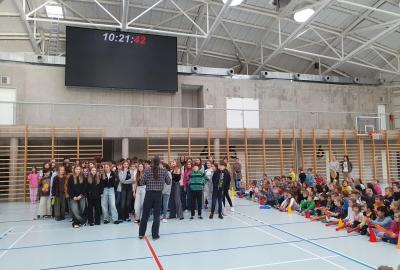 Zvuk bubnů se rozezněl školní halou jako hlas pro ty, kteří mlčí.