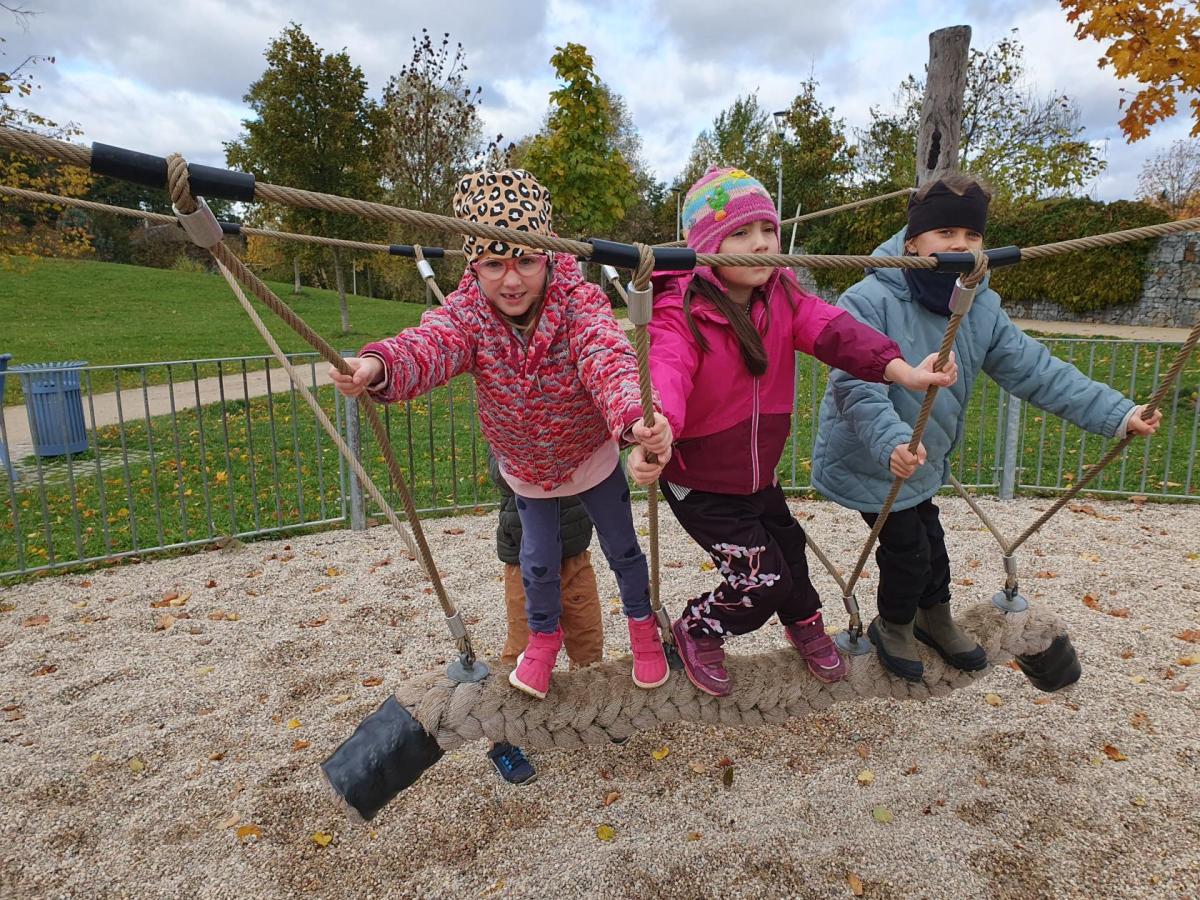 Stačilo pár kroků od školy a začalo malé dobrodružství – mezi stromy, hrami a podzimními barvami se rodily nové příběhy přátelství.