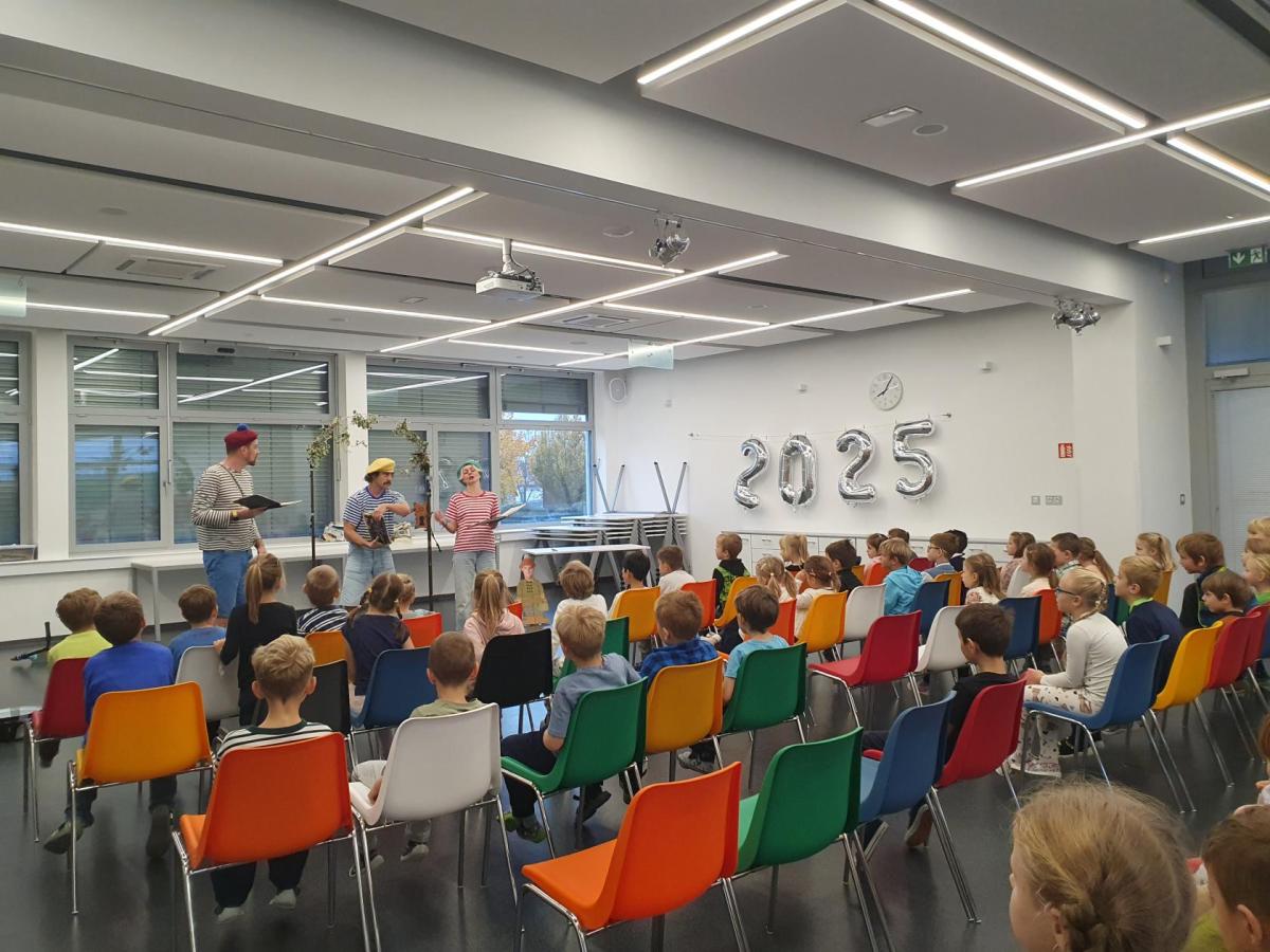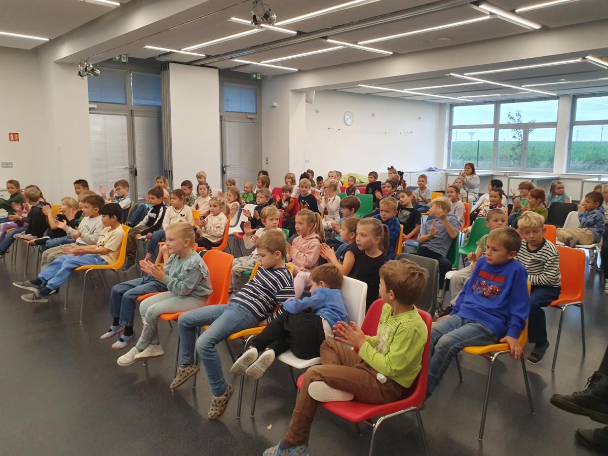 V pátek 17. října nás v sále školy navštívil divadelní soubor projektu Listování se scénickým čtením inspirovaným knihou Zahrada od Jiřího Trnky. Herci dětem poutavě přiblížili příběh a svým vystoupením vytvořili příjemnou náladu plnou fantazie. Děti pozorně sledovaly dění na jevišti a nechaly se vtáhnout do kouzelného světa knihy. Představení se všem líbilo a přineslo krásné propojení literatury s divadlem.