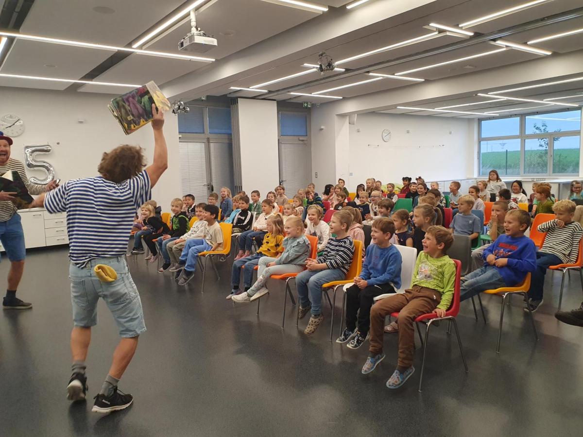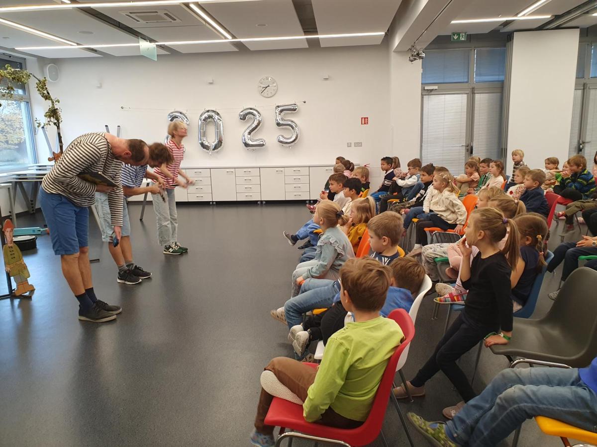 Prvňáčci zhlédli scénické čtení podle knihy Jiřího Trnky.