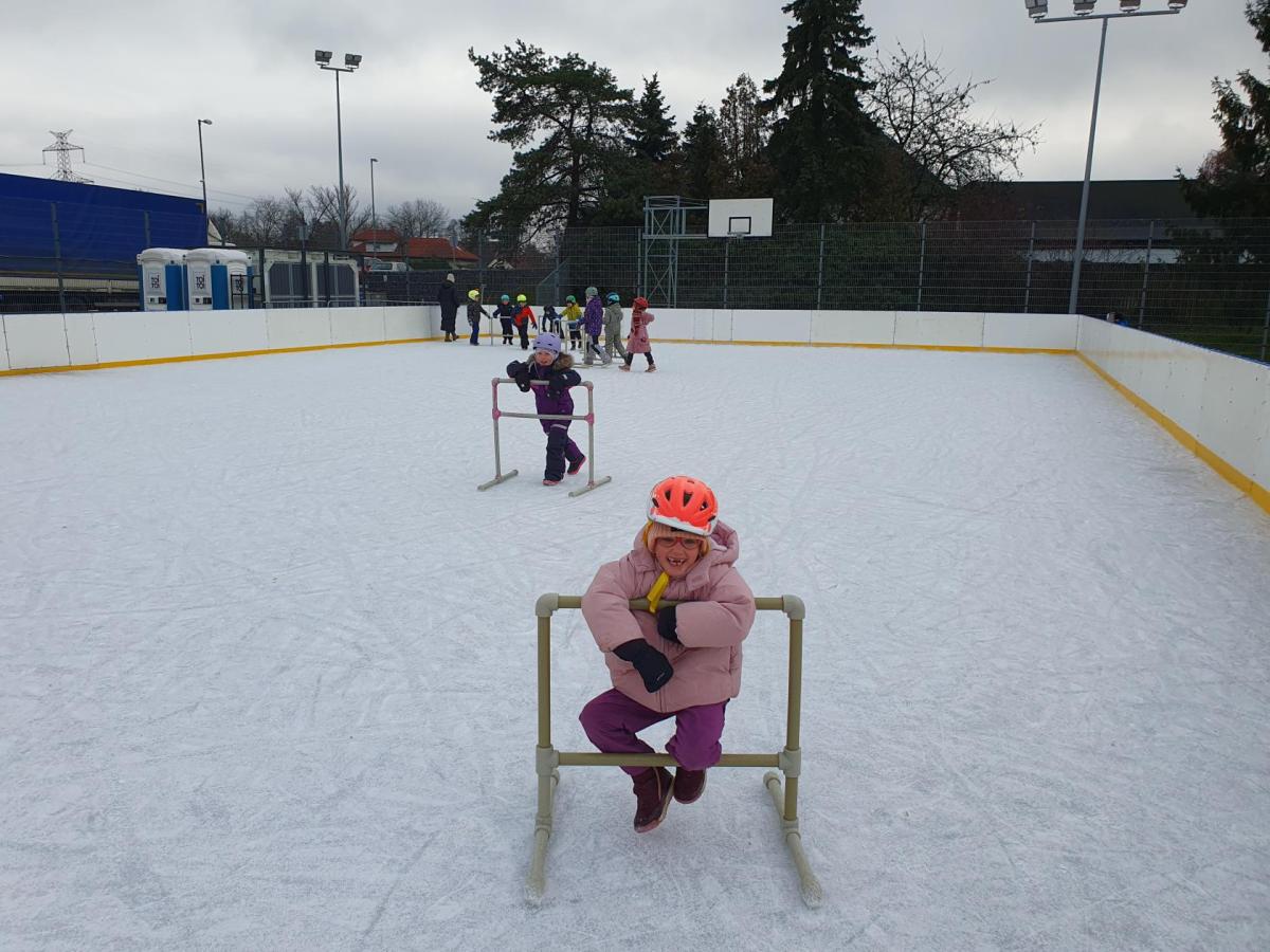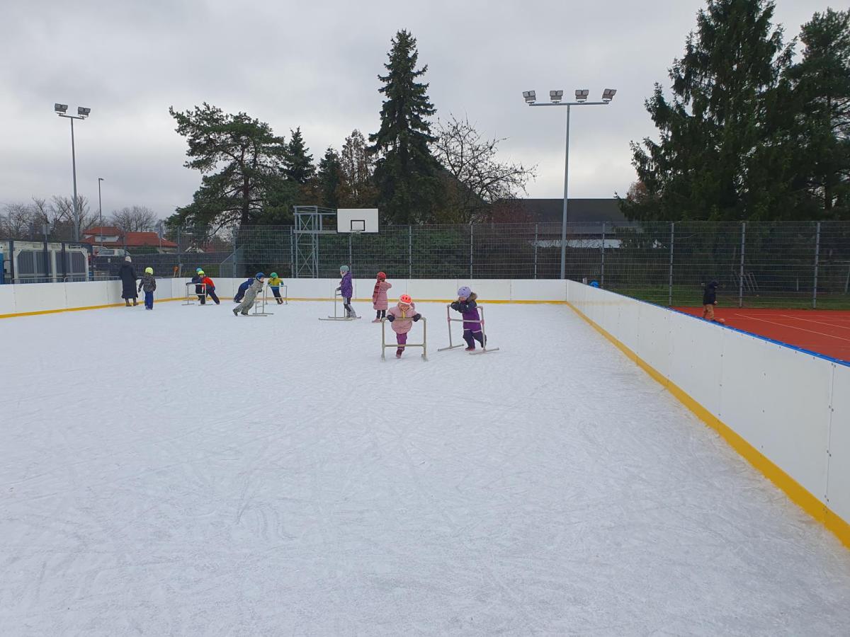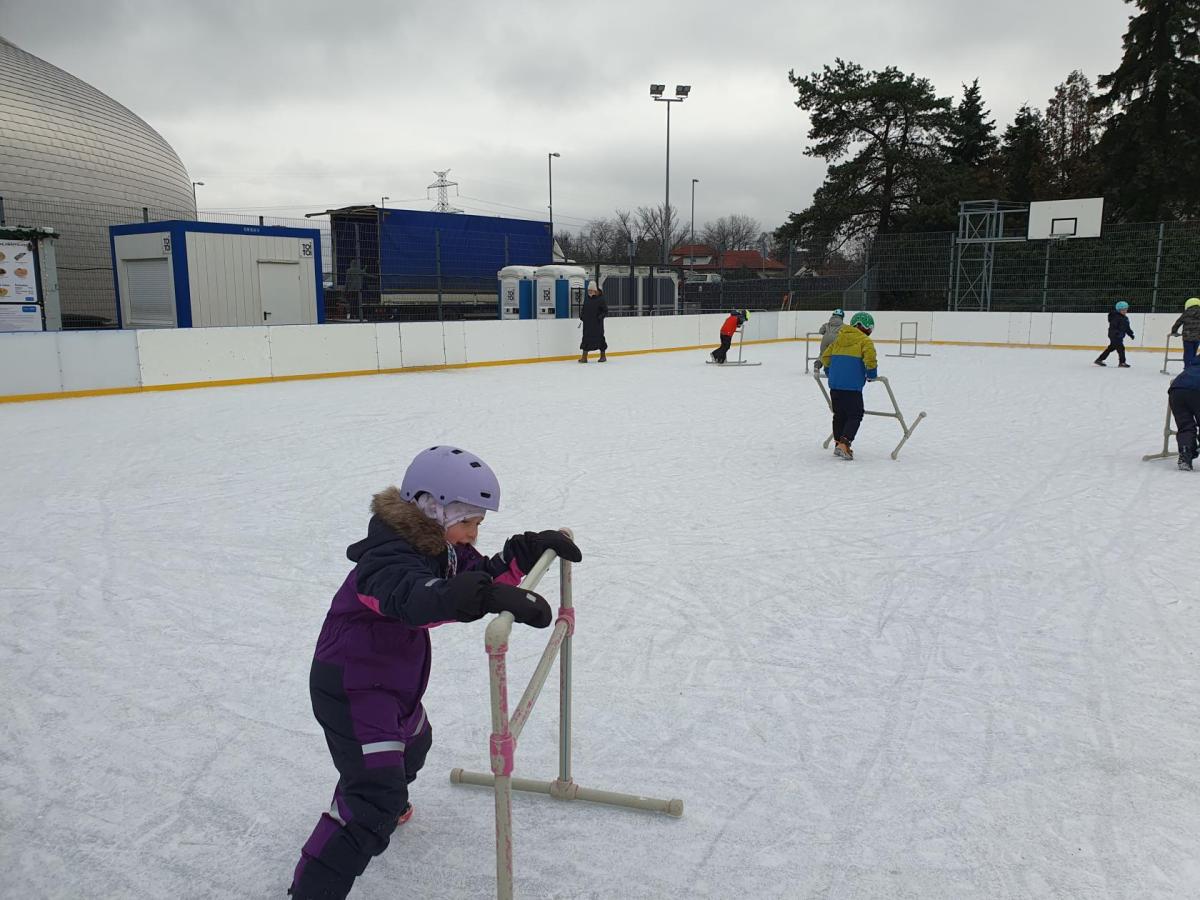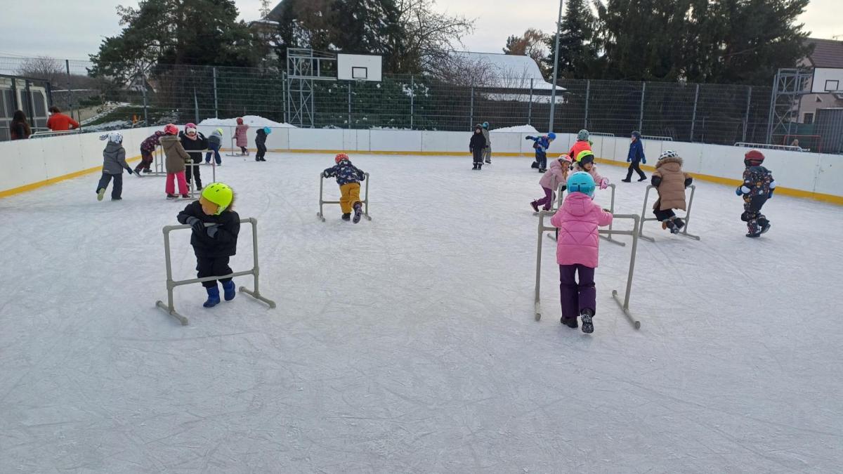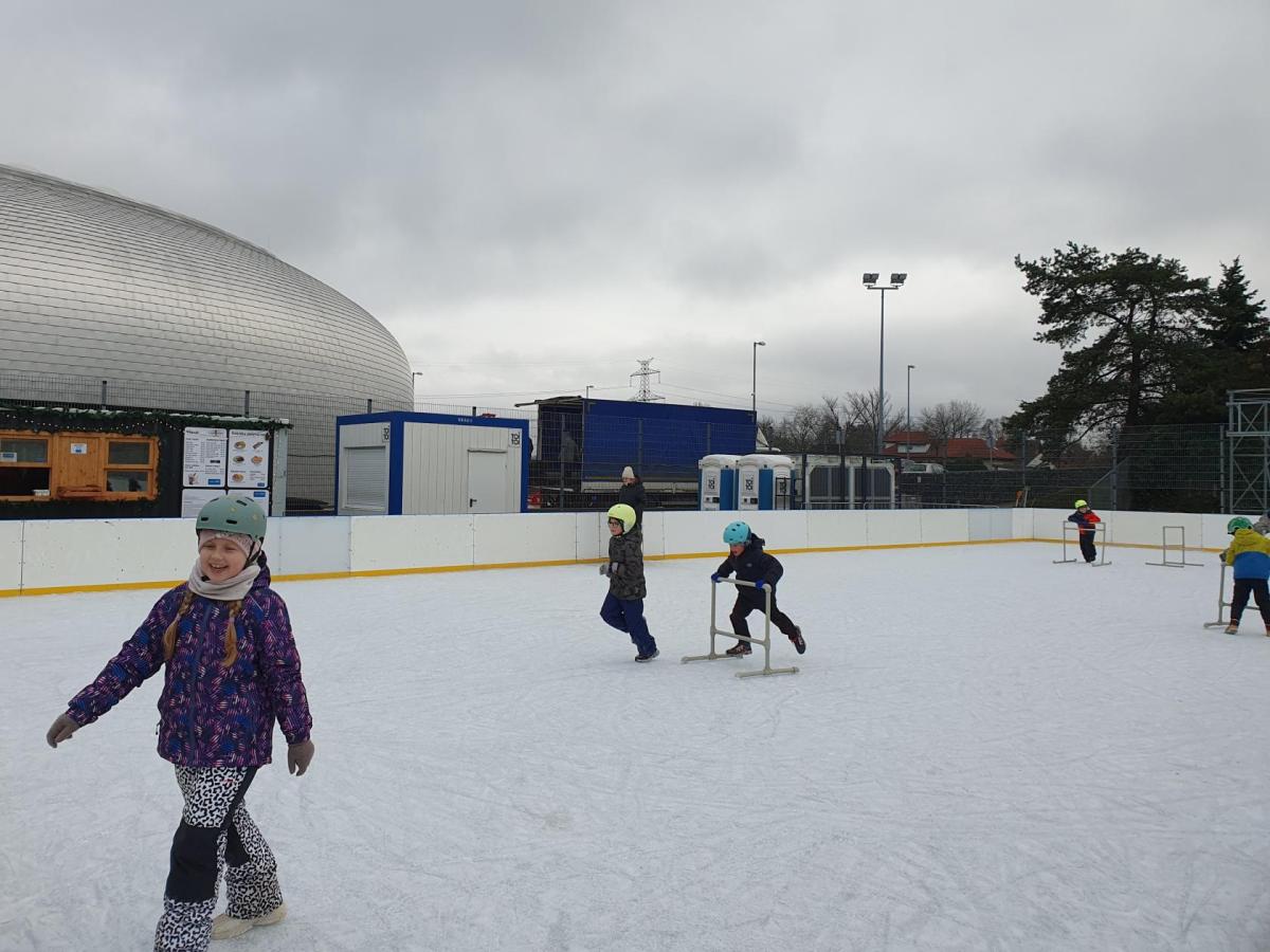 Prvňáčci z družiny mají jedinečnou možnost užívat si zimní radovánky přímo před školou. Každý pátek od 14 do 15 hodin se pro ně kluziště stává místem, kde se kloužou, hrají si a dovádějí s kamarády. Tyto chvíle na ledě přinášejí spoustu veselí, pohybu a společných zážitků, které dětem vykouzlí úsměv na tváři. Pobyt na kluzišti je skvělým způsobem, jak si užít zimní čas a posílit přátelství. Ledové hrátky se staly oblíbenou součástí pátečních odpolední a přinášejí dětem radost, na kterou se dlouho vzpomíná.