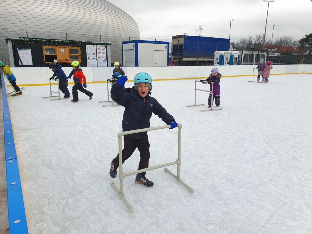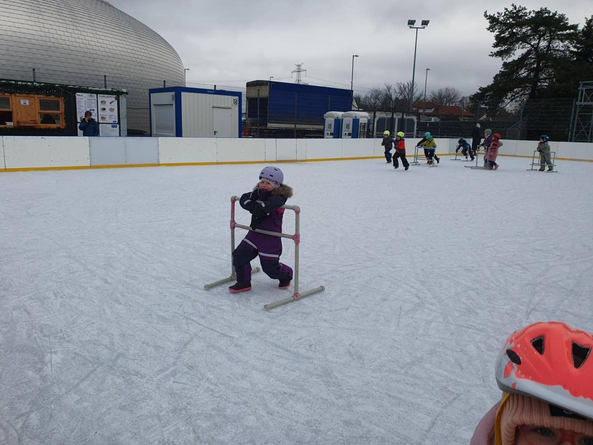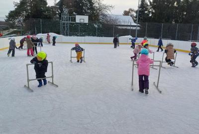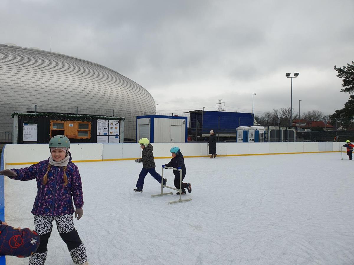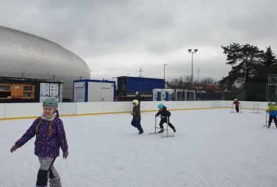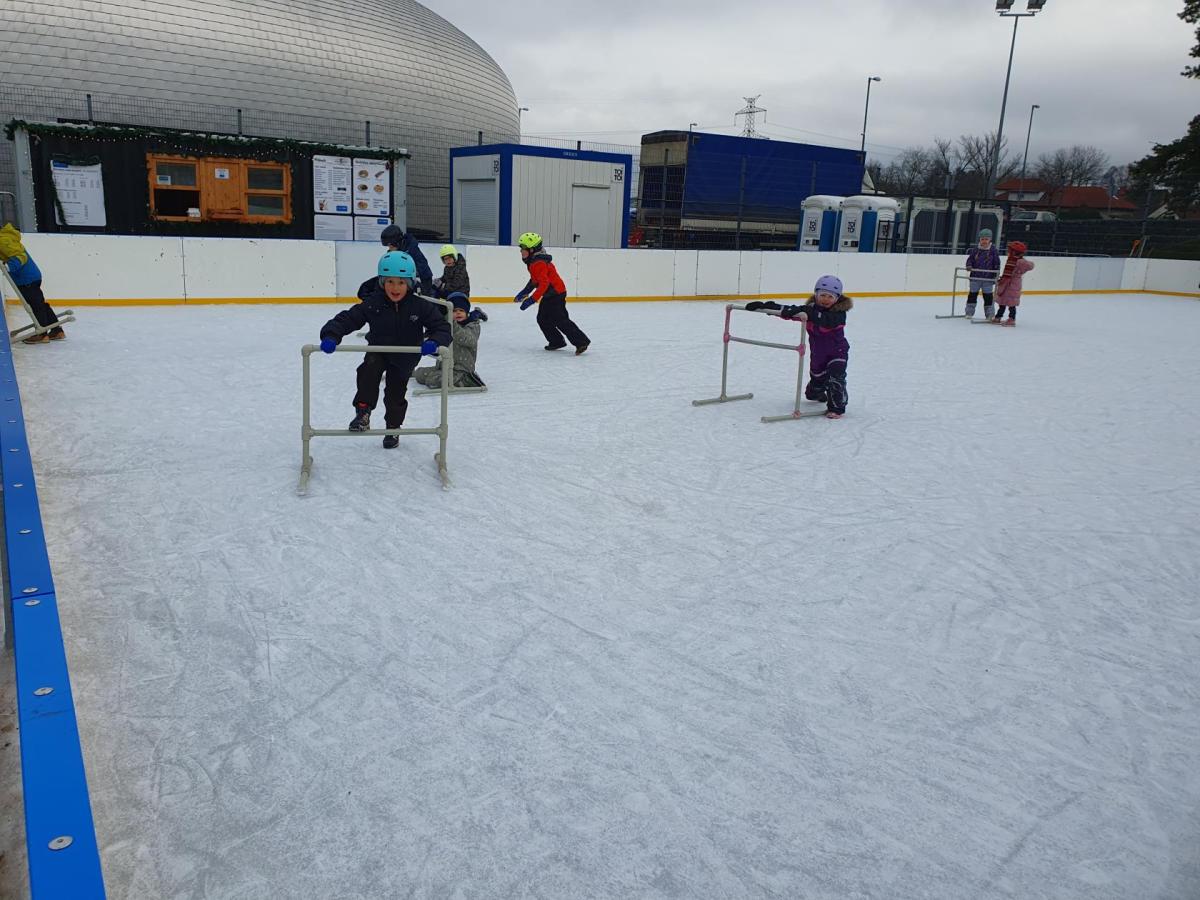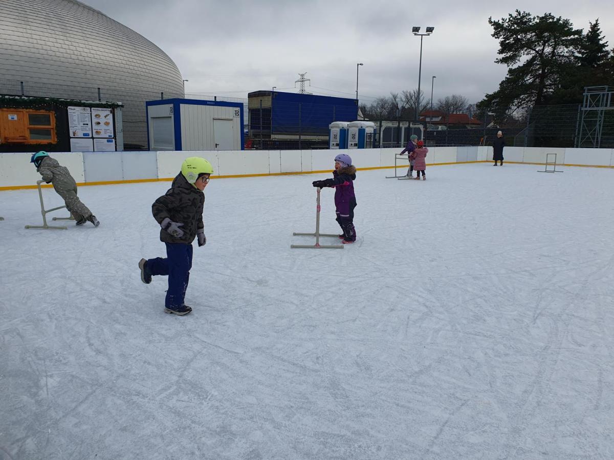Prvňáčci z družiny mají jedinečnou možnost užívat si zimní radovánky přímo před školou. Každý pátek od 14 do 15 hodin se pro ně kluziště stává místem, kde se kloužou, hrají si a dovádějí s kamarády. Tyto chvíle na ledě přinášejí spoustu veselí, pohybu a společných zážitků, které dětem vykouzlí úsměv na tváři. Pobyt na kluzišti je skvělým způsobem, jak si užít zimní čas a posílit přátelství. Ledové hrátky se staly oblíbenou součástí pátečních odpolední a přinášejí dětem radost, na kterou se dlouho vzpomíná.