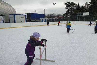 Ledová plocha před školou se každý pátek mění v království radosti a smíchu.