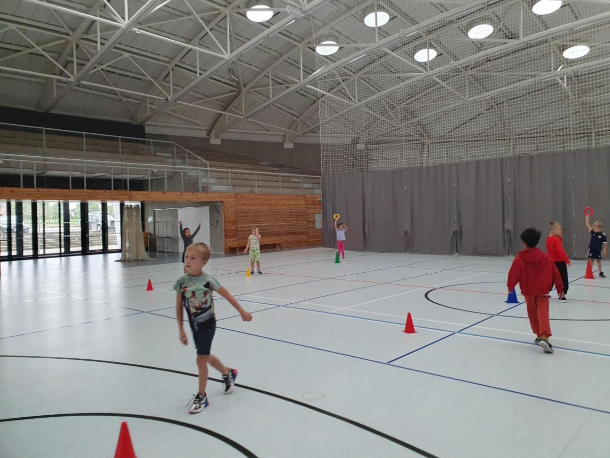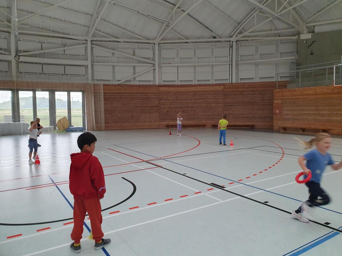 Na hodině tělesné výchovy jsme si vyzkoušeli štafetový běh a užili si sportovní atmosféru.
