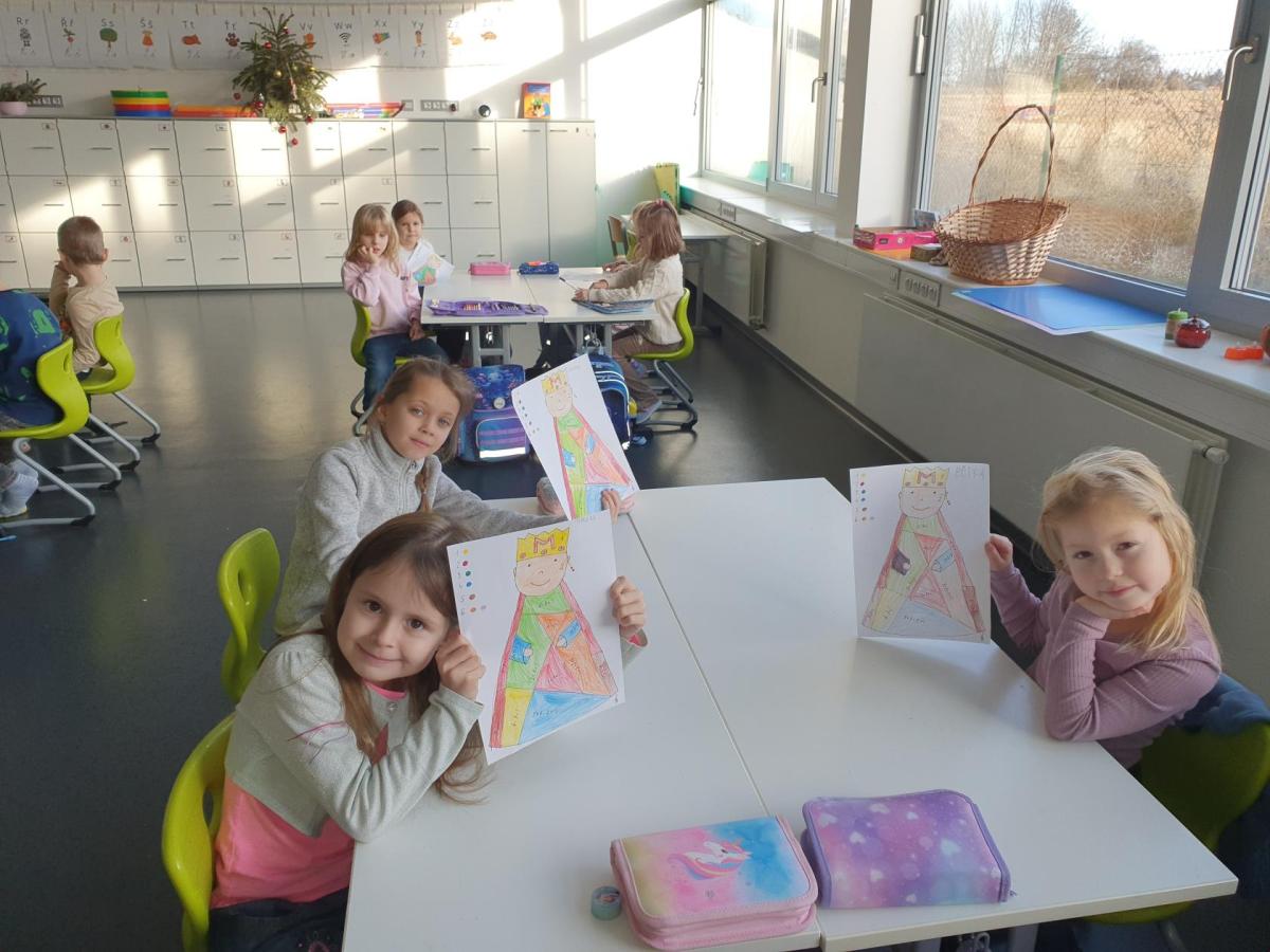 V úterý 6. ledna proběhla ve třídě projektová výuka věnovaná svátku Tří králů. Děti se dozvěděly, odkud tento svátek pochází, a zhlédly pohádku Jak to bylo na Tři krále, která je naladila na slavnostní atmosféru. Společně se naučily koledu My tři králové jdeme k vám a s chutí ji zpívaly při dalších činnostech. Pracovní listy ze čtení, psaní i matematiky se nesly v duchu královského tématu a děti je zvládly s velkým nasazením. Výtvarná část patřila obrázkům koledníků v převleku za Tři krále s jasně zářící Betlémskou hvězdou. Celý den byl zakončen výrobou královských korun, které se staly krásnou tečkou za společně prožitým svátečním dnem.