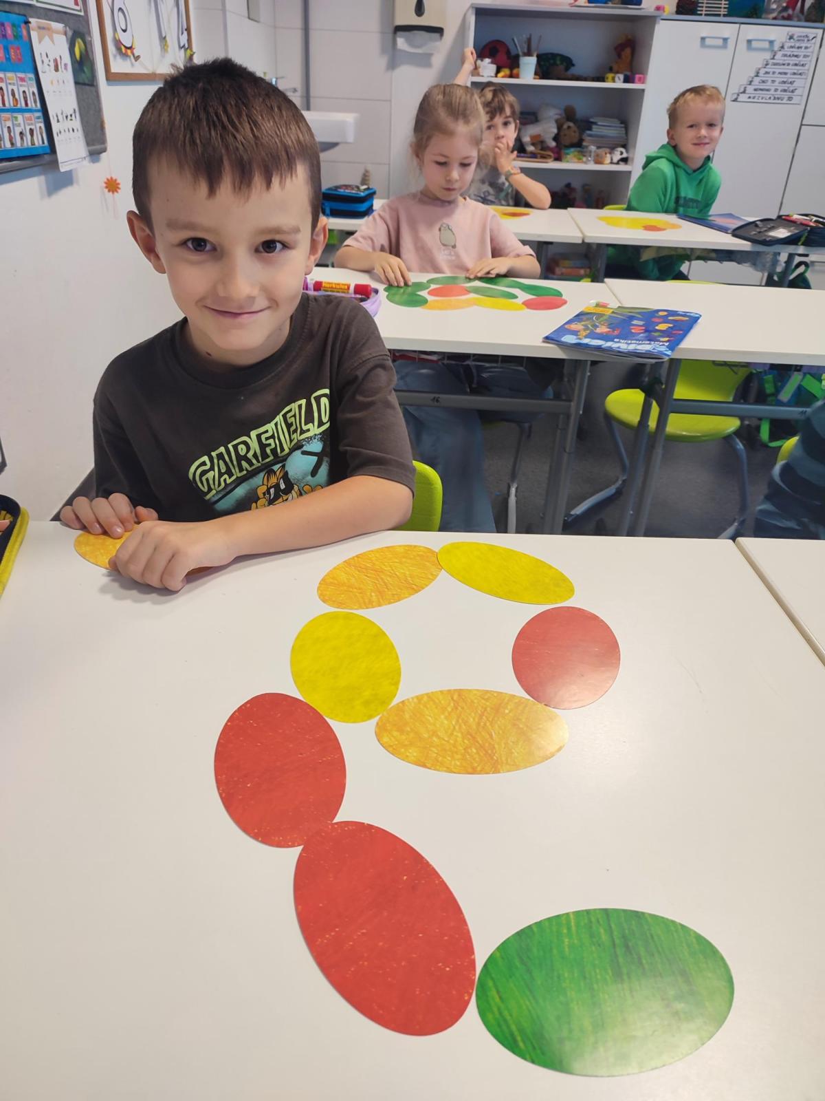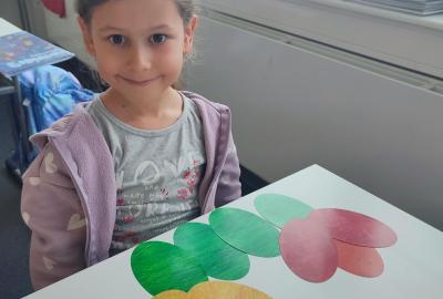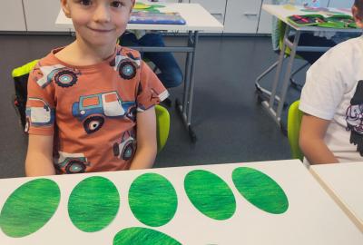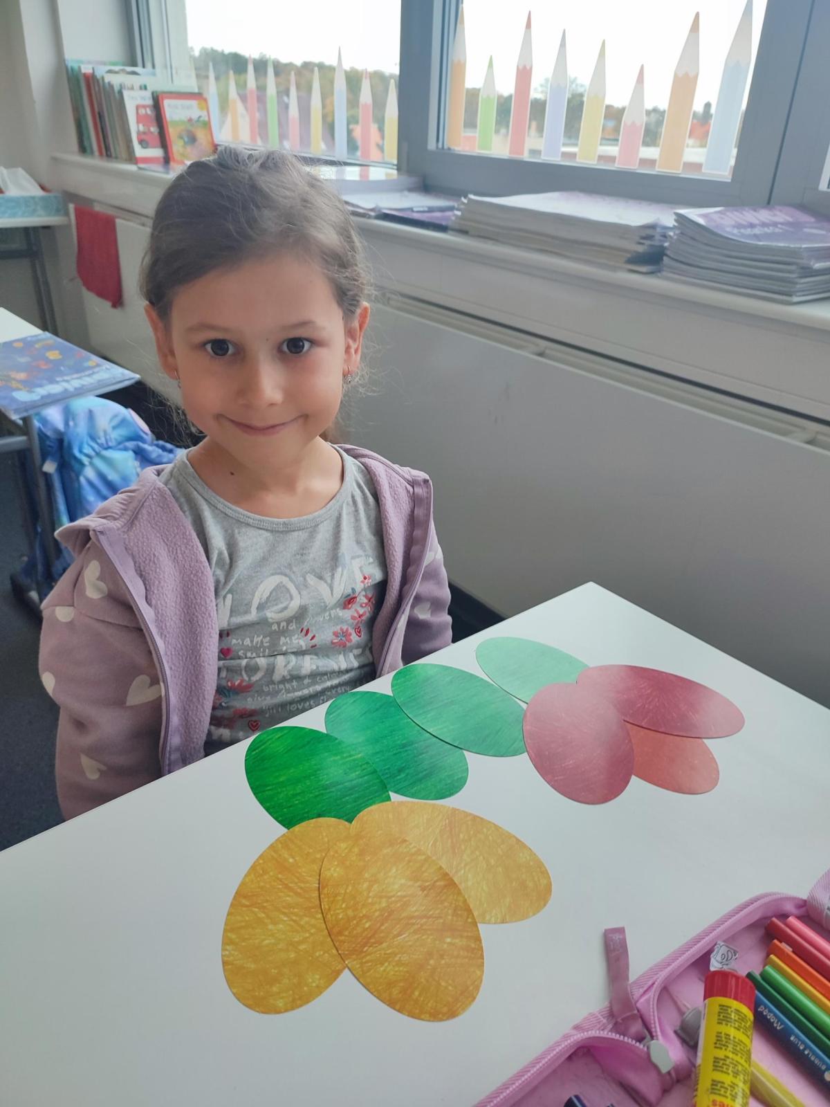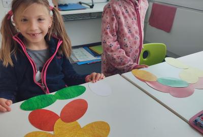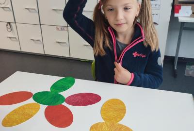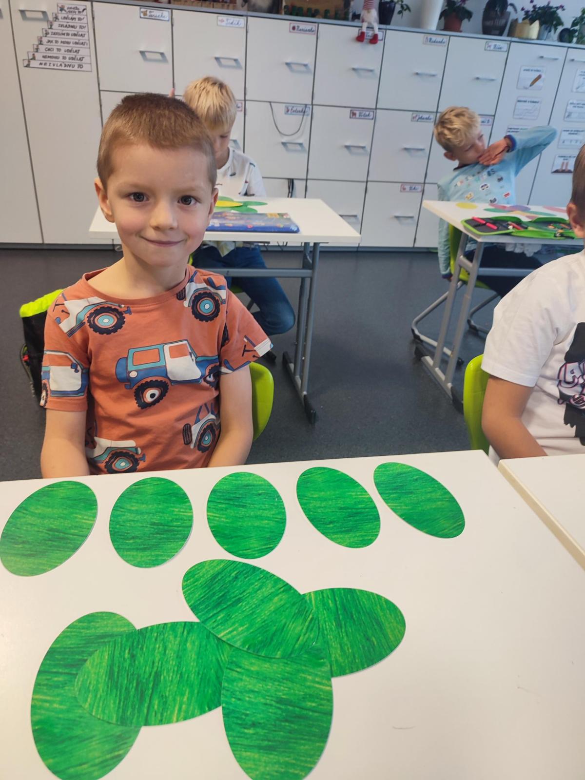 V matematice jsme skládali příklady na sčítání a odčítání s barevnými papírovými vajíčky a nakonec jsme z nich vytvořili veselé obrázky.