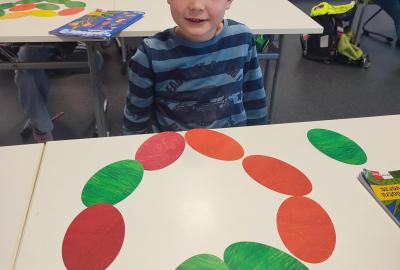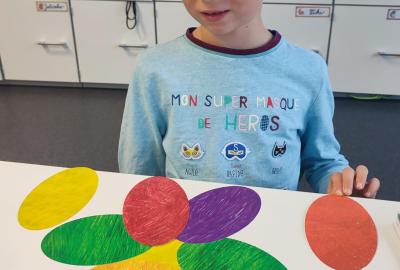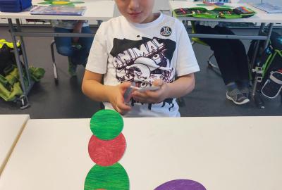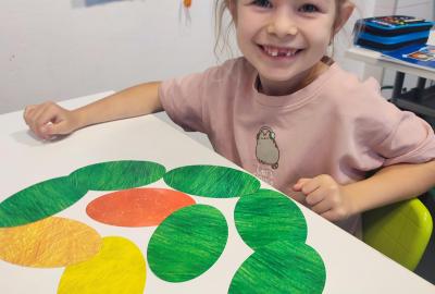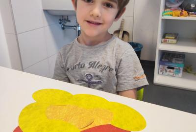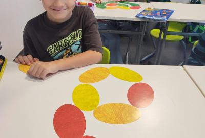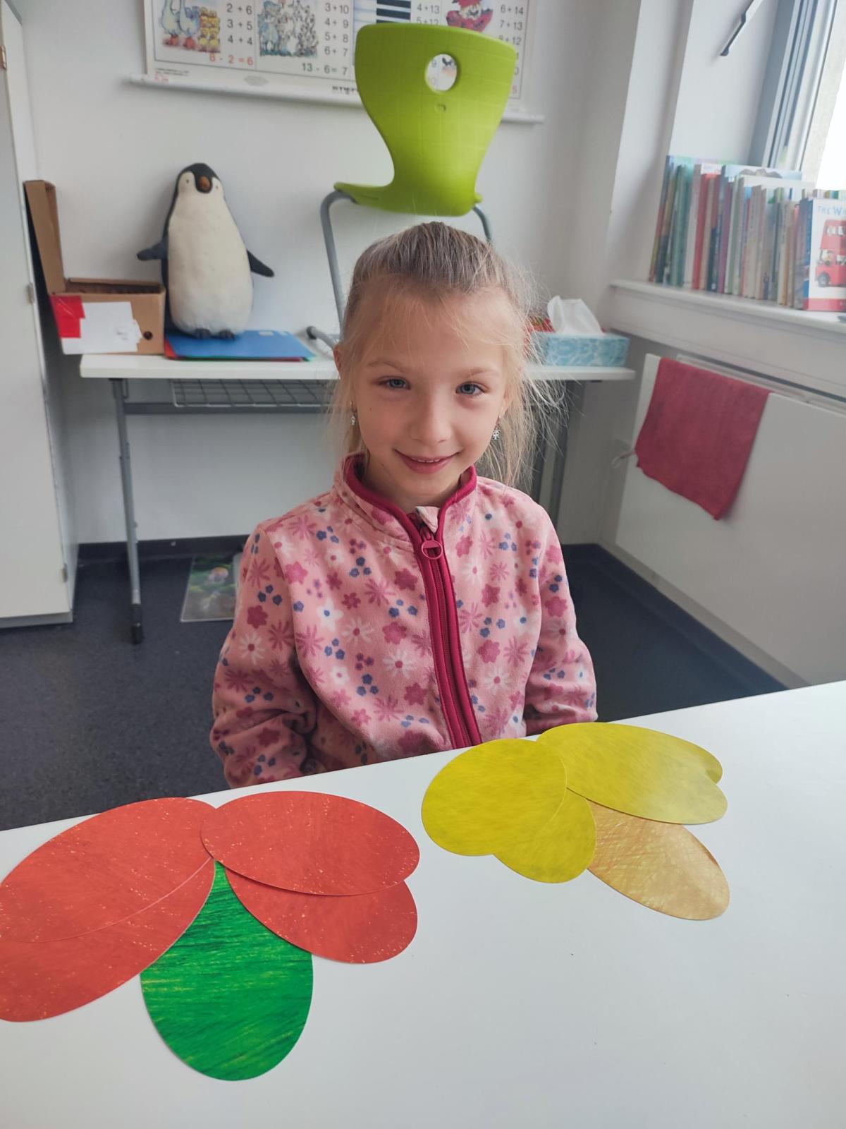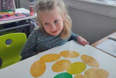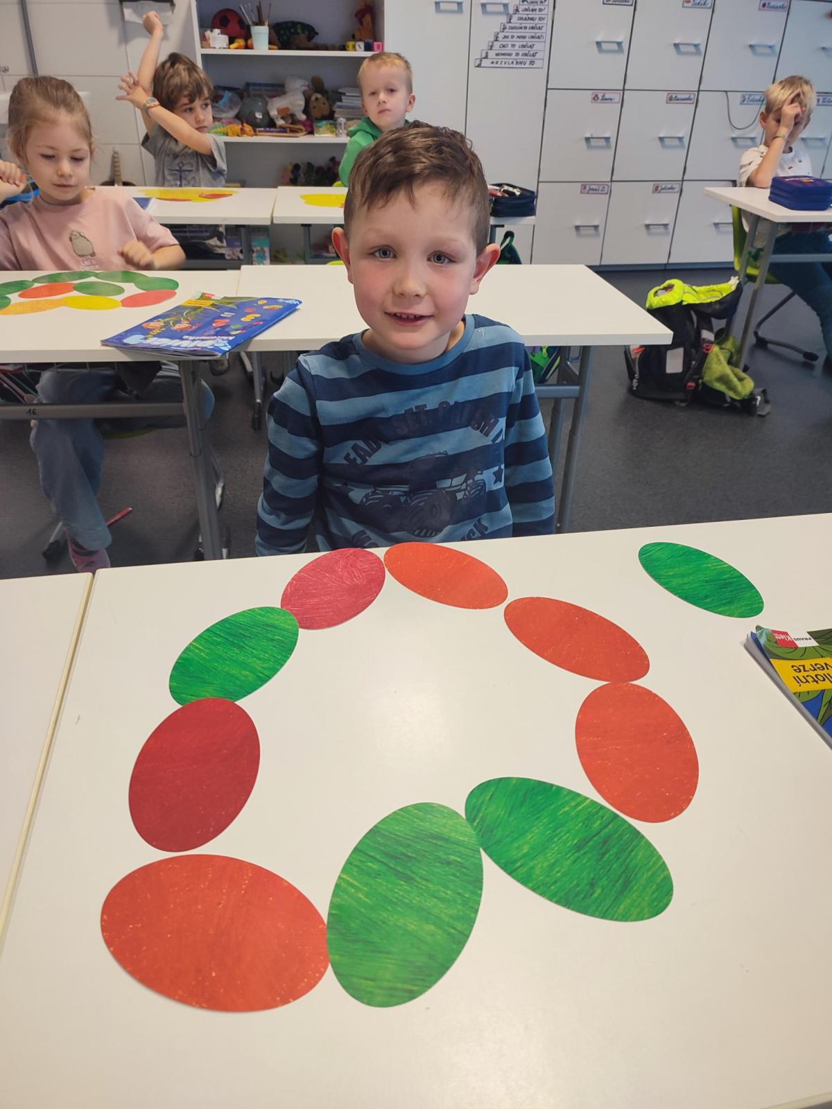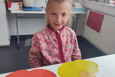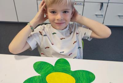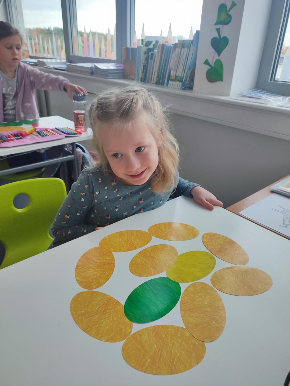 V matematice jsme skládali příklady na sčítání a odčítání s barevnými papírovými vajíčky a nakonec jsme z nich vytvořili veselé obrázky.