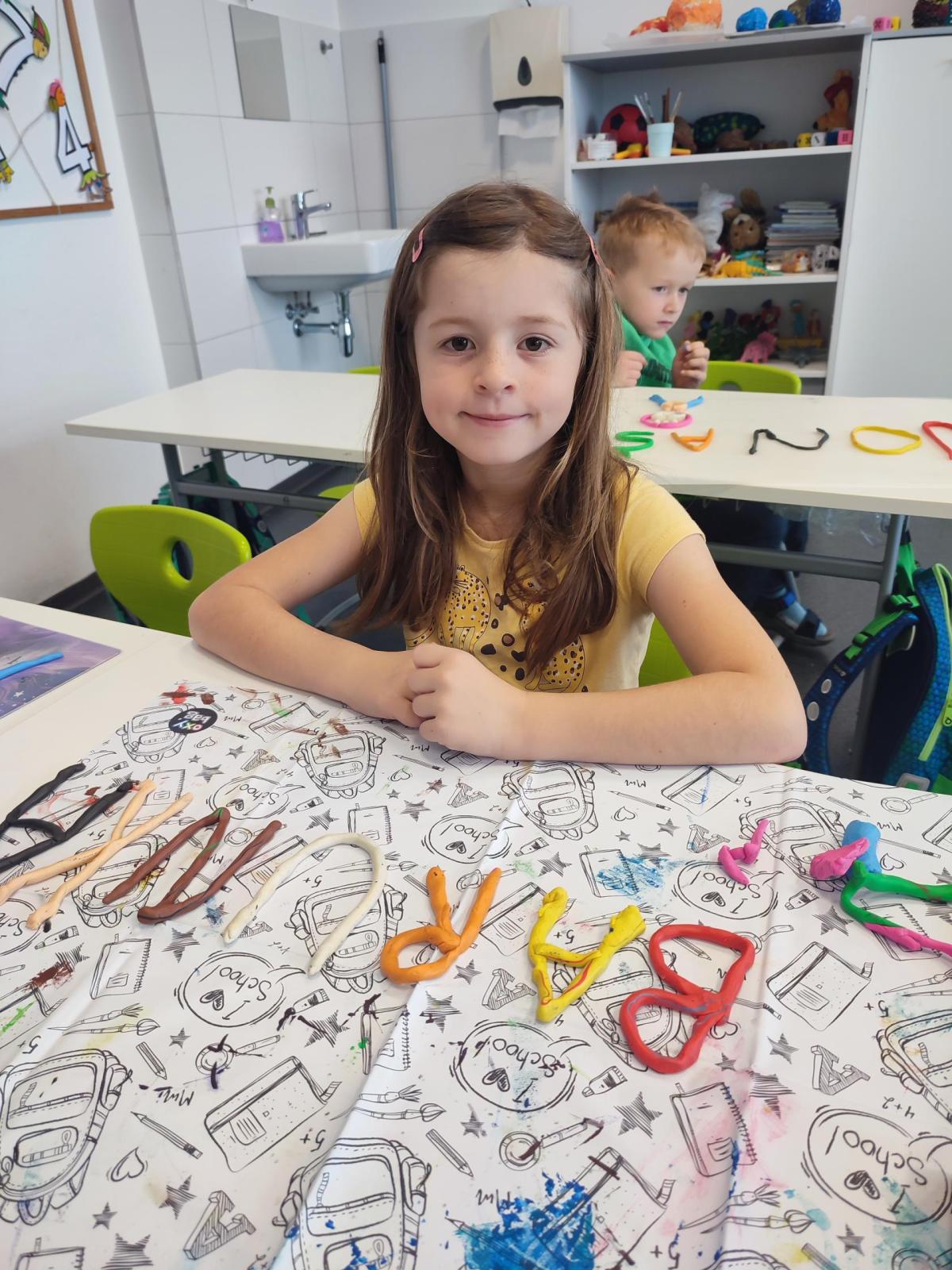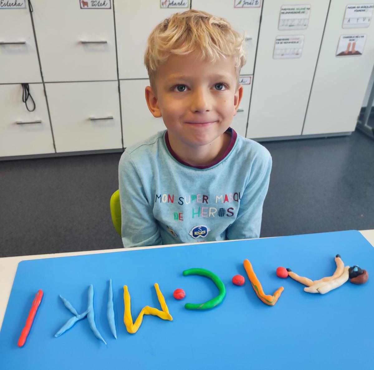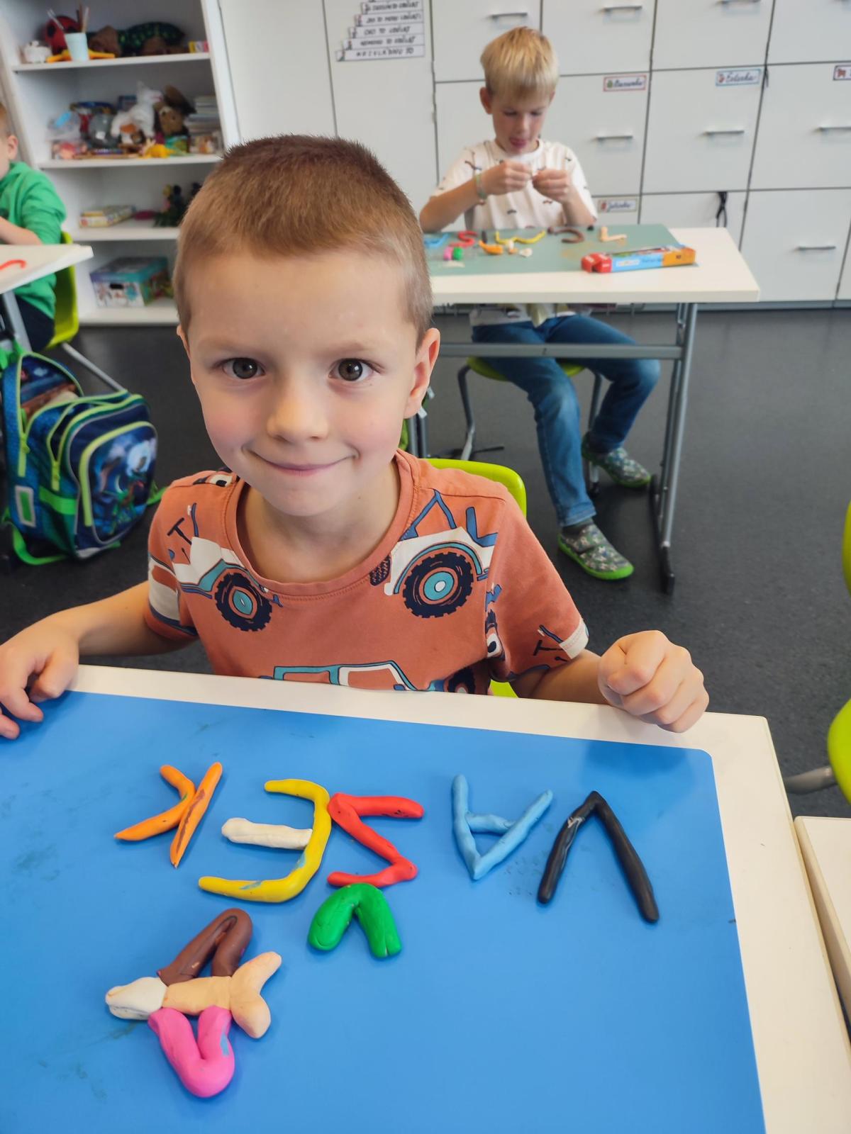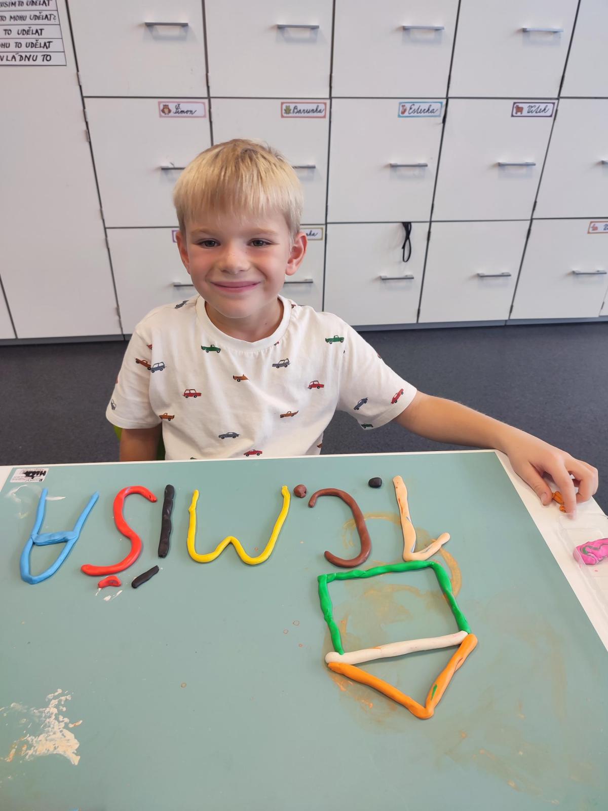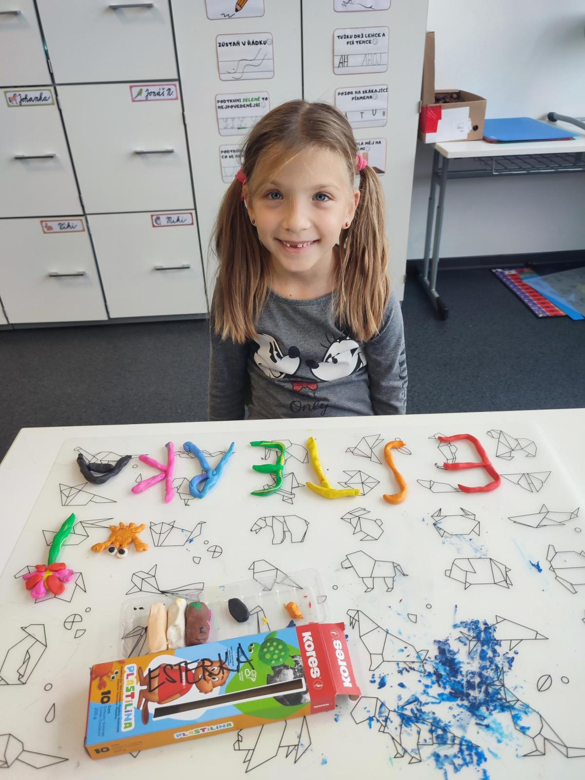 V hodině pracovních činností jsme si procvičili prstíky i fantazii - z plastelíny vznikly naše jména.