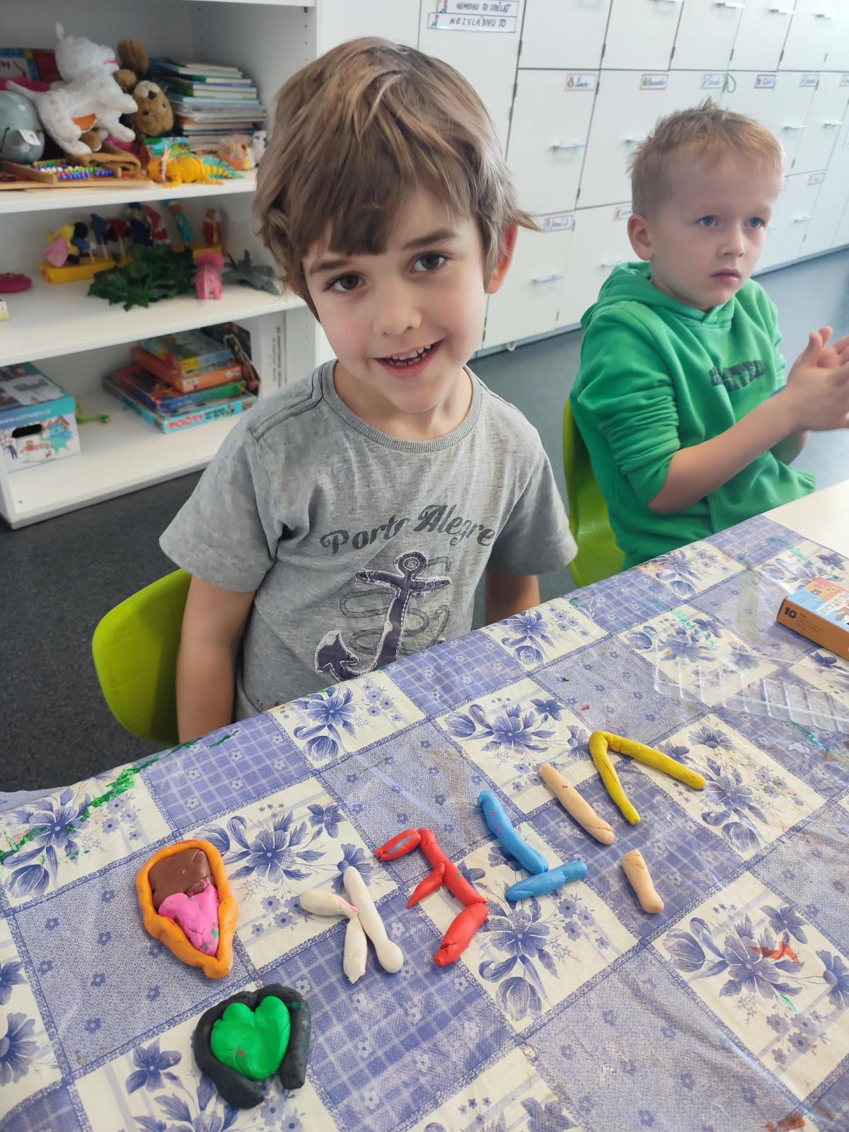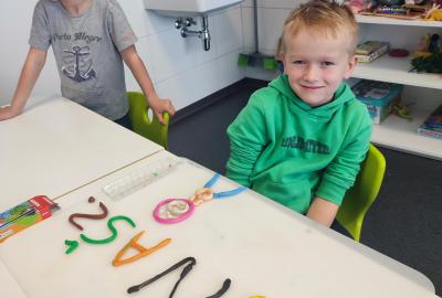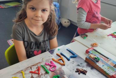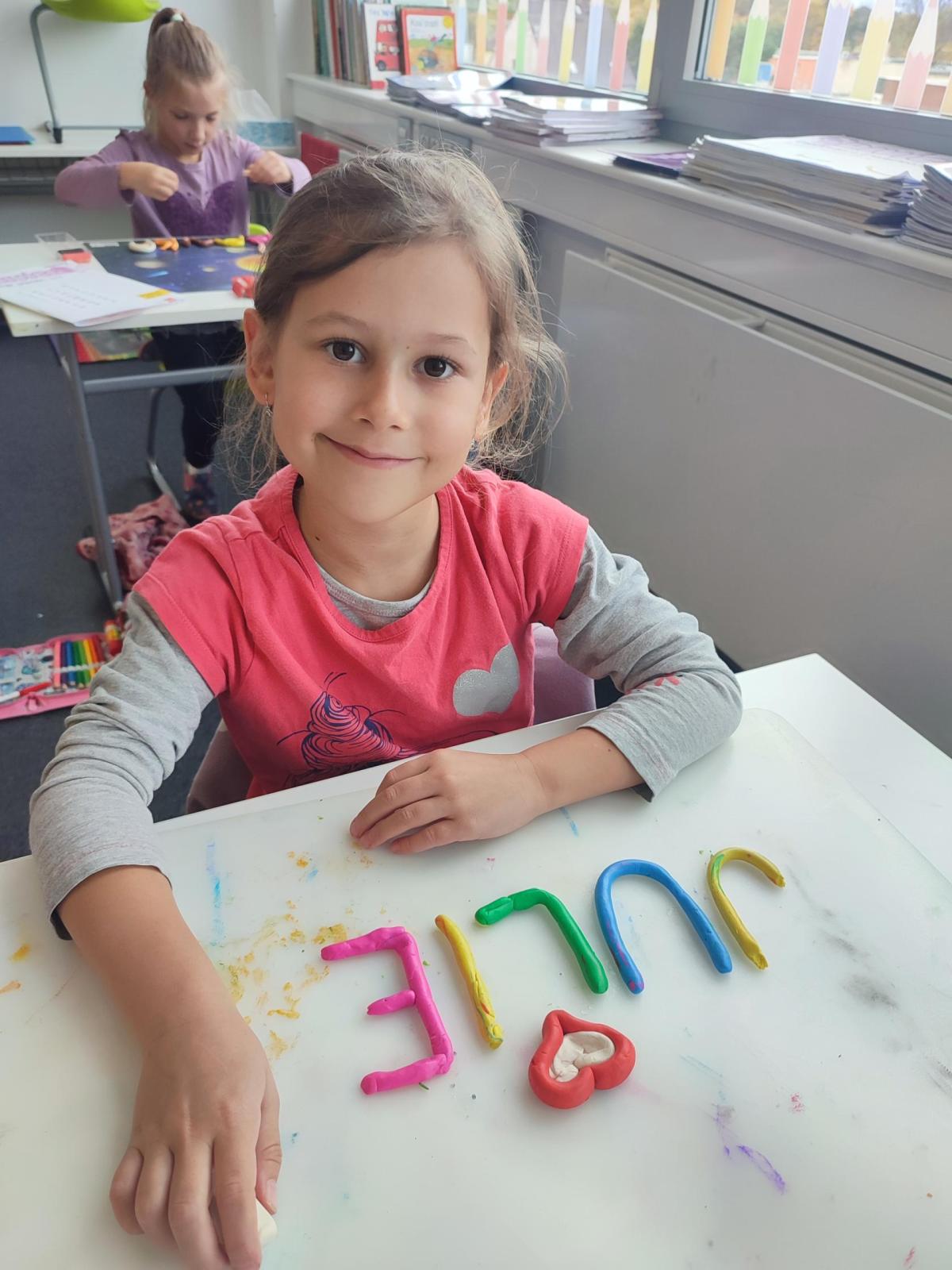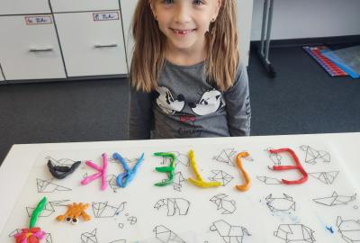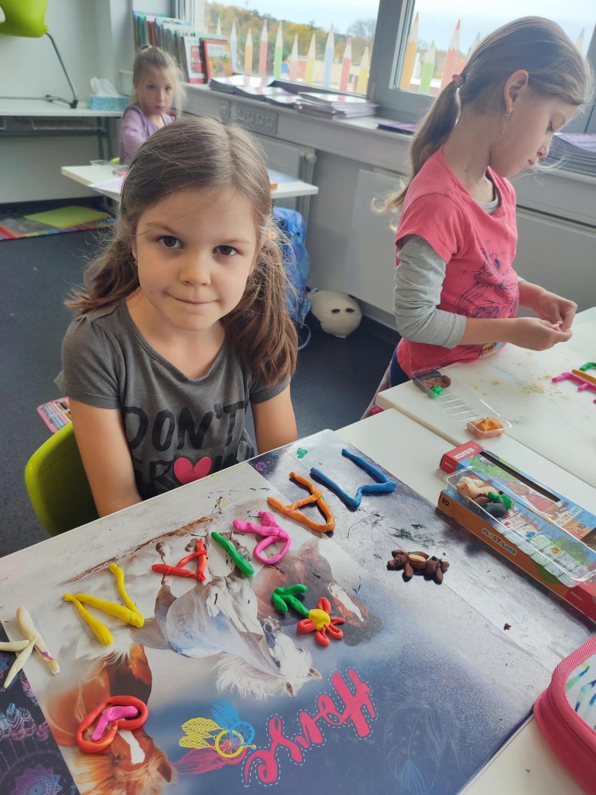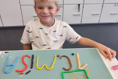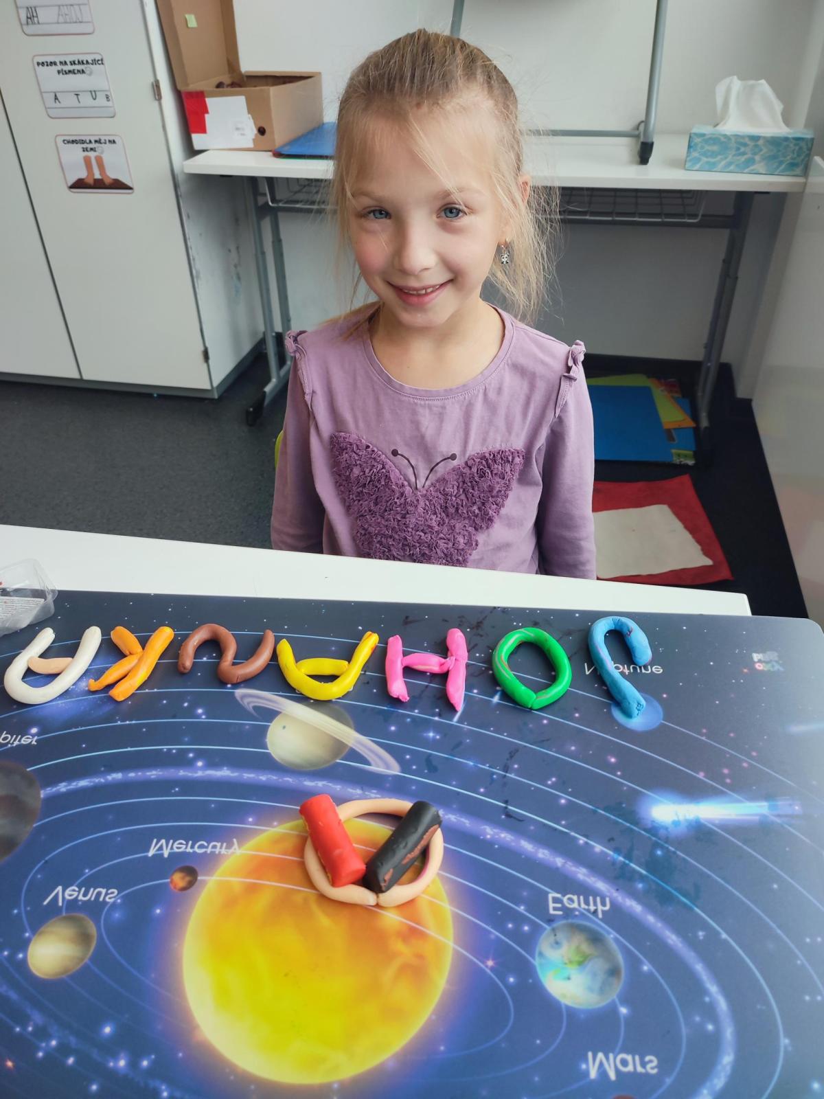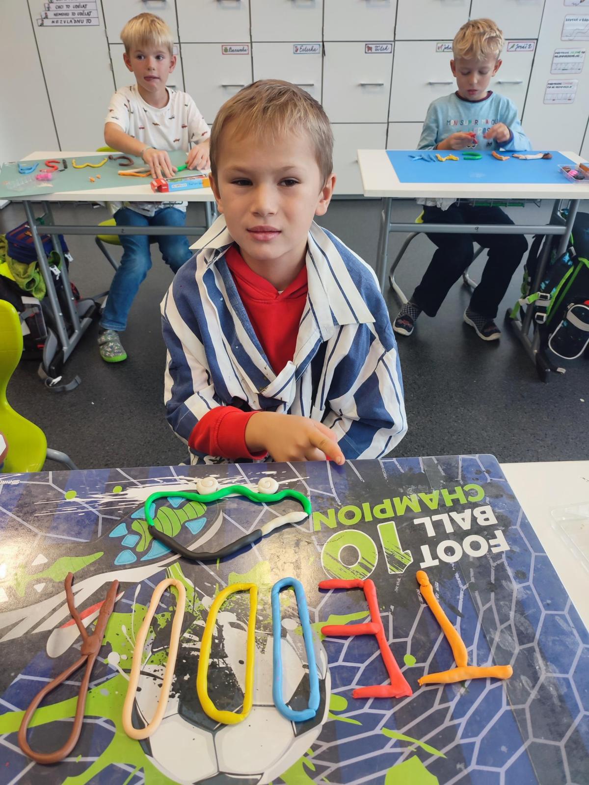 V hodině pracovních činností jsme si procvičili prstíky i fantazii - z plastelíny vznikly naše jména.
