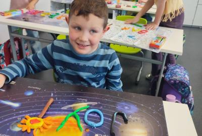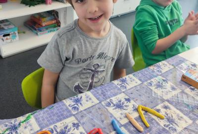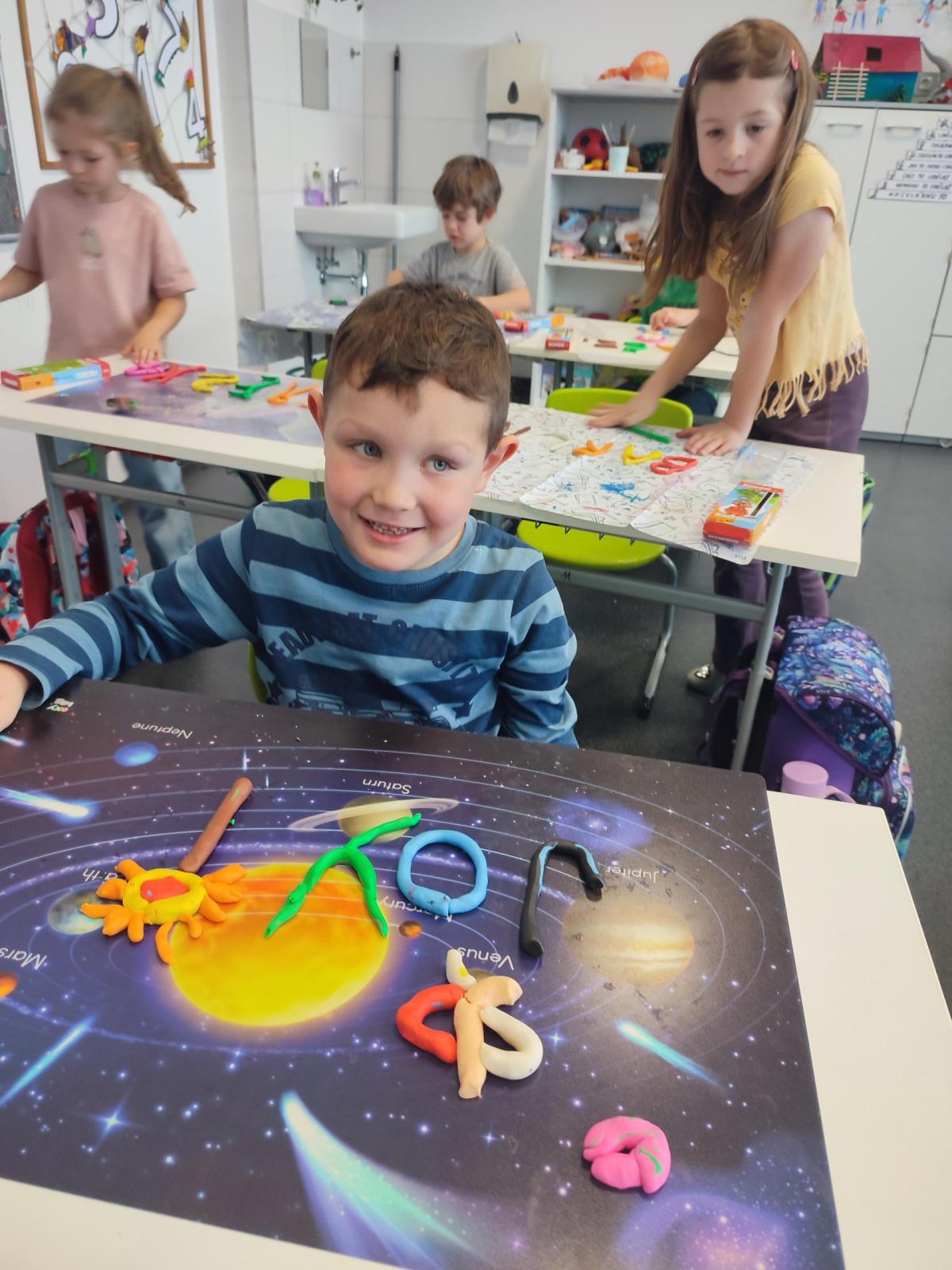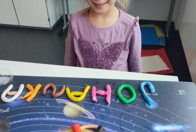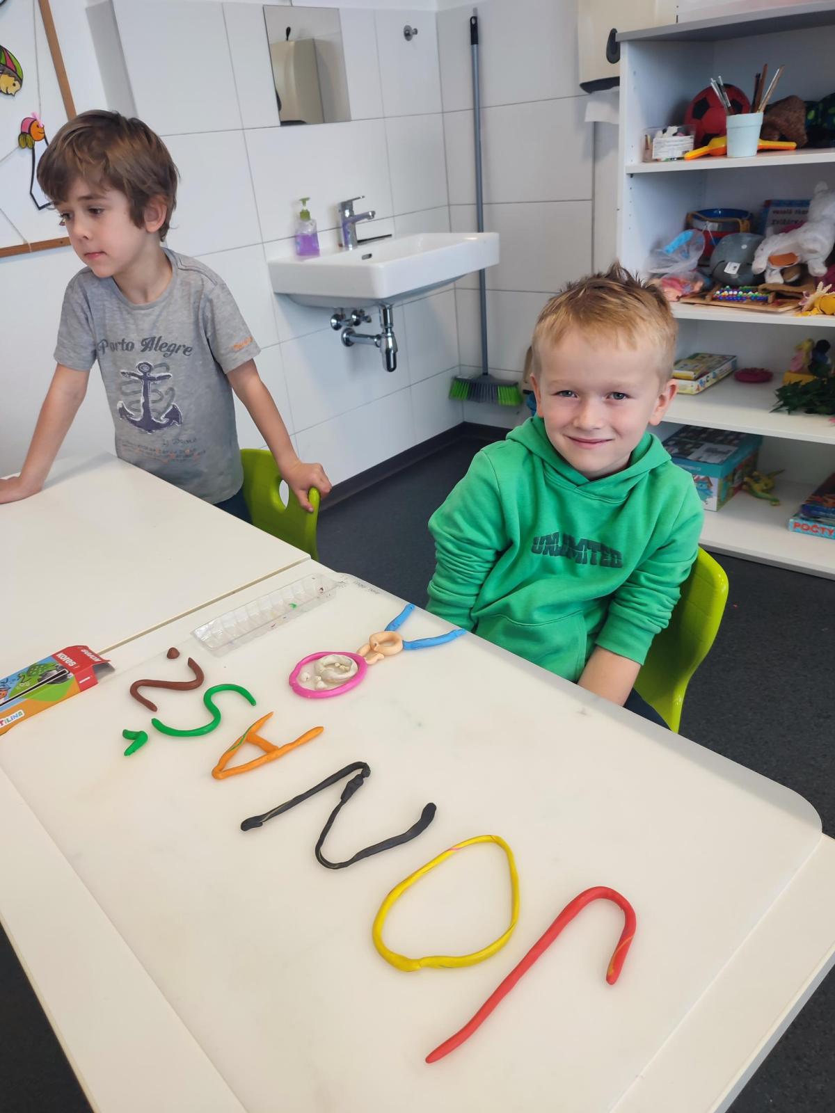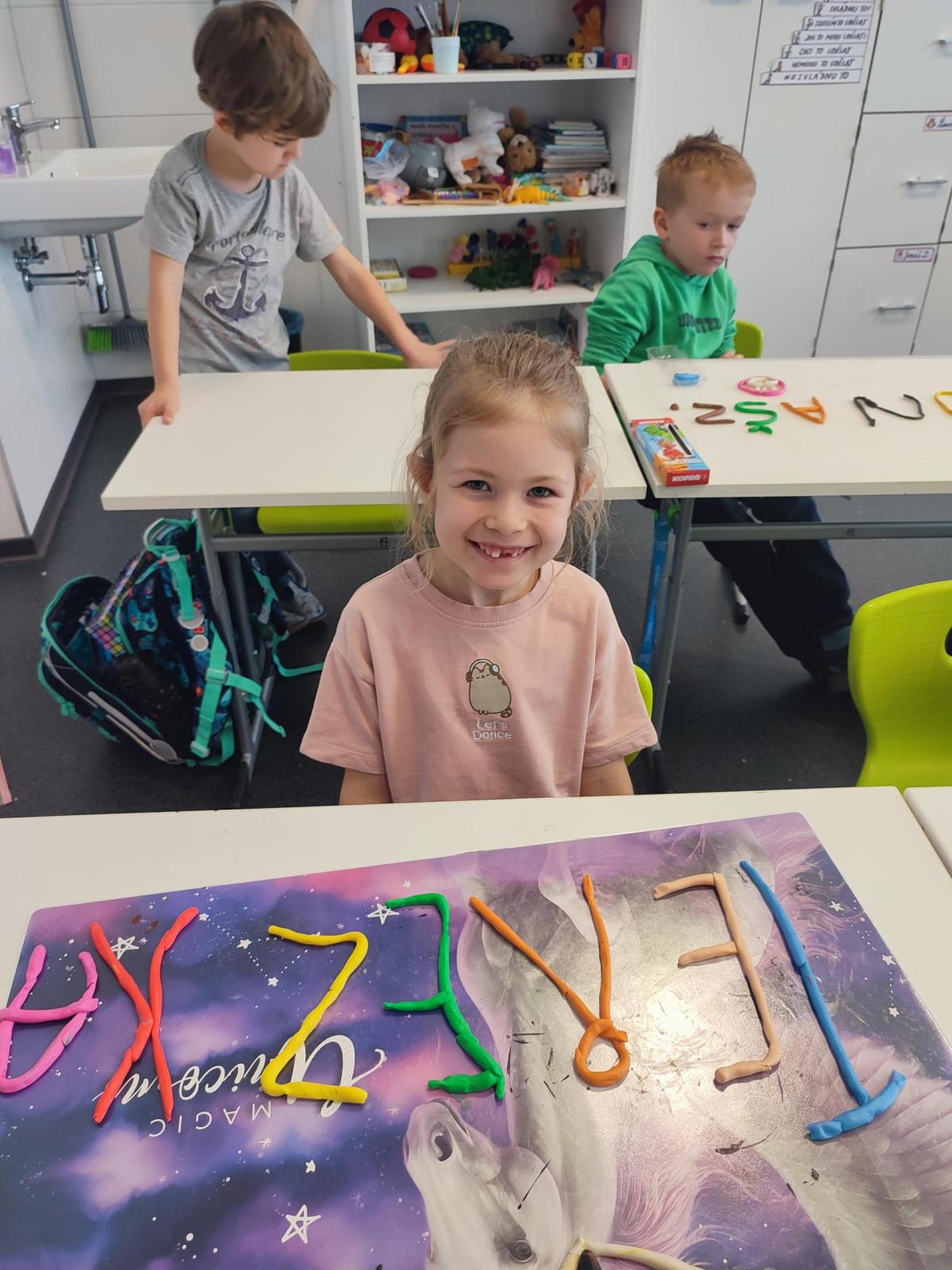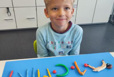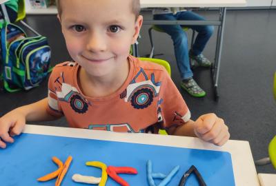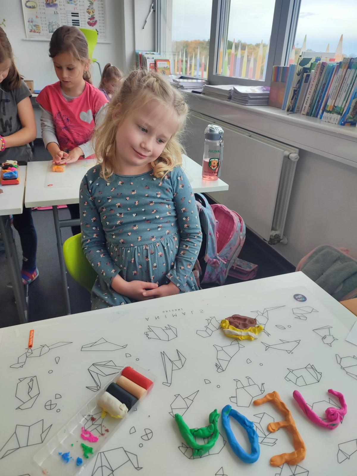 V hodině pracovních činností jsme si procvičili prstíky i fantazii - z plastelíny vznikly naše jména.