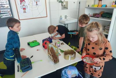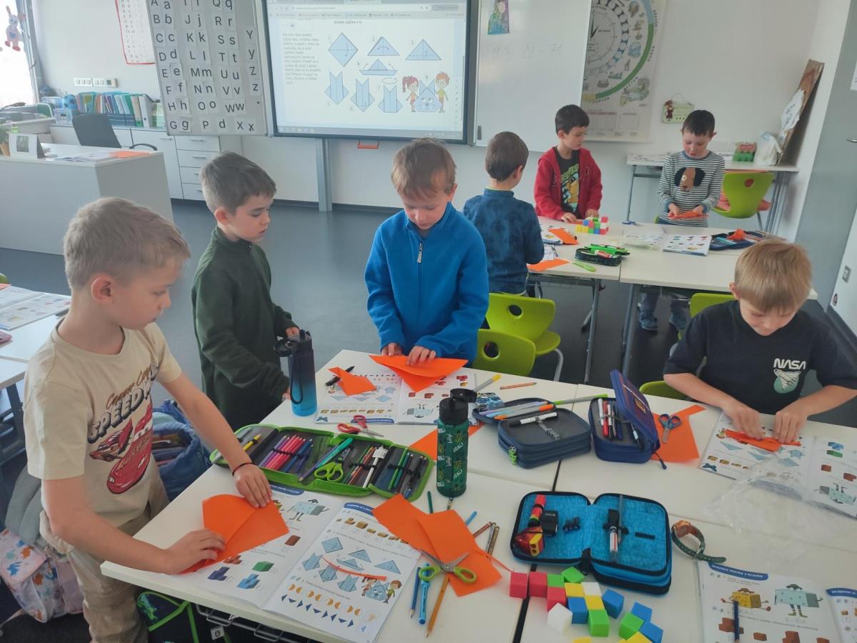 Také skládáme s papíru podle návodu, což trénuje naši pozornost a představivost. A samozřejmě řešíme zajímavé úkoly, u kterých můžeme přemýšlet, spolupracovat a hledat nová řešení.