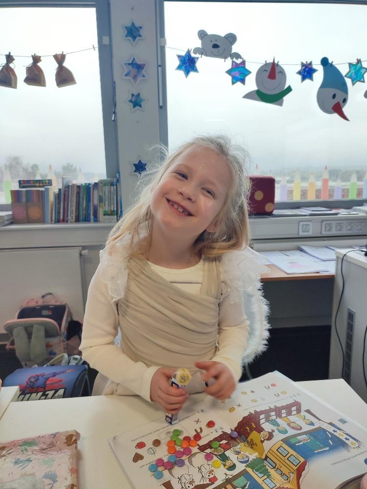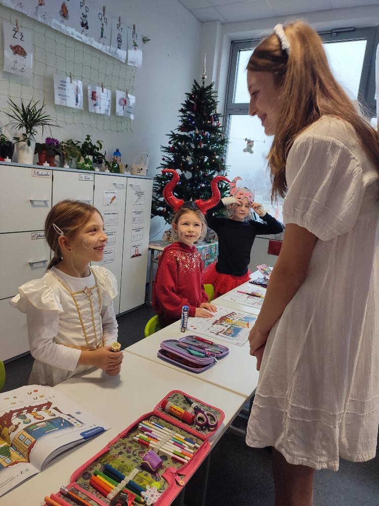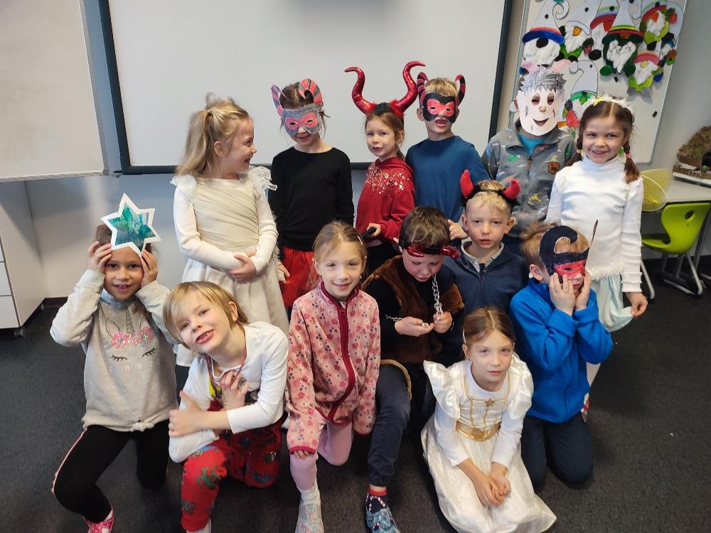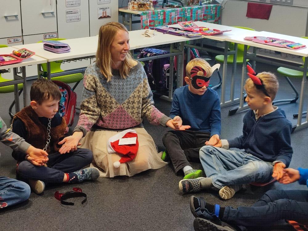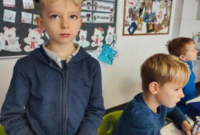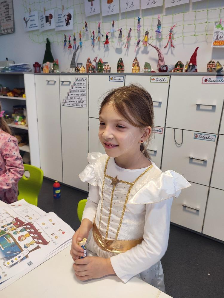 V pátek už od rána jsme byli celí napjatí, protože jsme věděli, že se k nám chystá Mikulášská družina. Přestože jsou v naší třídě samé hodné děti, dušička některých z nás se chvěla strachem. Nakonec to ale dobře dopadlo - čerti do třídy jen nakoukli, ale Mikuláš a andělé je poslali pryč, že tady nejsou potřeba. Zazpívali jsme krásnou koledu Sláva jsou tu Vánoce a dostali sladké lentilky, které jsme využili v zrovna probíhající hodině matematiky. Také v pohádkovém čtení i angličtině byly námětem našeho povídání Vánoce. Slibujeme, že budeme i nadále hodní, aby ani příští rok nebylo čertů v naší třídě třeba.