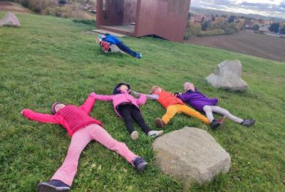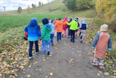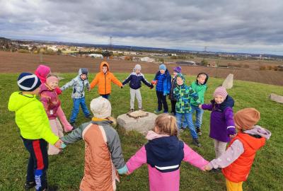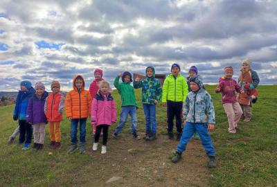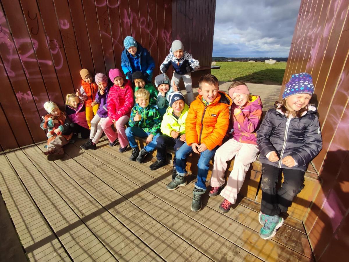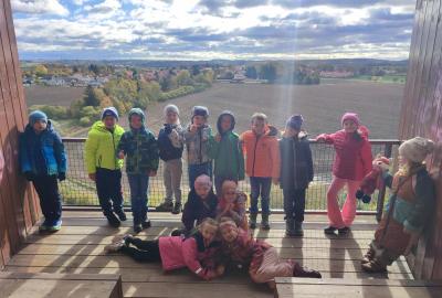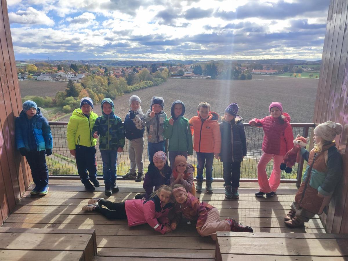 Dnes jsme se s prvňáčky v rámci třídního dne vydali na procházku k vyhlídce Kamínek. Po cestě jsme si zahráli spoustu her a užili si společný čas venku. I když foukal silný vítr, náladu nám to nezkazilo – výlet jsme si všichni moc užili!
