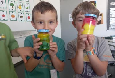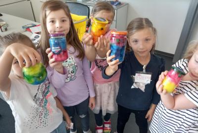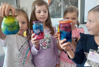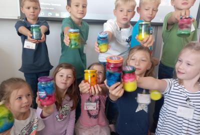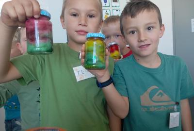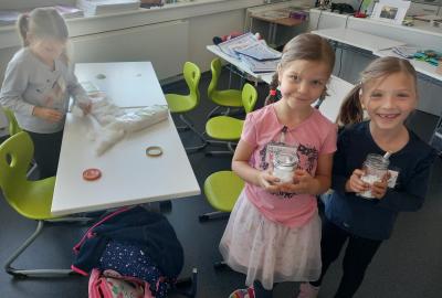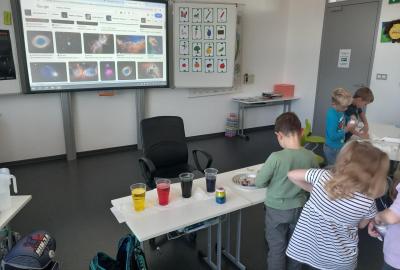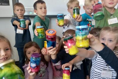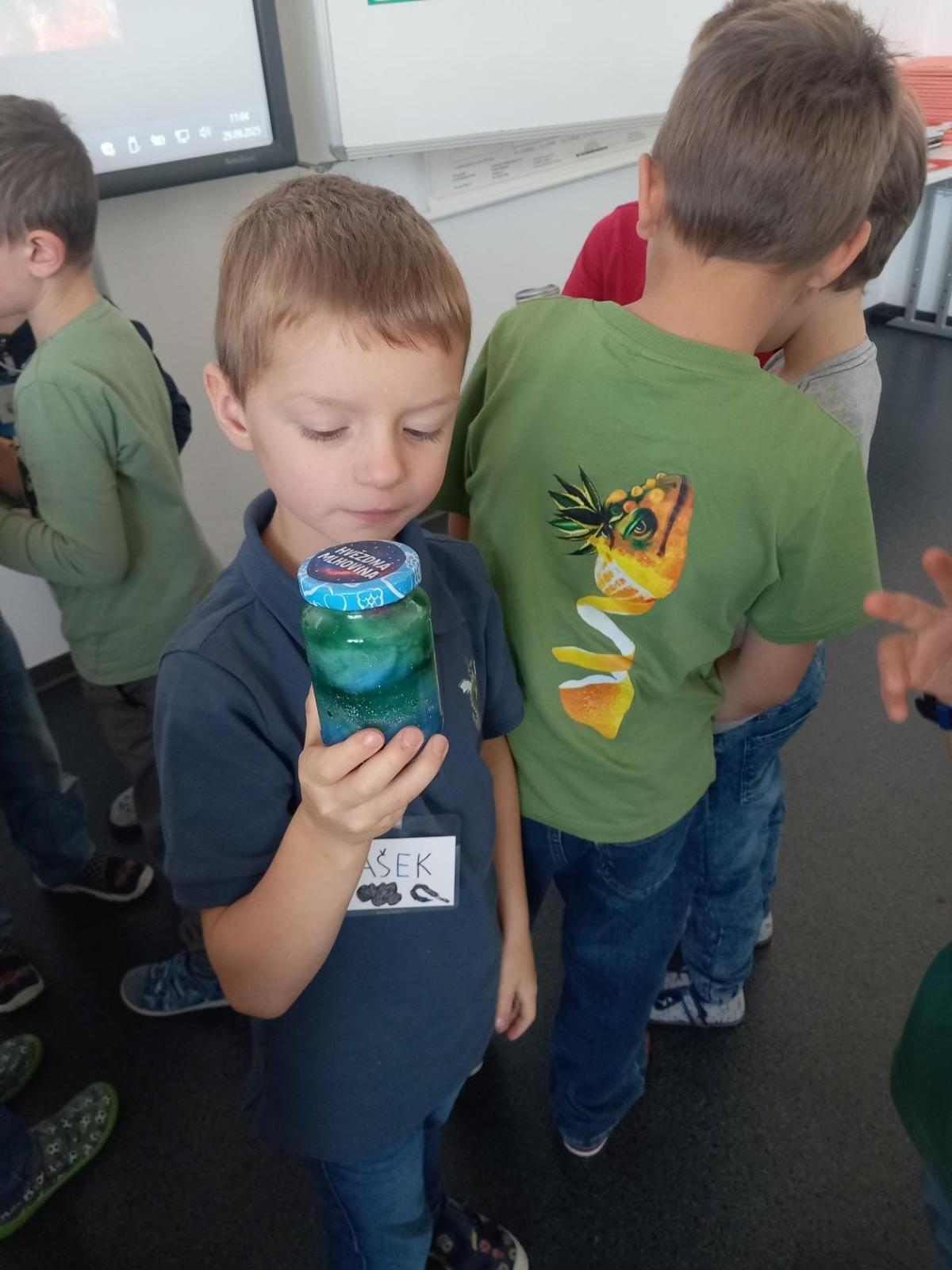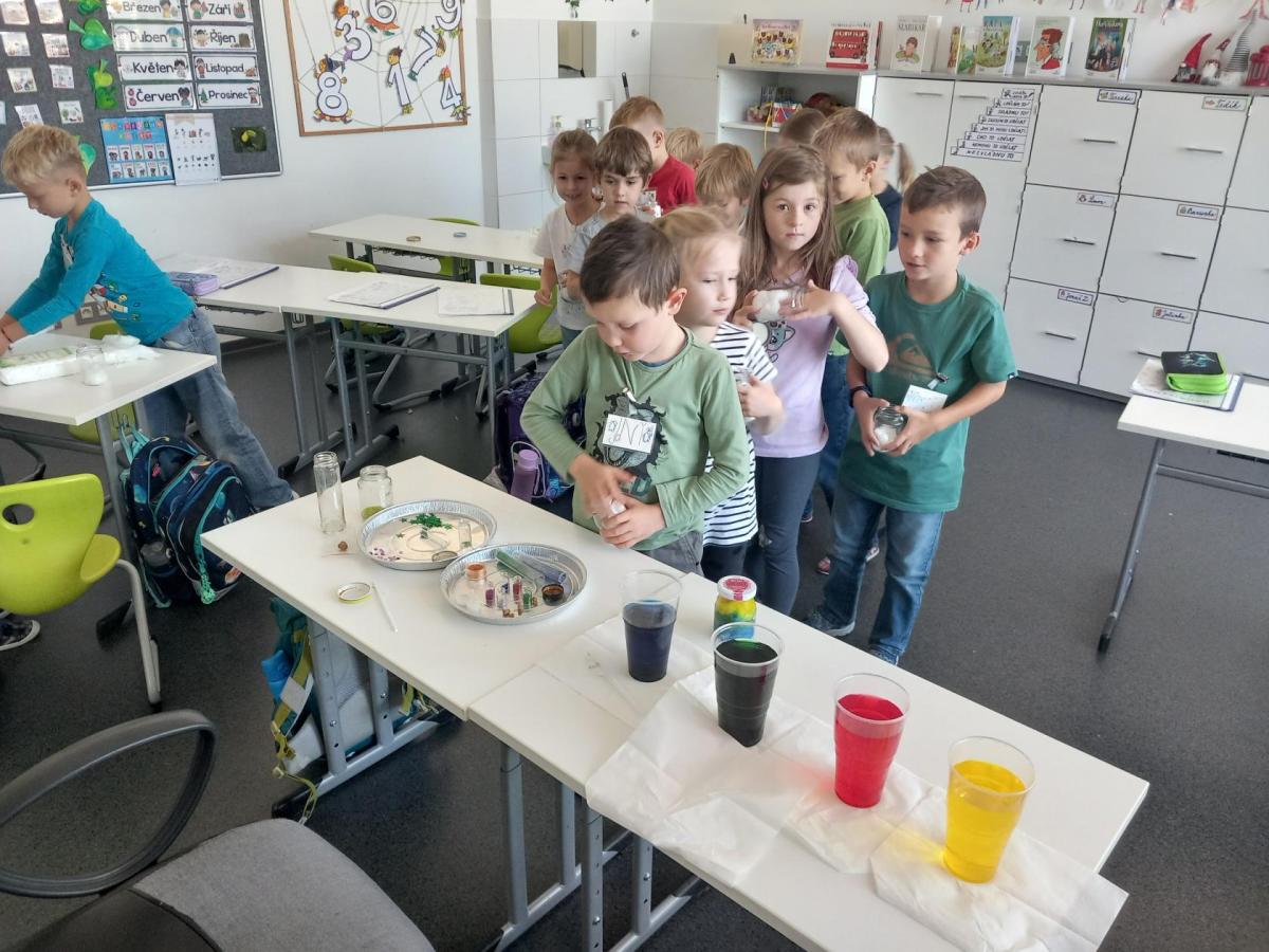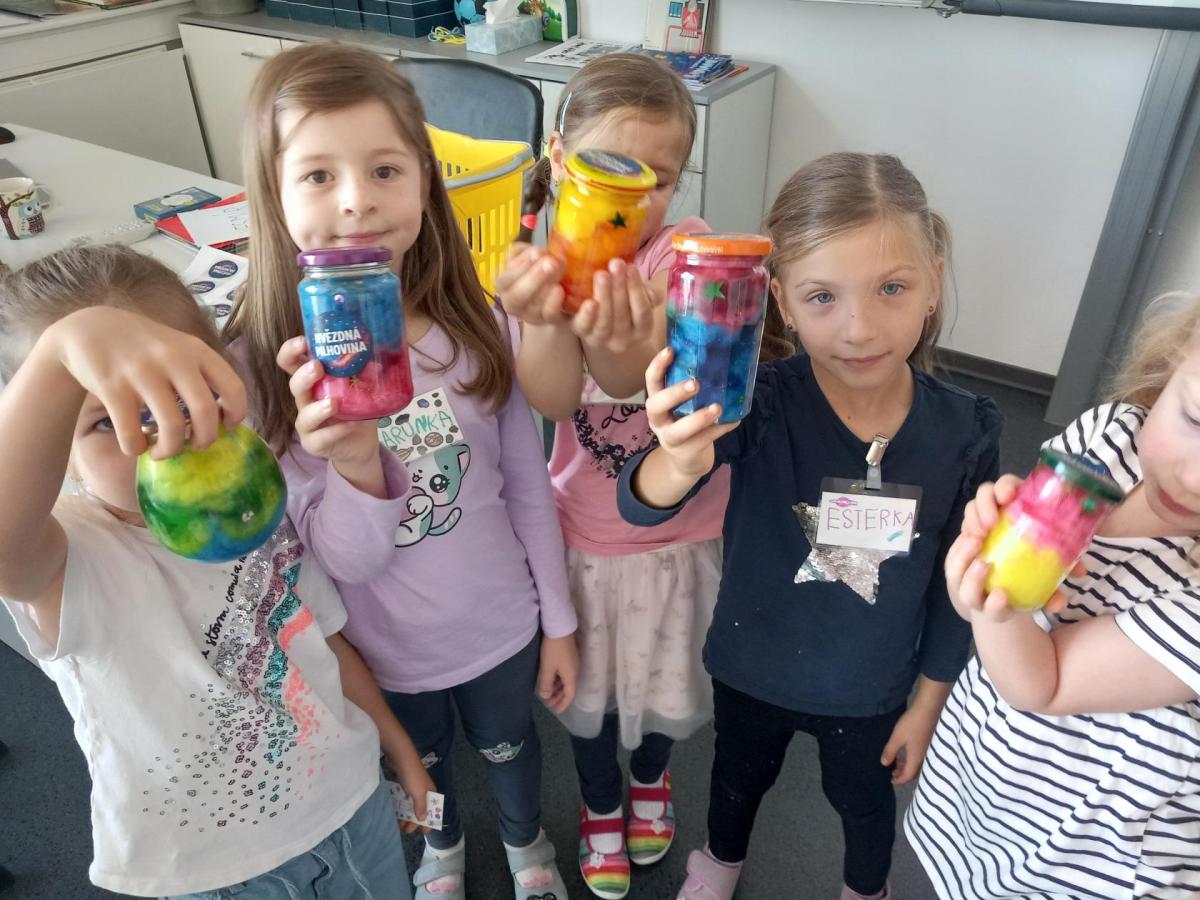 A rovnou jsme vypluli vstříc vědecké práci, vědeckým pravidlům a prozkoumali jsme ne/obyčejný život vědců. Když už jsme se naladili na to, co nás bude pět let provázet, vytvořili jsme si Badatelník, věděcké konferenční vizitky, týmová pracovní pravidla a vrhli jsme se na první projekt o VESMÍRU. Nejvíc wow pokus je vždy vytváření hvězdné mlhoviny. To bylo radosti! :)