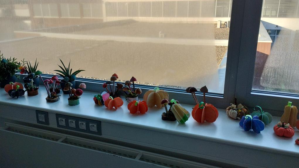 Zapomněl jsem říct, že máme krásně vyzdobenou třídu. Paní učitelka s námi tvořit nestihla, byla nemocná, ale paní vychovatelka v družině s paní učitelkou na angličtinu se o výrobu dýní, netopýrů a lampionů postaraly. Po obědě v družině jsme každý dostali další dva bonbóny. Mňam! A pak že nám bude špatně. Váš Kája