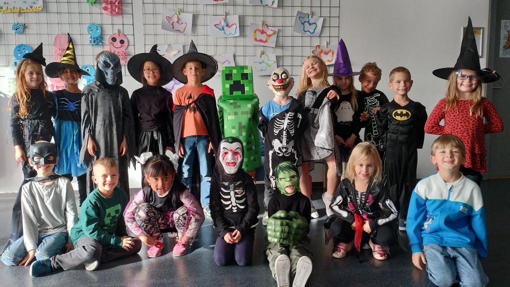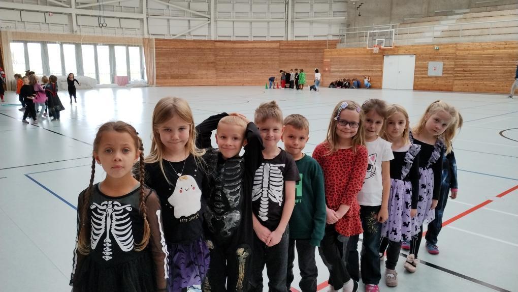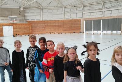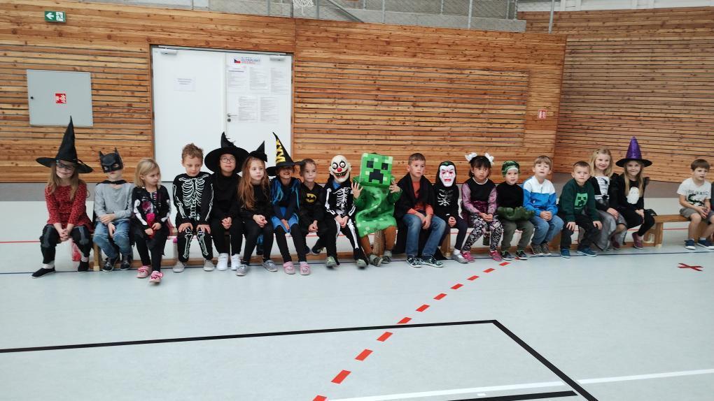 A po velké přestávce to začalo! Odešli jsme do tělocvičny, kde už čekali ostatní prvňáci. Nastaly dvě hodiny zábavy. Plnili jsme strašidelné disciplíny, házeli koulemi z papíru do obrovské dýně, prolézali jedovatou pavučinou a skládali hlavolamy. Ty byly asi nejtěžší. Nakonec nás pochválili a dostali jsme dárečky, které pro nás připravila paní učitelka Bára z 1. A.
