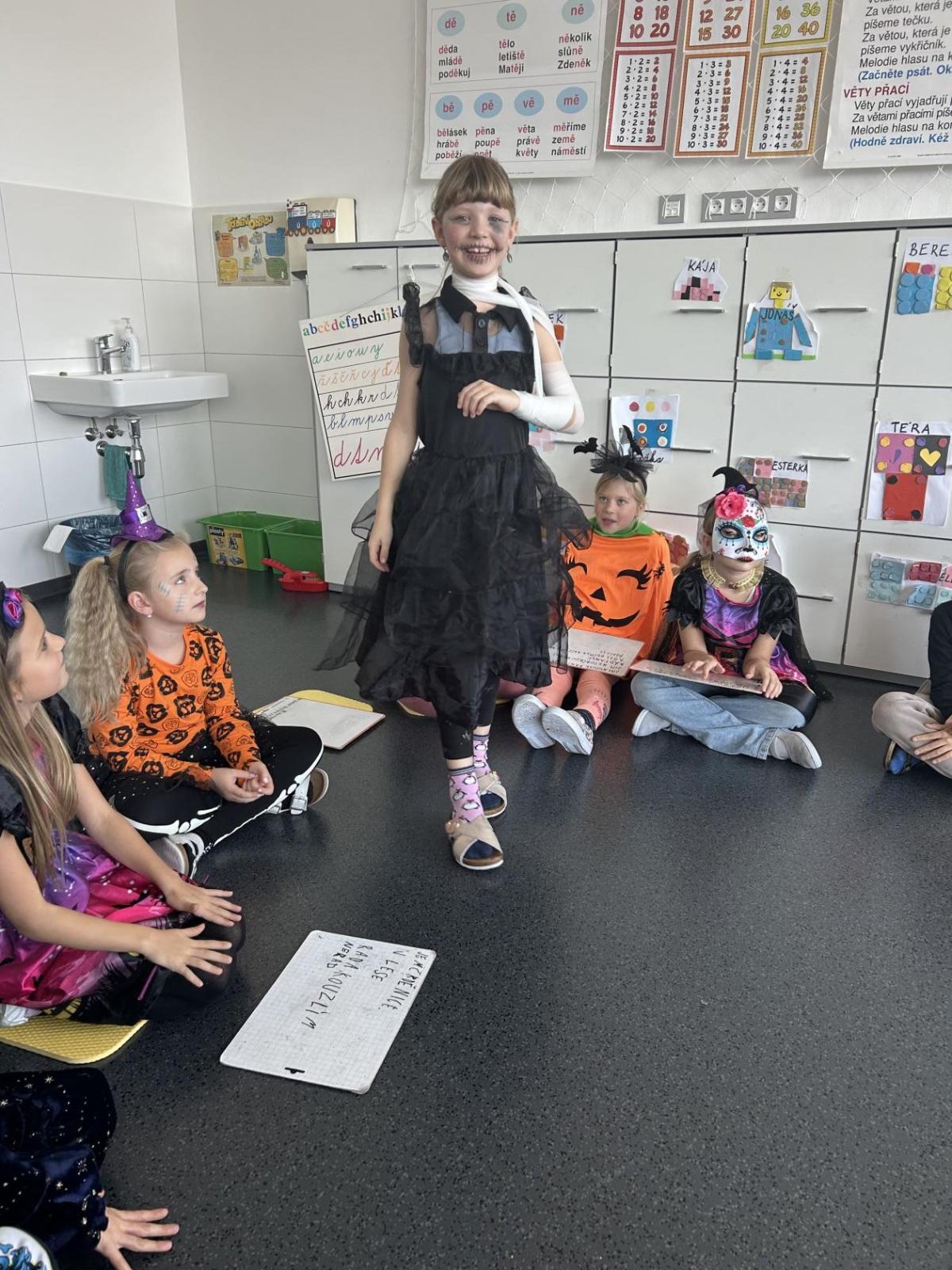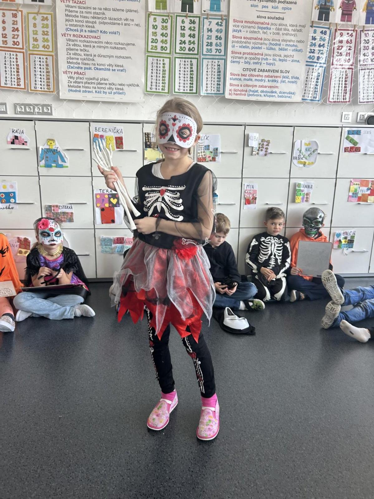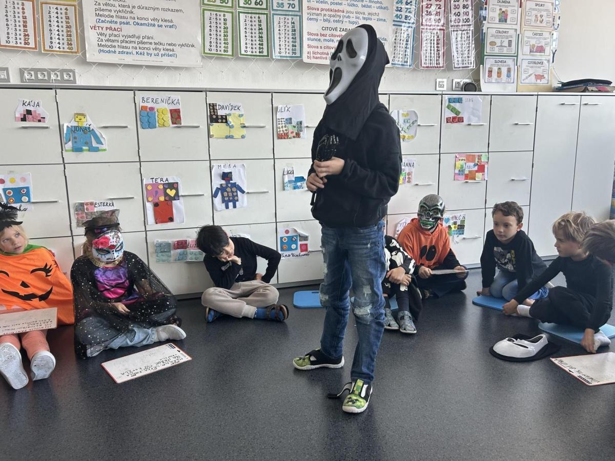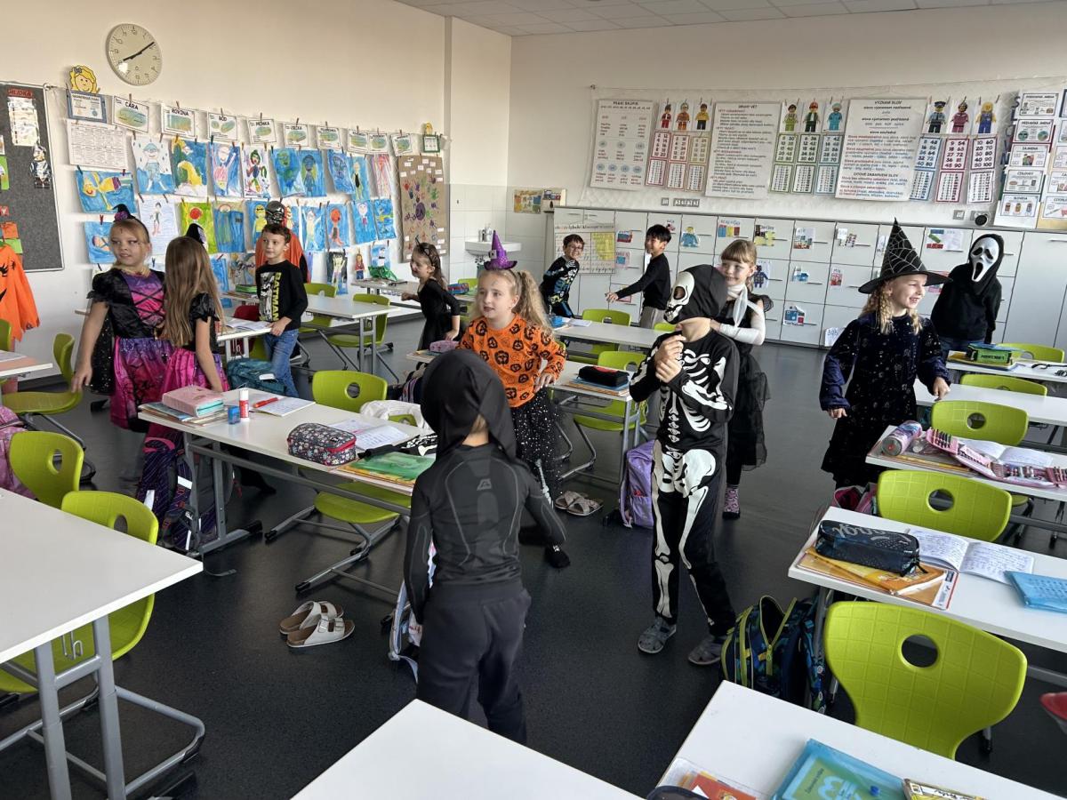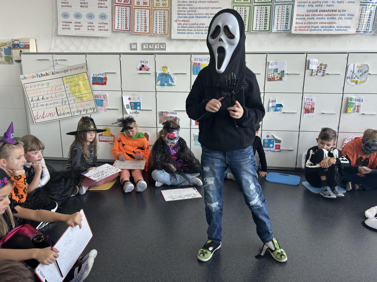 V pátek 31. října se naše třída proměnila ve strašidelné království. Už od rána k nám přicházeli kostlivci, čarodějnice, duchové, dýně i mnoho dalších originálních bytostí. Atmosféra byla veselá a děti si den moc užily.