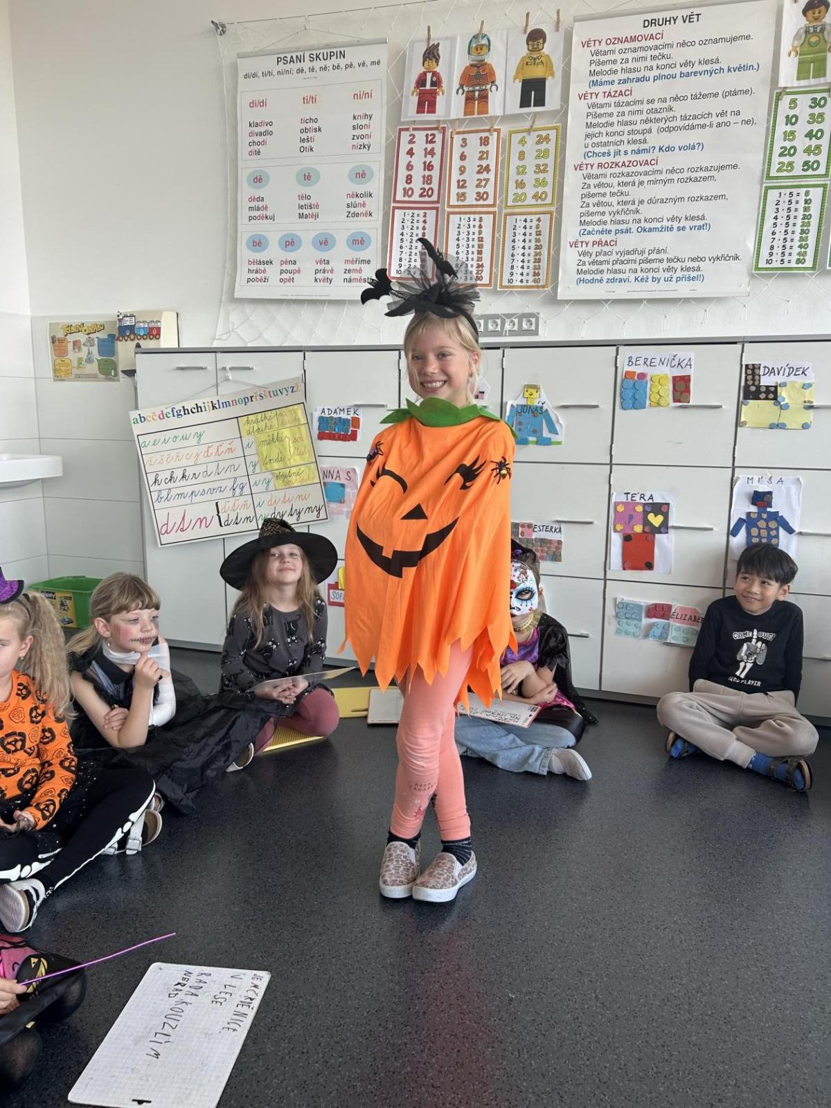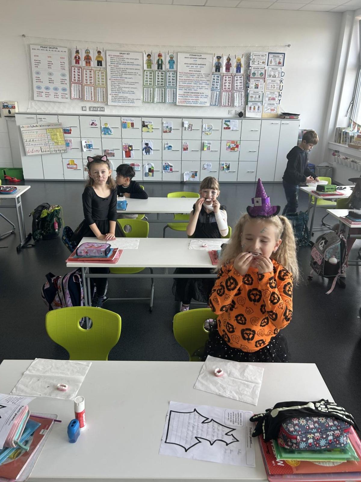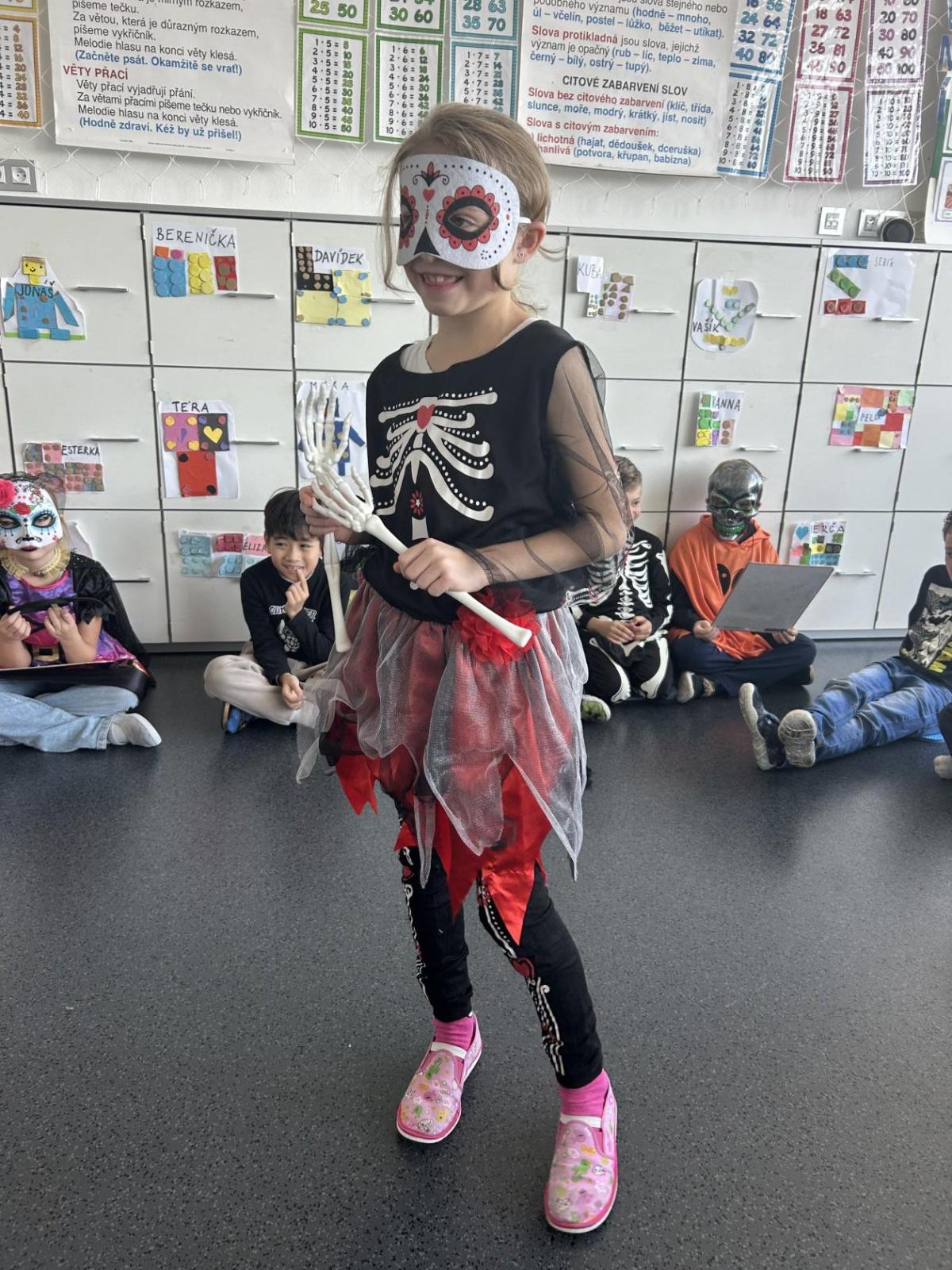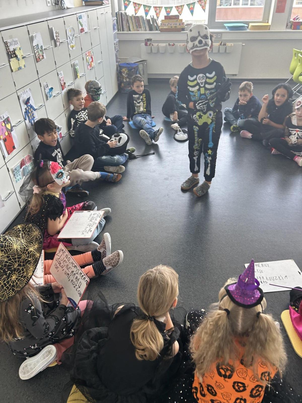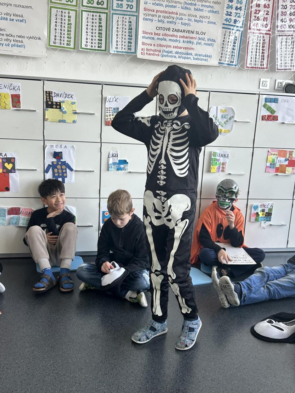 V pátek 31. října se naše třída proměnila ve strašidelné království. Už od rána k nám přicházeli kostlivci, čarodějnice, duchové, dýně i mnoho dalších originálních bytostí. Atmosféra byla veselá a děti si den moc užily.