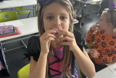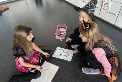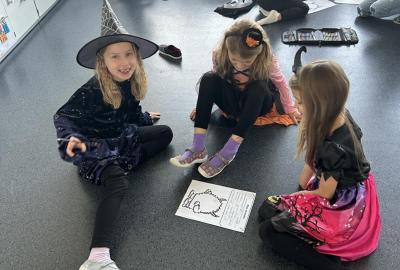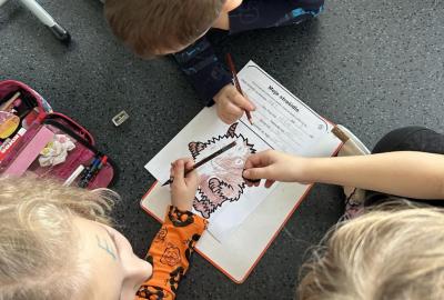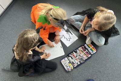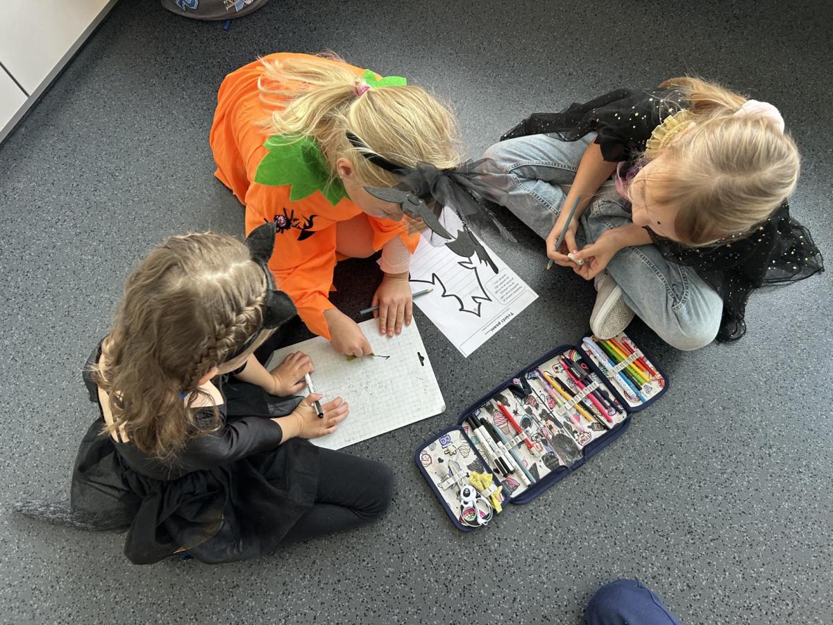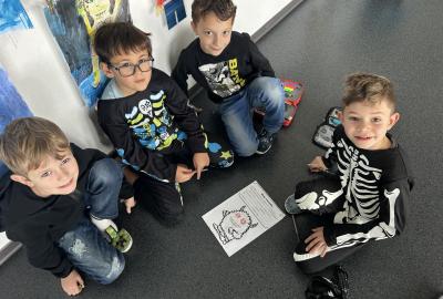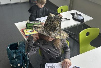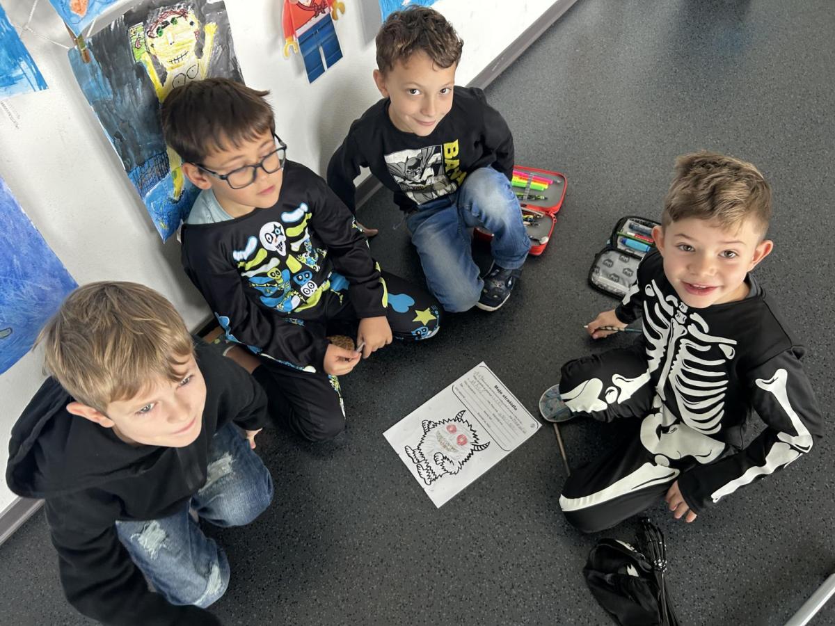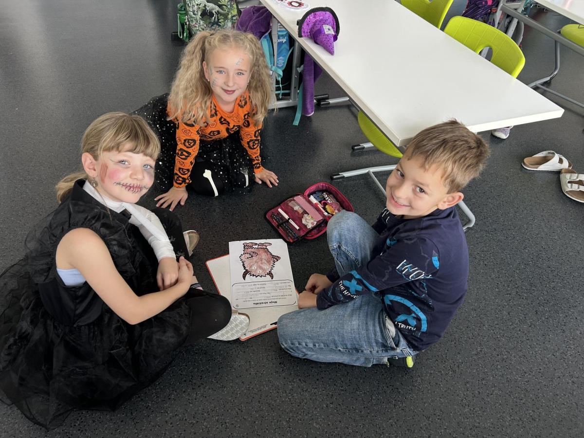 První hodinu jsme začali písankou, ale diktát byl tematický – děti psaly slova jako strašidlo, dýně, upírka a další. Poté jsme si na rozehřátí zatancovali halloweenský tanec, který děti okamžitě nadchl.