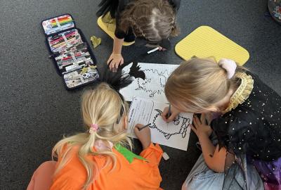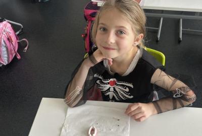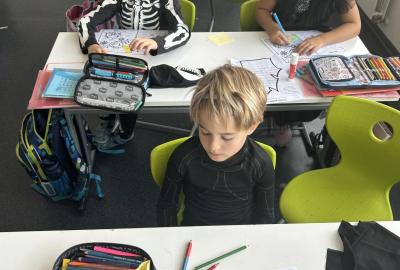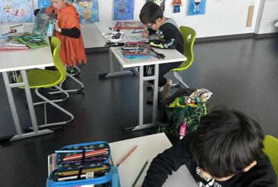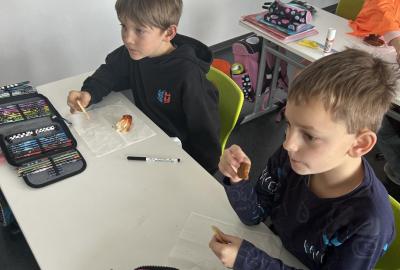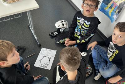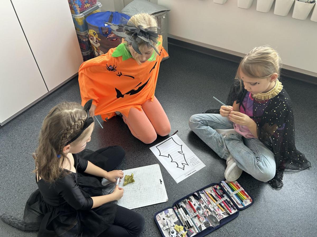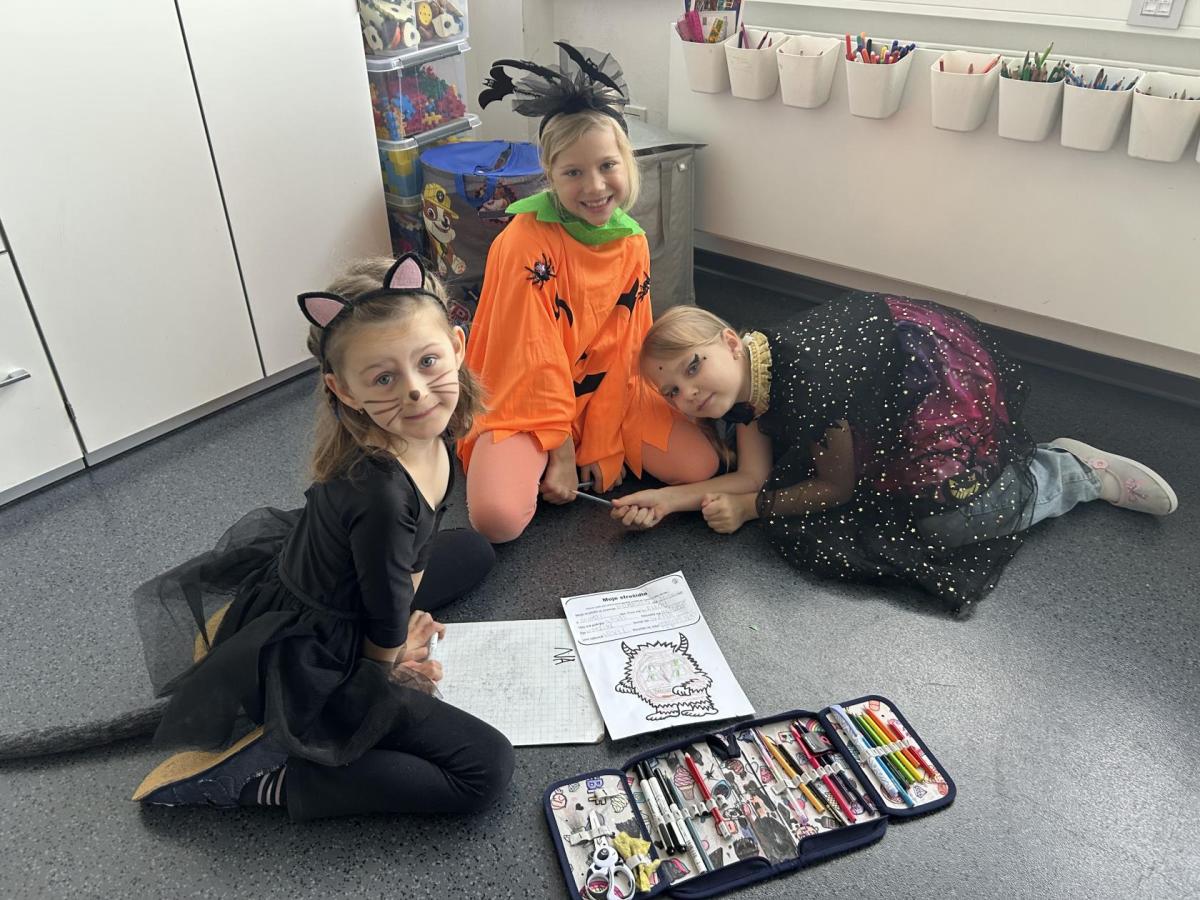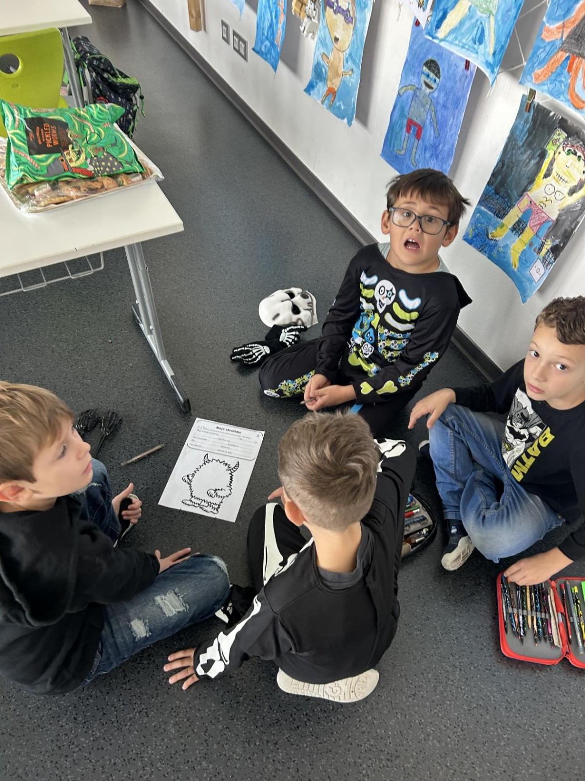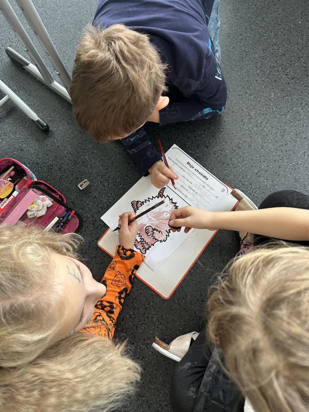 Ve skupinkách si pak děti vytvořily vlastní „strašidlo“ – vymalovaly ho, vymyslely mu jméno, povahu i schopnosti a své práce prezentovaly ostatním.