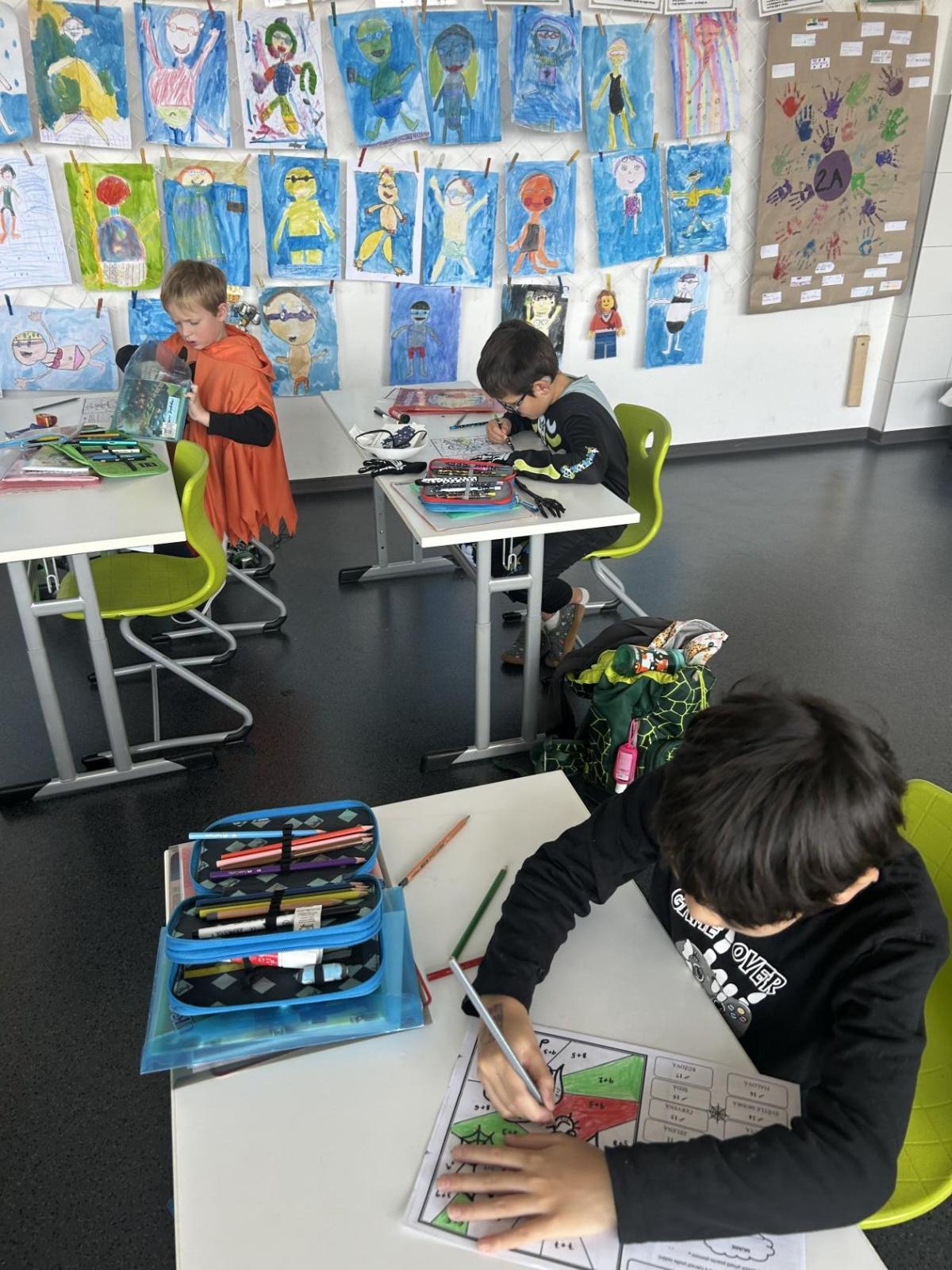 V matematice jsme pokračovali halloweenskými pracovními listy a vybarvováním dýní a dalších obrázků.